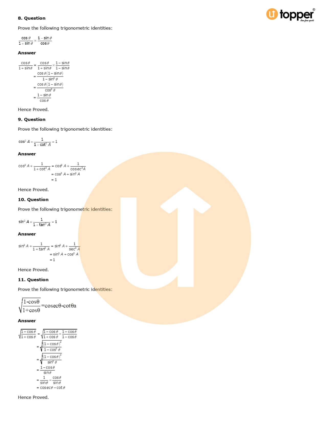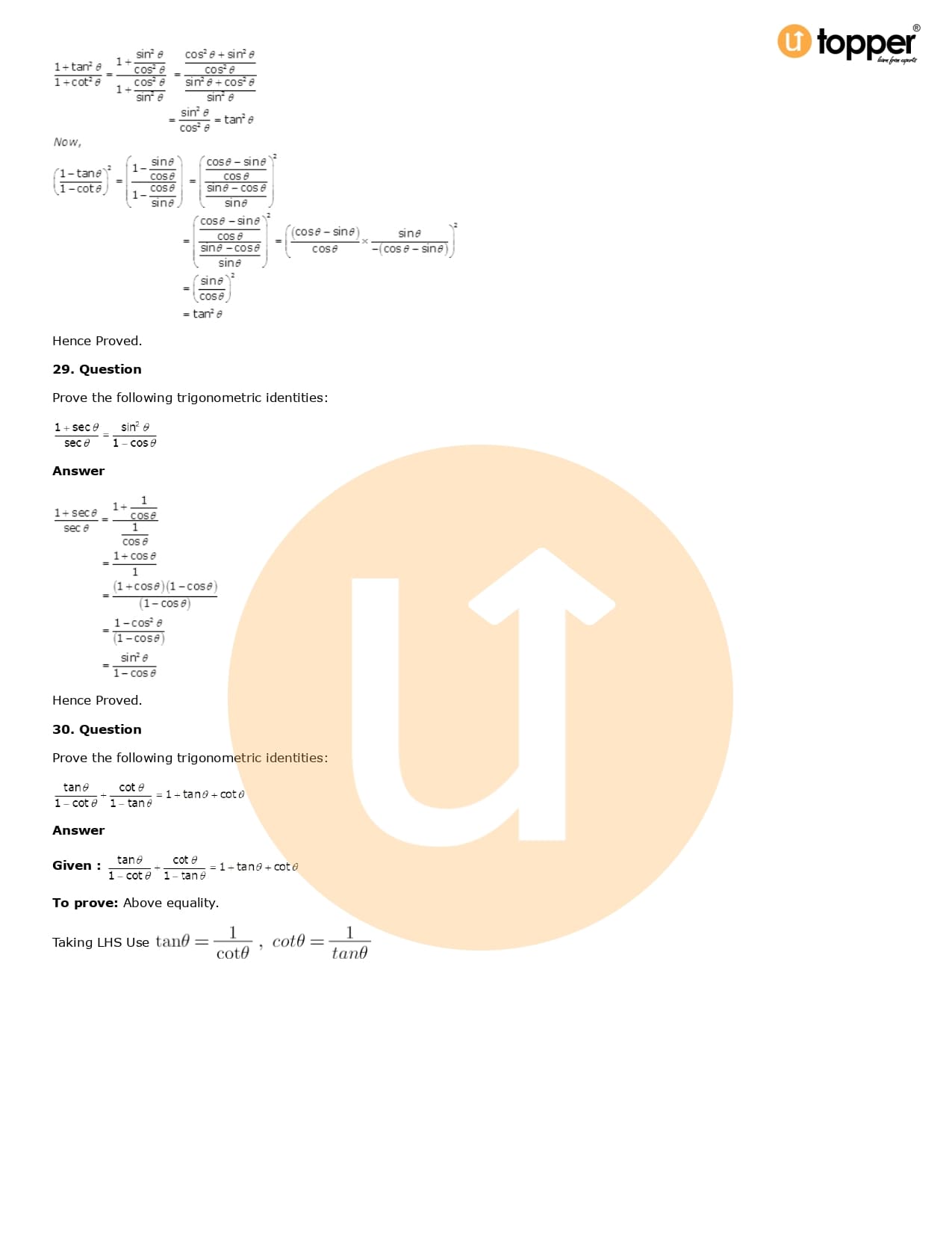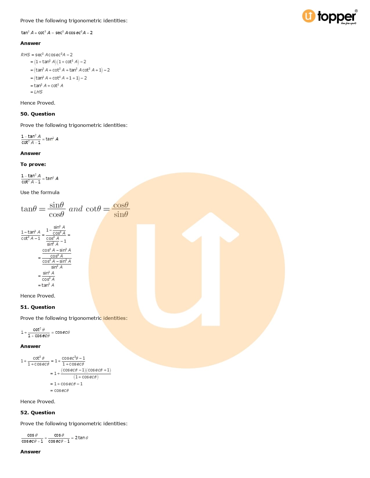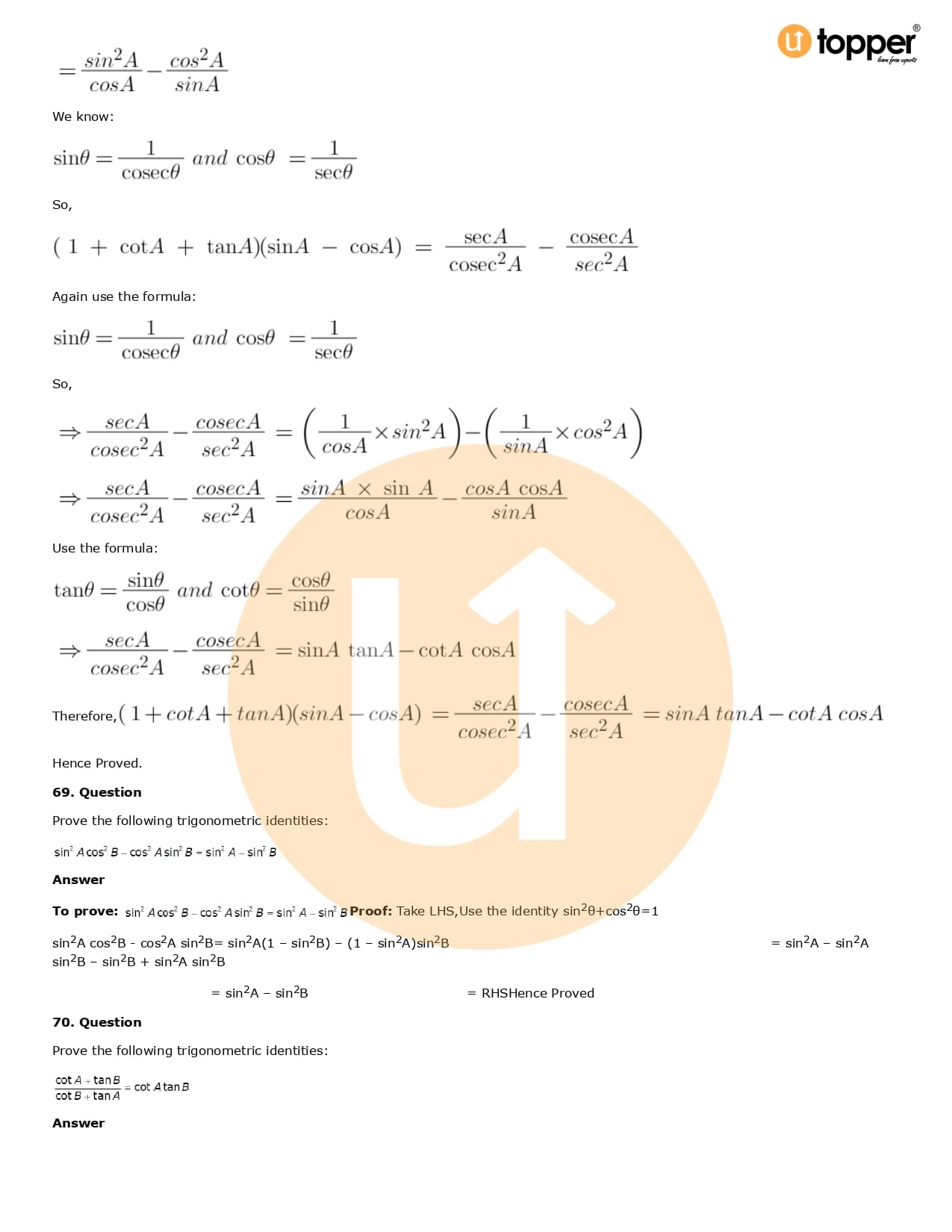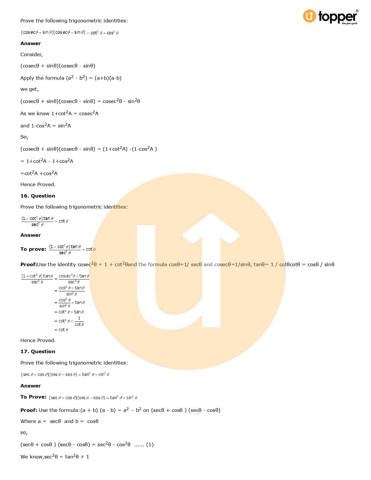 Download the latest version of RD Sharma Solutions for Class 10 Maths Chapter 6 Trigonometric Identities PDF at Utopper. It provides step by step Solution PDF. You can download RD Sharma Maths Solutions with a free PDF download option, which includes chapter wise solutions. All the questions in RD Sharma Solutions have been solved and explained by expert mathematics teachers as per the CBSE Board guidelines. By studying these Maths Solutions, you can easily get good marks in the CBSE board exams.