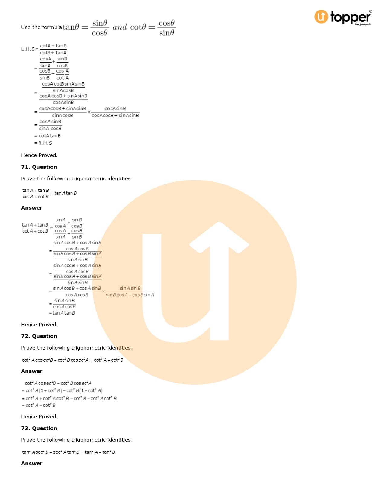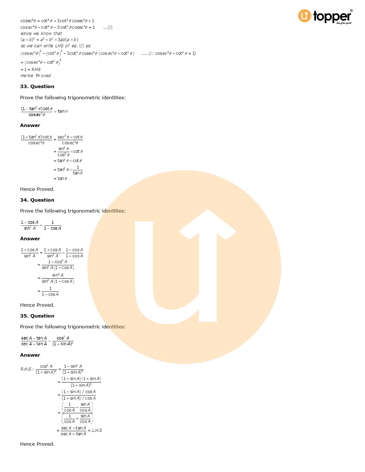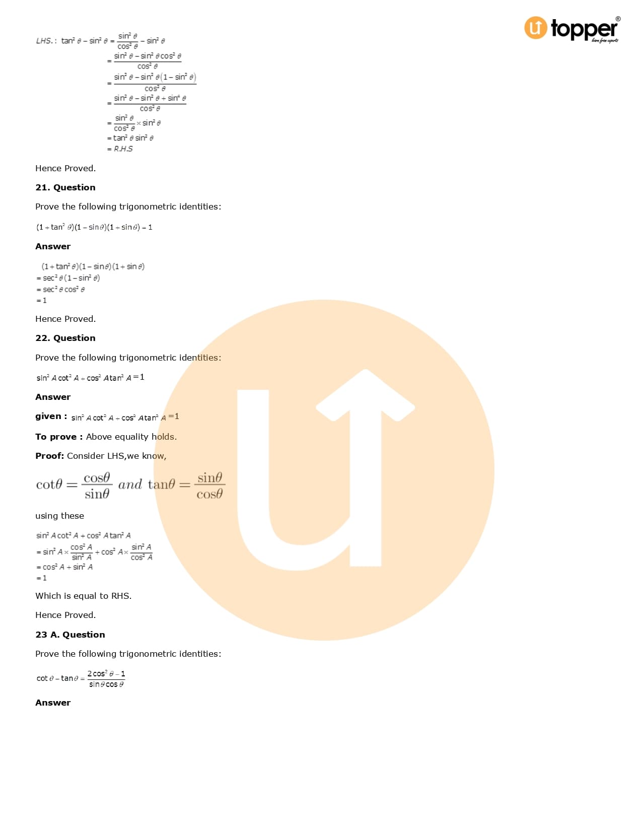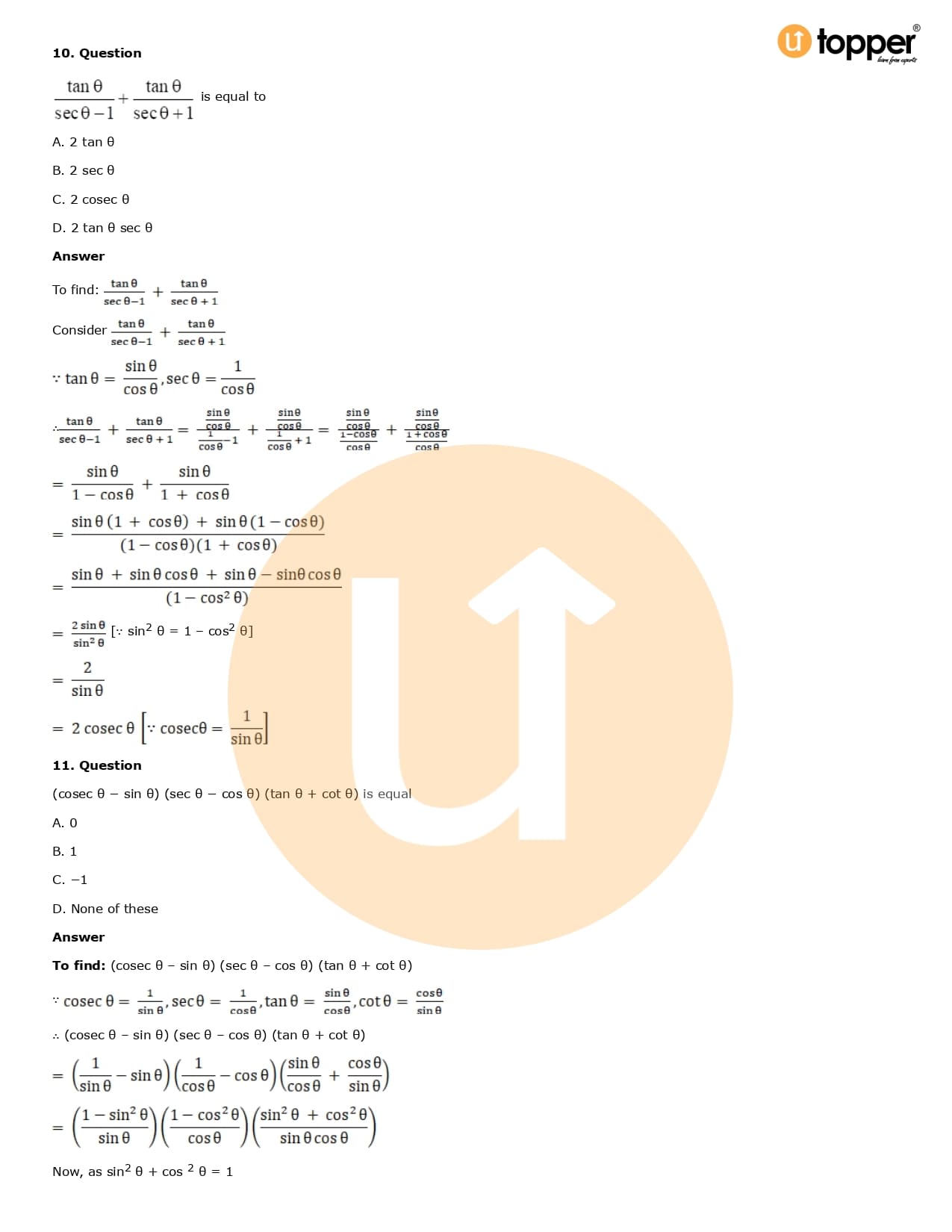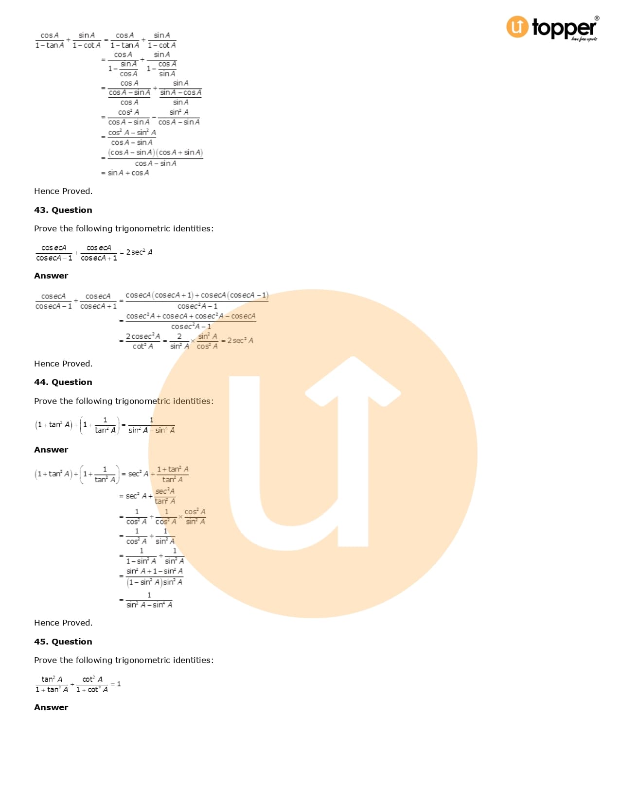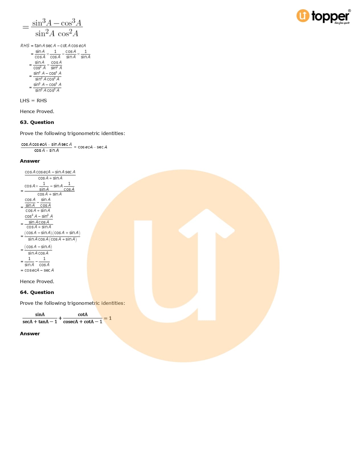 Download the latest version of RD Sharma Solutions for Class 10 Maths Chapter 6 Trigonometric Identities PDF at Utopper. It provides step by step Solution PDF. You can download RD Sharma Maths Solutions with a free PDF download option, which includes chapter wise solutions. All the questions in RD Sharma Solutions have been solved and explained by expert mathematics teachers as per the CBSE Board guidelines. By studying these Maths Solutions, you can easily get good marks in the CBSE board exams.