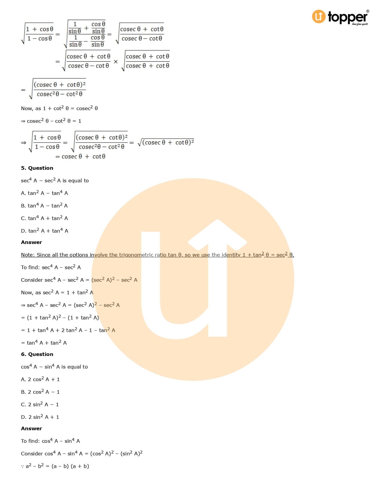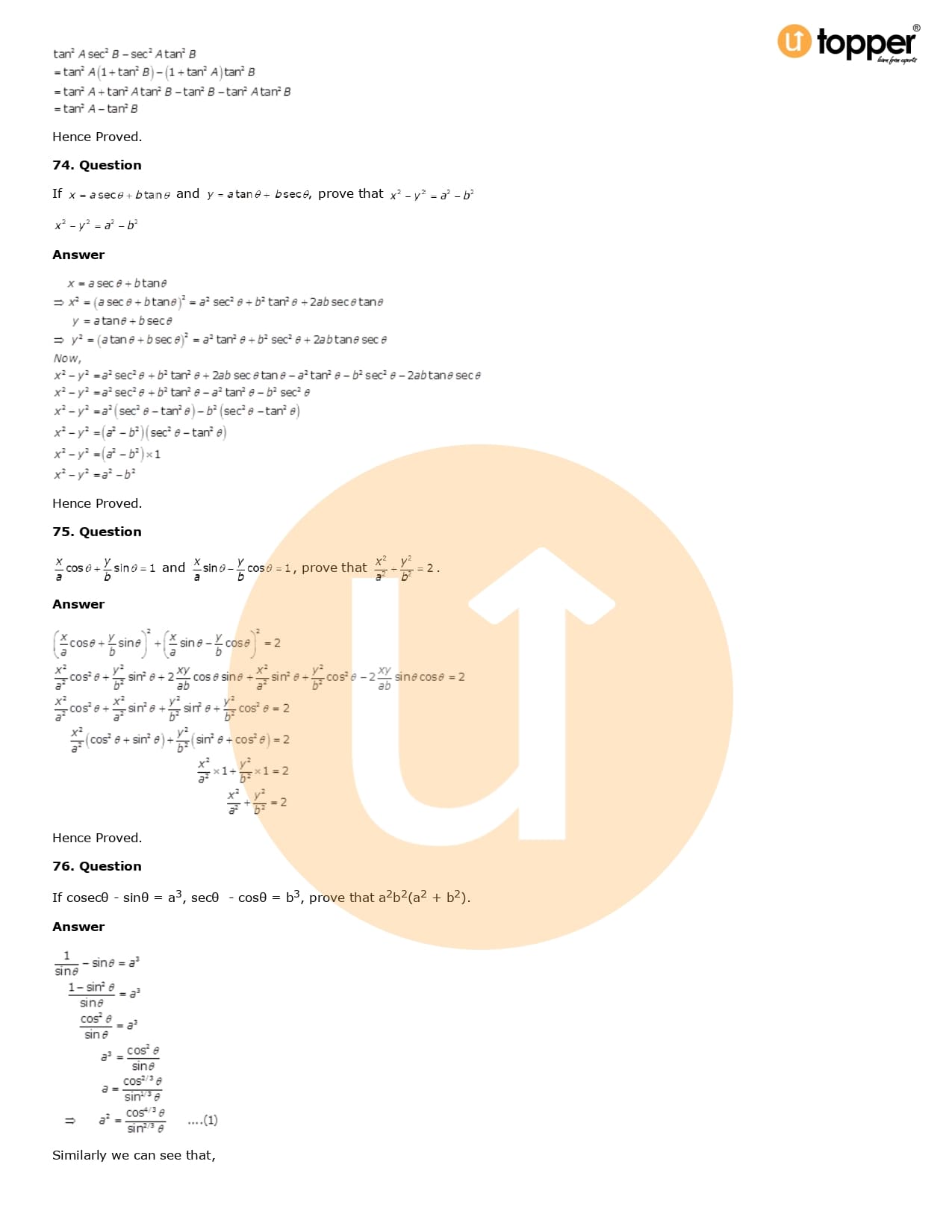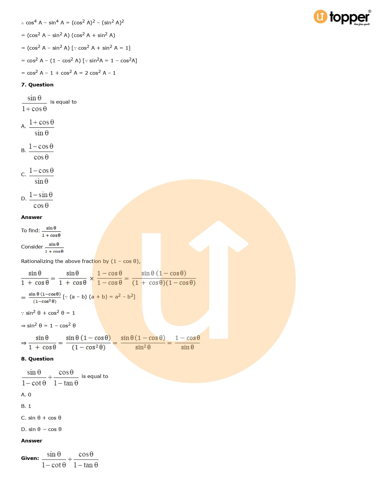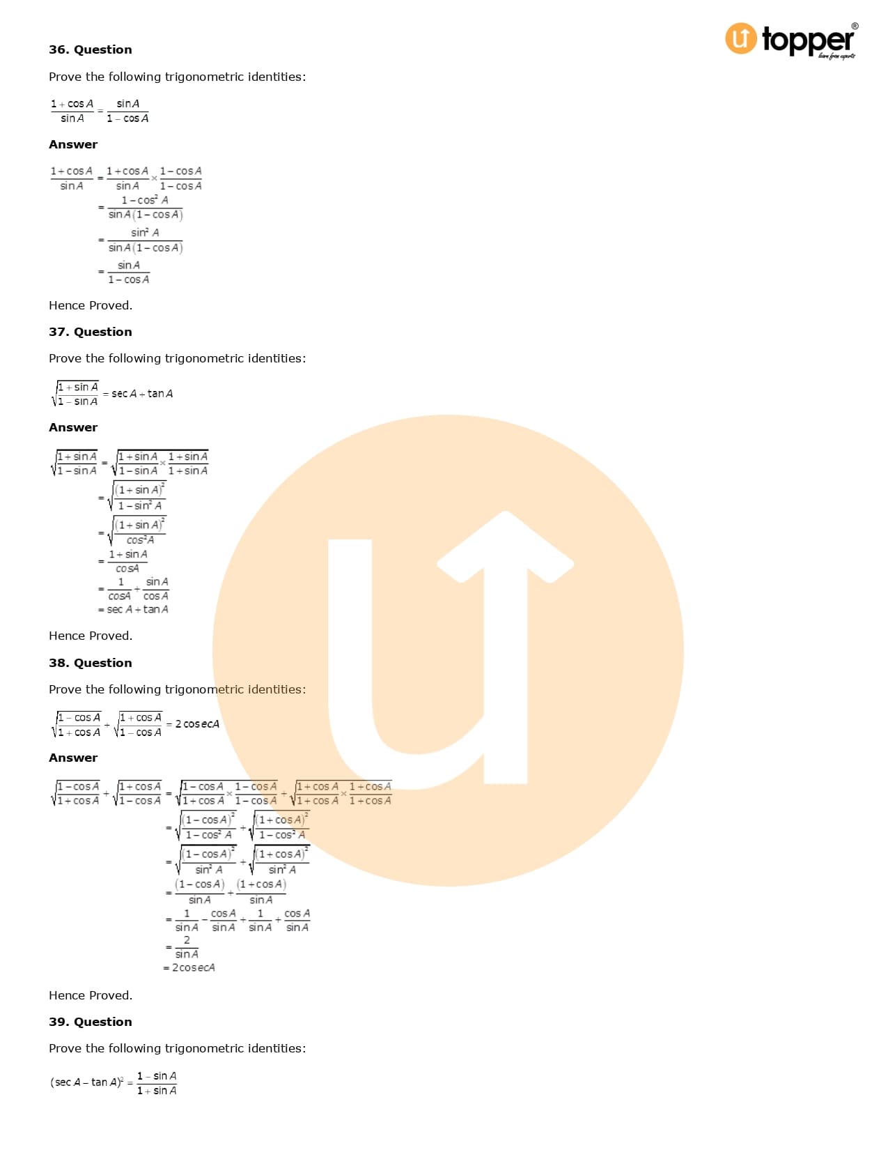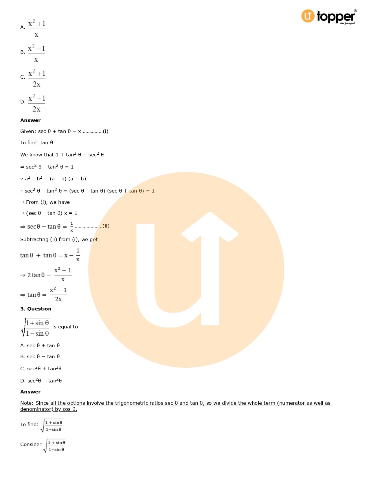 Download the latest version of RD Sharma Solutions for Class 10 Maths Chapter 6 Trigonometric Identities PDF at Utopper. It provides step by step Solution PDF. You can download RD Sharma Maths Solutions with a free PDF download option, which includes chapter wise solutions. All the questions in RD Sharma Solutions have been solved and explained by expert mathematics teachers as per the CBSE Board guidelines. By studying these Maths Solutions, you can easily get good marks in the CBSE board exams.