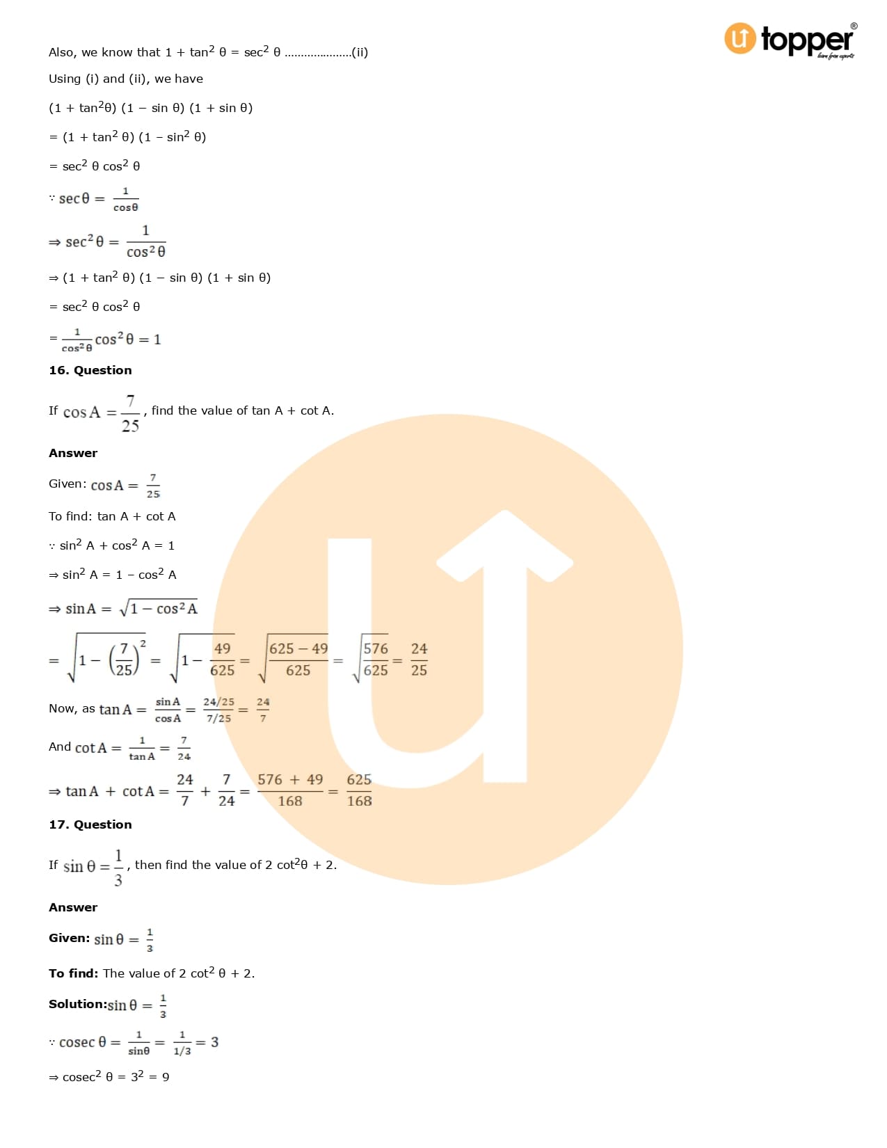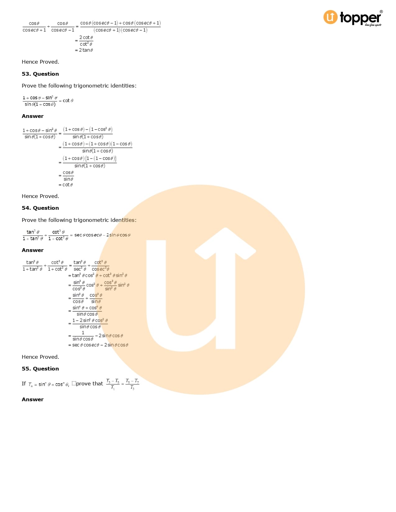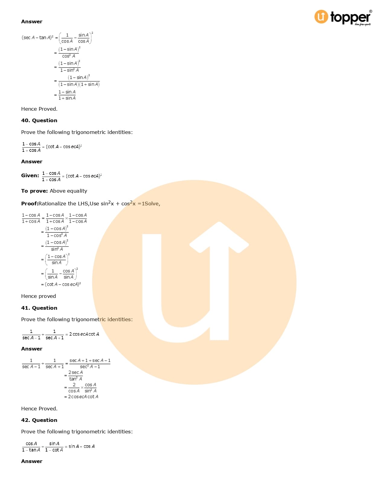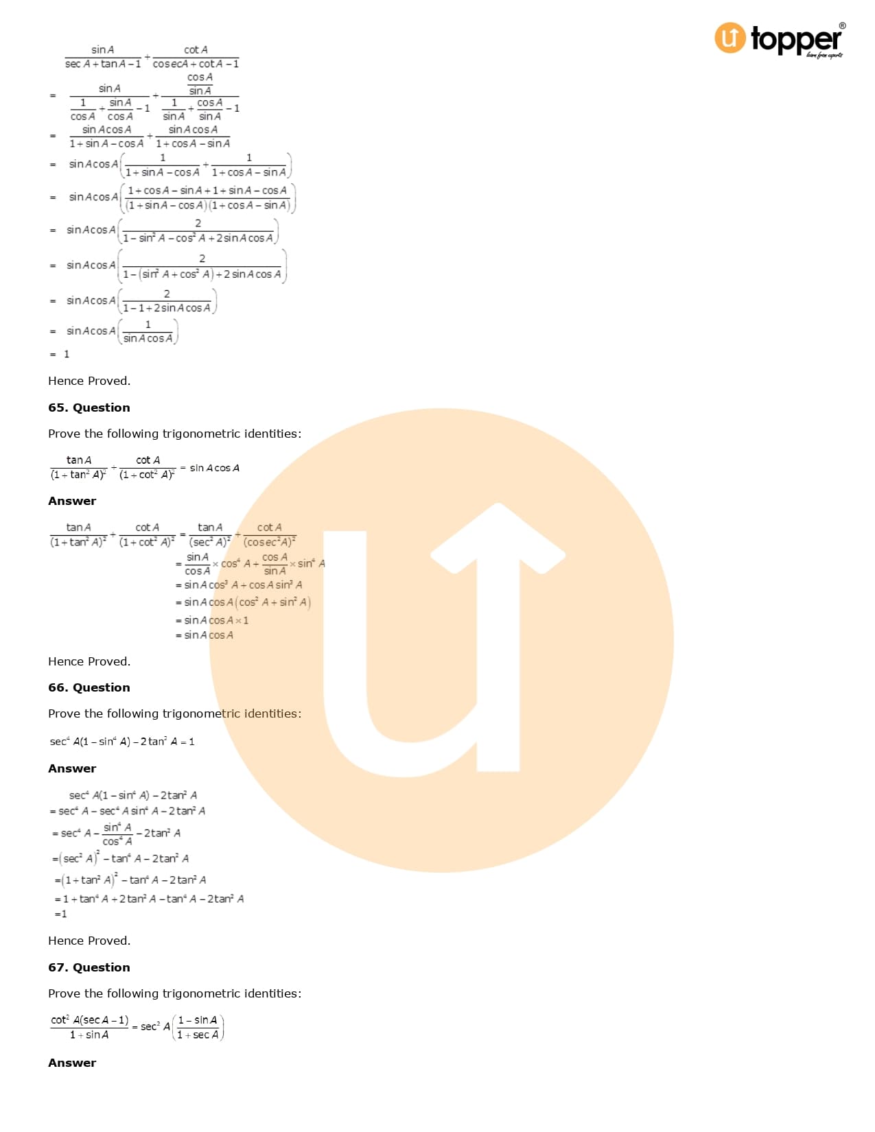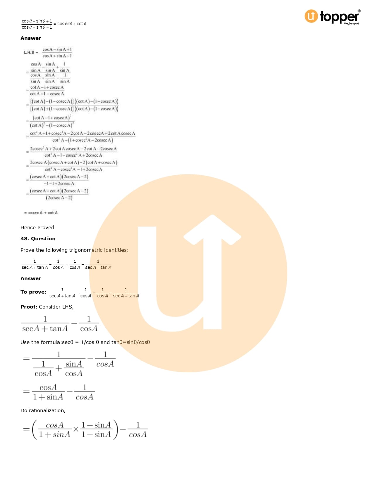 Download the latest version of RD Sharma Solutions for Class 10 Maths Chapter 6 Trigonometric Identities PDF at Utopper. It provides step by step Solution PDF. You can download RD Sharma Maths Solutions with a free PDF download option, which includes chapter wise solutions. All the questions in RD Sharma Solutions have been solved and explained by expert mathematics teachers as per the CBSE Board guidelines. By studying these Maths Solutions, you can easily get good marks in the CBSE board exams.