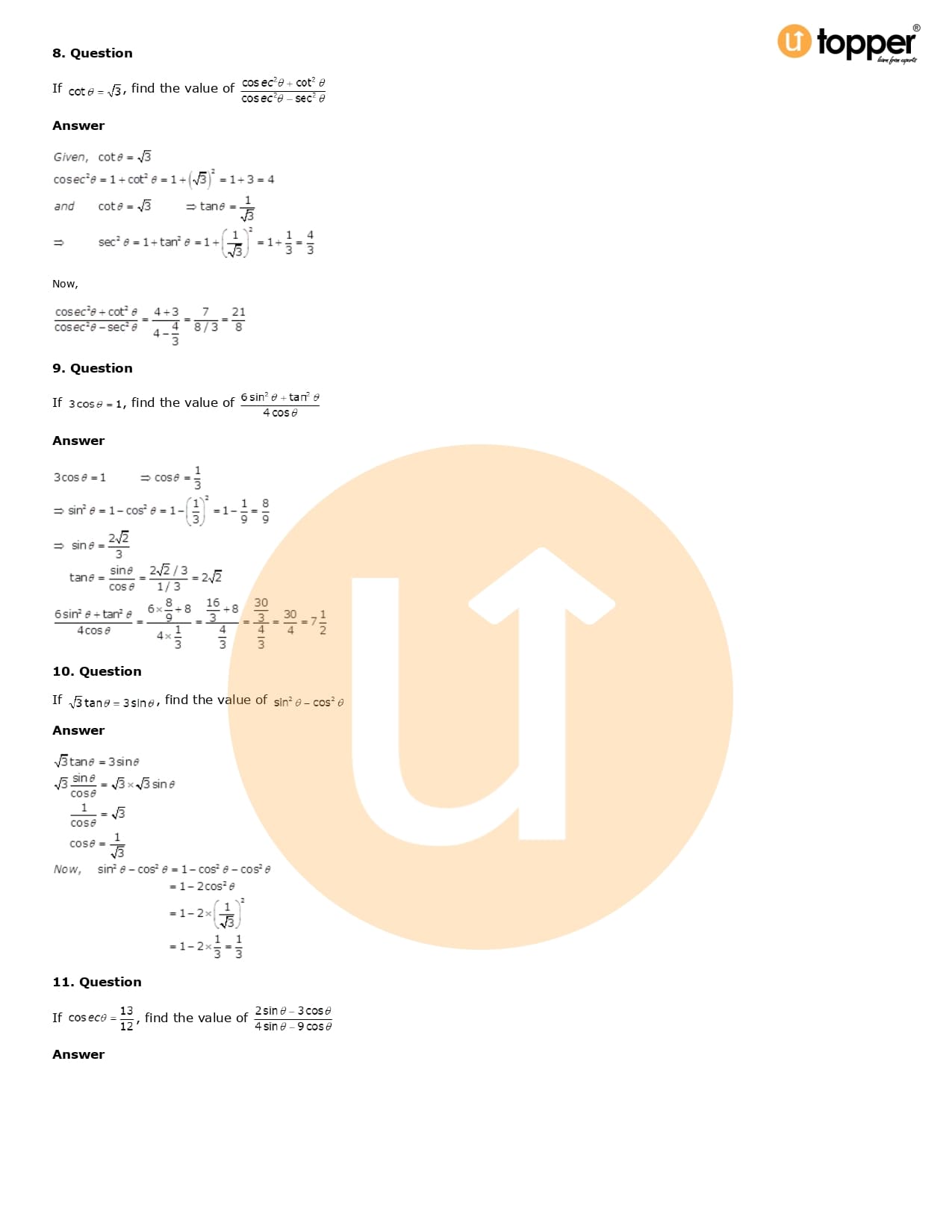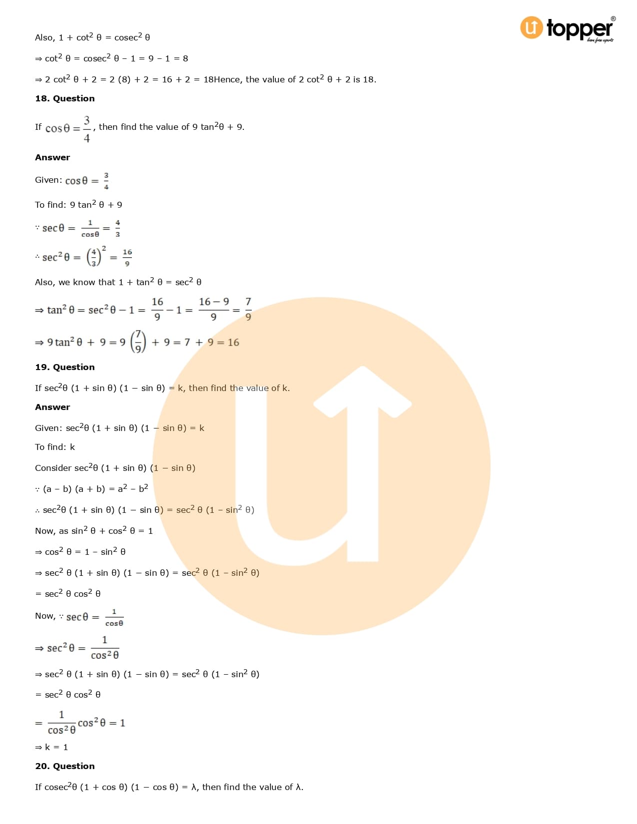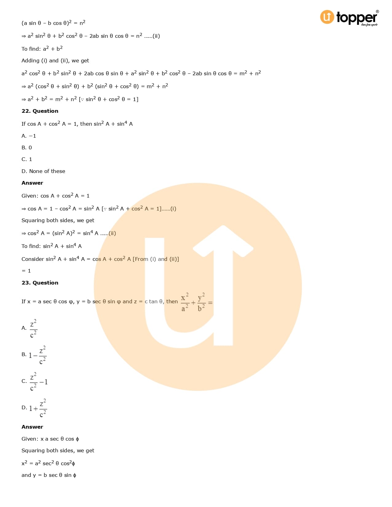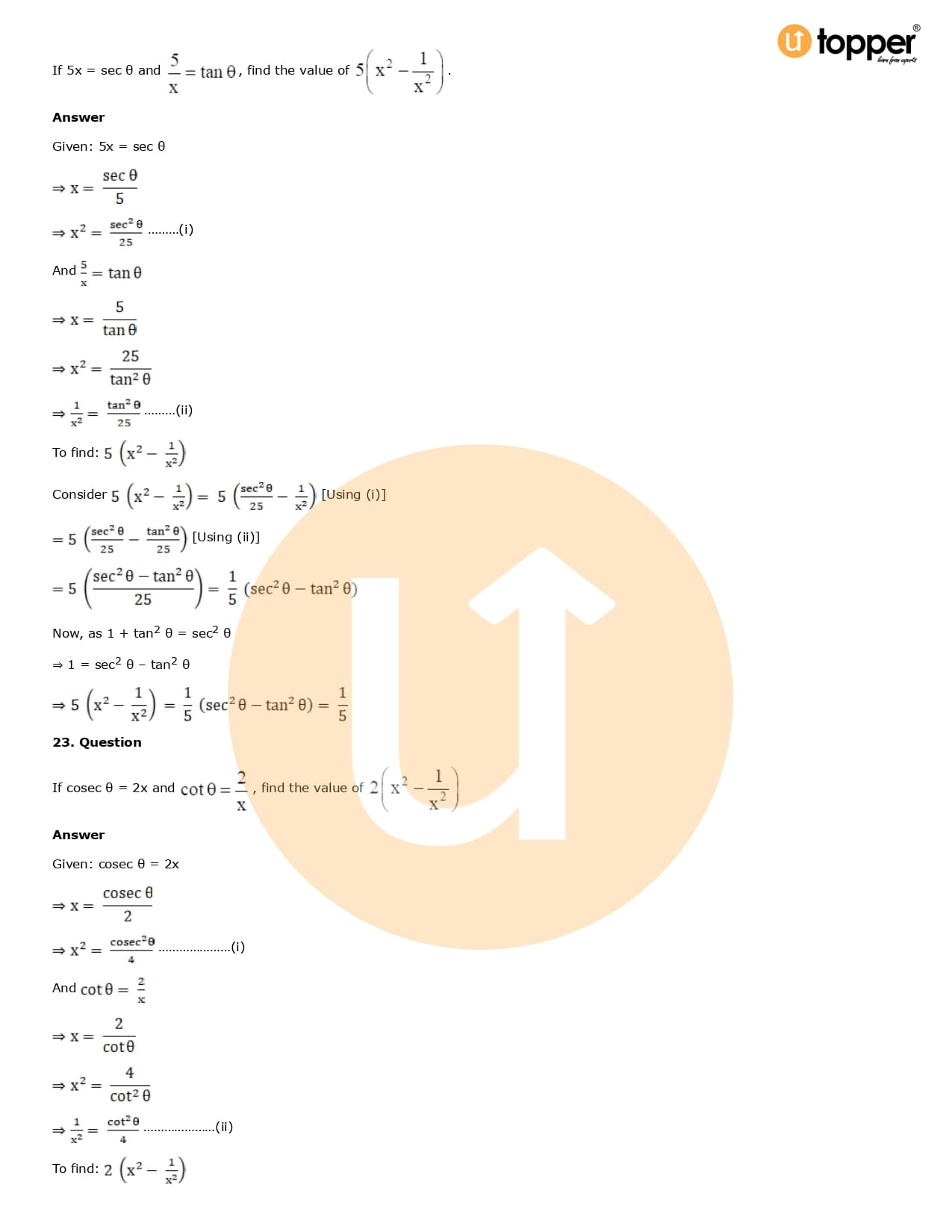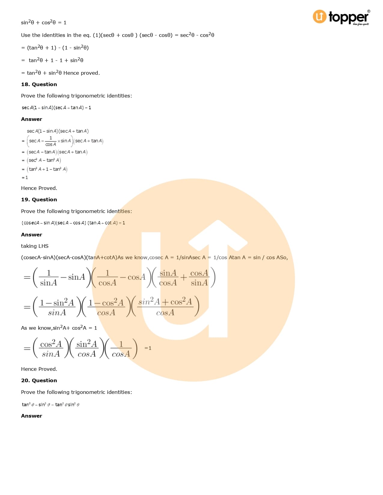 Download the latest version of RD Sharma Solutions for Class 10 Maths Chapter 6 Trigonometric Identities PDF at Utopper. It provides step by step Solution PDF. You can download RD Sharma Maths Solutions with a free PDF download option, which includes chapter wise solutions. All the questions in RD Sharma Solutions have been solved and explained by expert mathematics teachers as per the CBSE Board guidelines. By studying these Maths Solutions, you can easily get good marks in the CBSE board exams.
