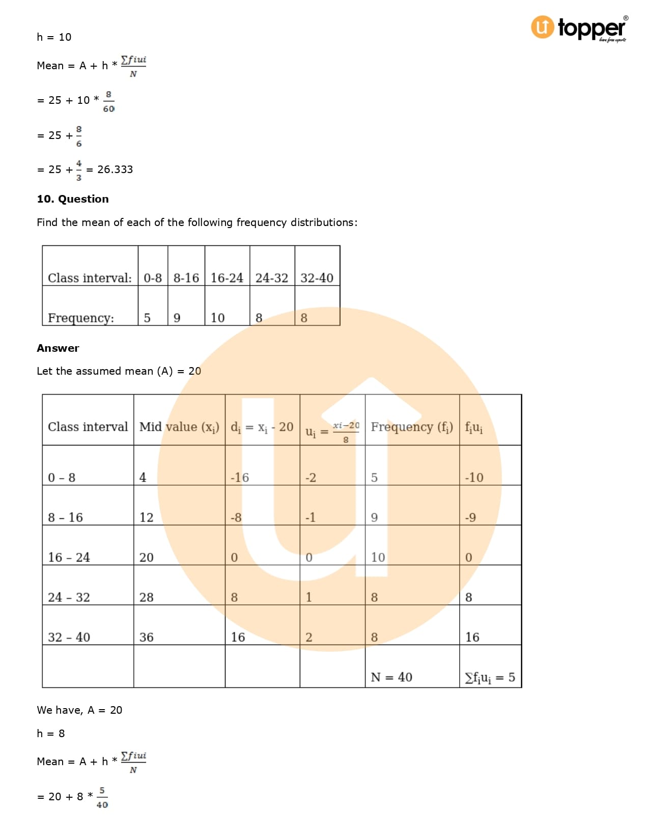 Download the latest version of RD Sharma Solutions for Class 10 Maths Chapter 7 Statistics PDF at Utopper. It provides step by step Solution PDF. You can download RD Sharma Maths Solutions with a free PDF download option, which includes chapter wise solutions. All the questions in RD Sharma Solutions have been solved and explained by expert mathematics teachers as per the CBSE Board guidelines. By studying these Maths Solutions, you can easily get good marks in the CBSE board exams.