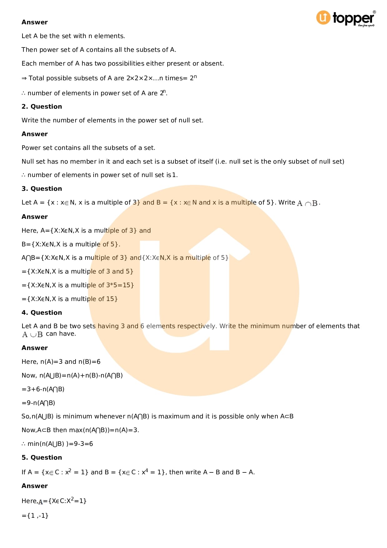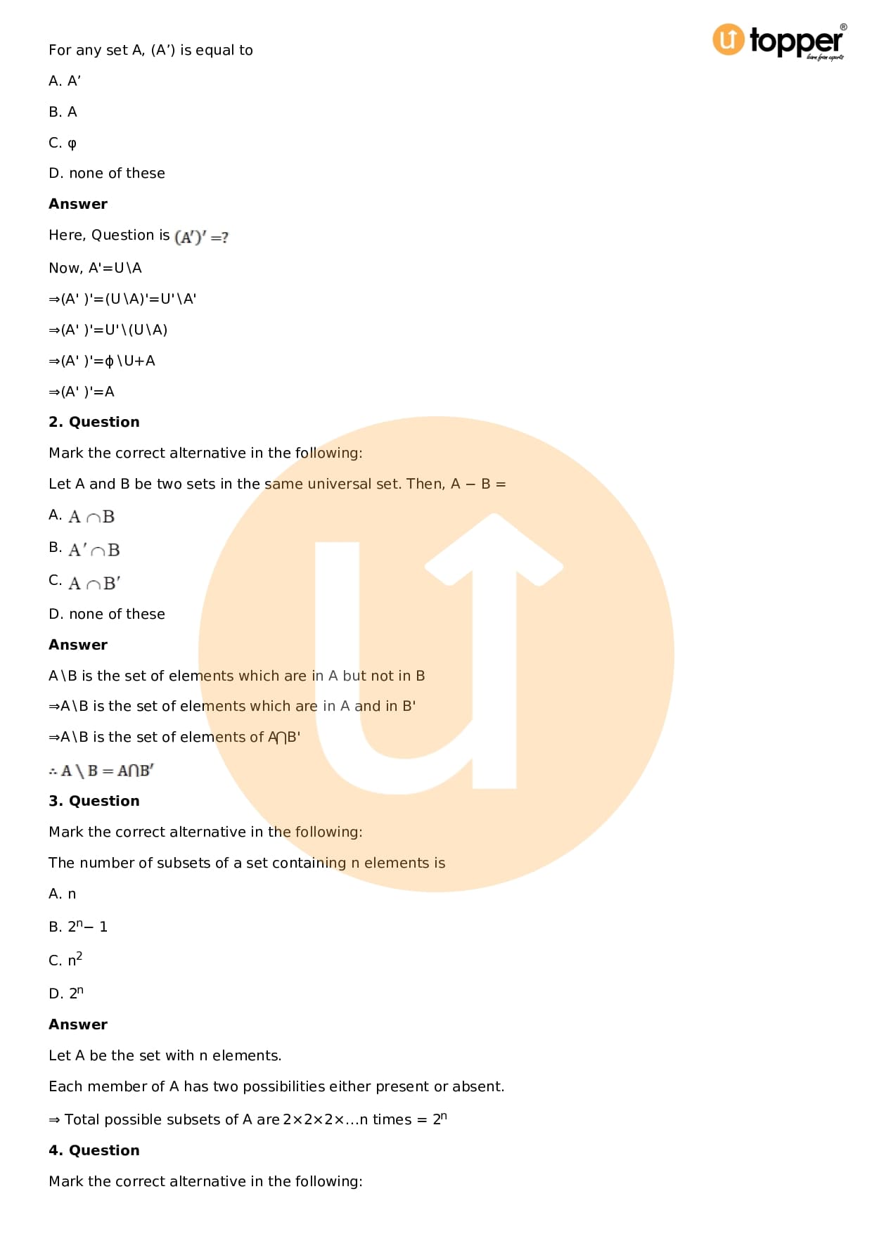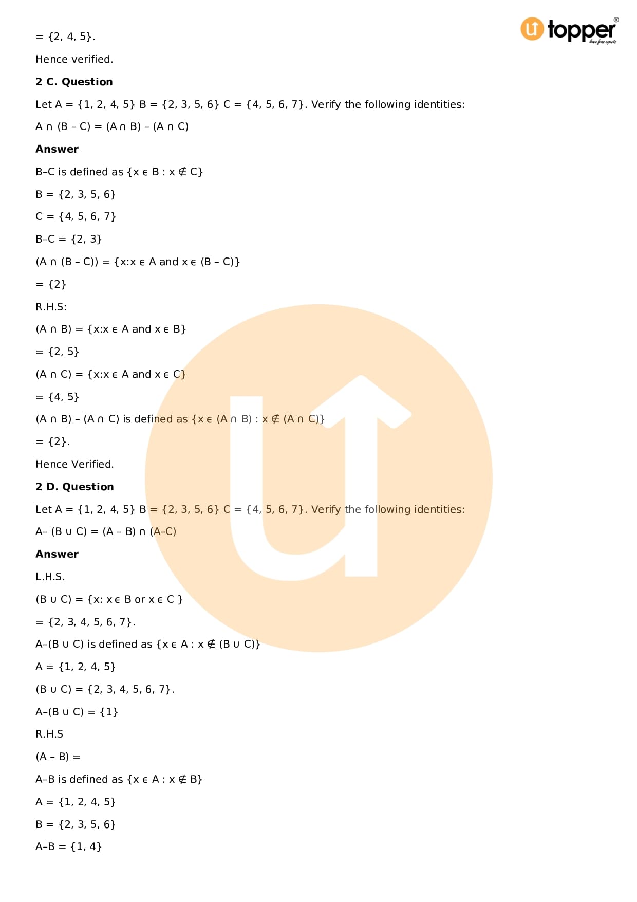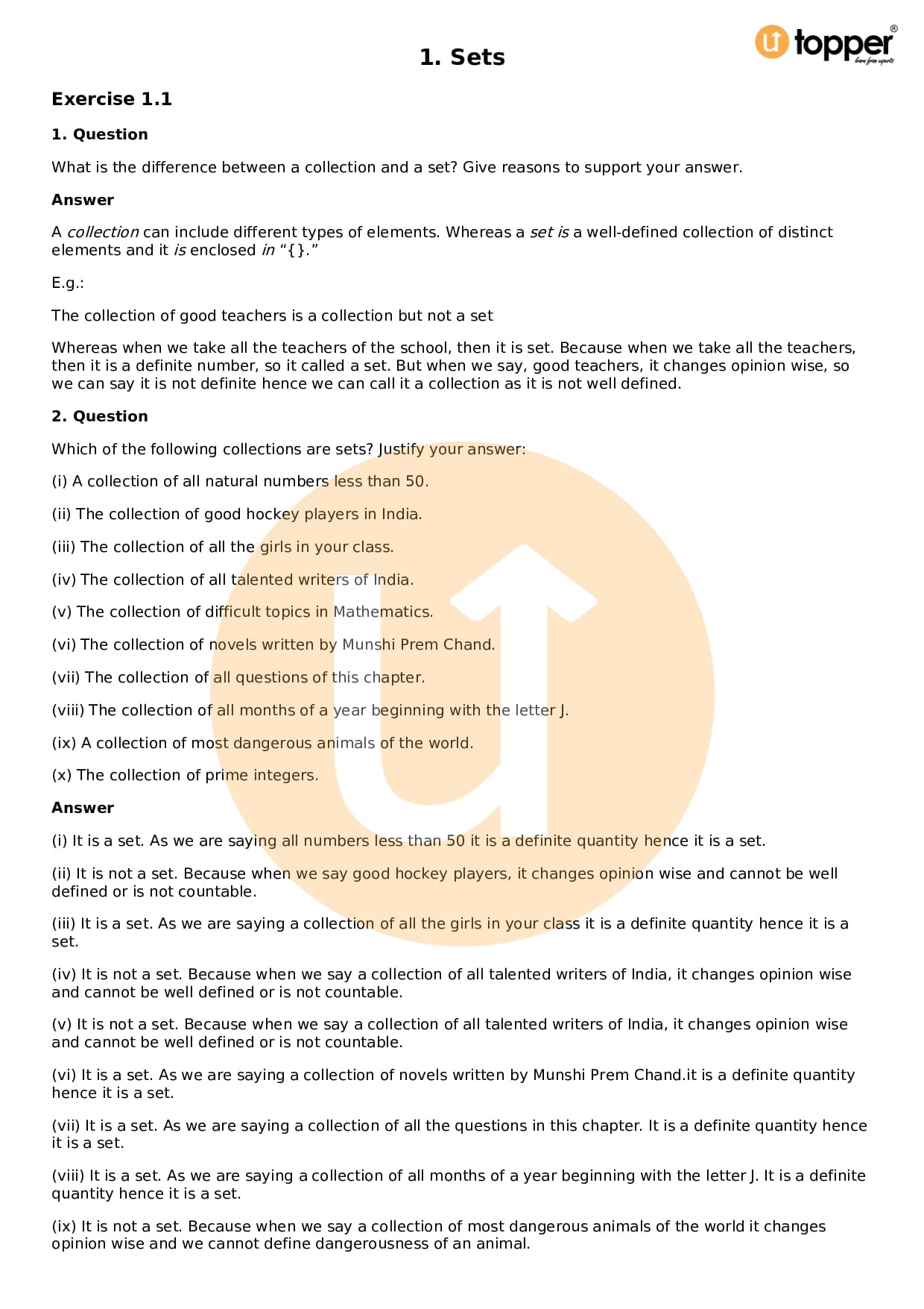 Download the latest version of RD Sharma Solutions for Class 11 Maths Chapter 1 Sets PDF at Utopper. It provides step by step Solution PDF. You can download RD Sharma Maths Solutions with a free PDF download option, which includes chapter wise solutions. All the questions in RD Sharma Solutions have been solved and explained by expert mathematics teachers as per the CBSE Board guidelines. By studying these Maths Solutions, you can easily get good marks in the CBSE board exams.