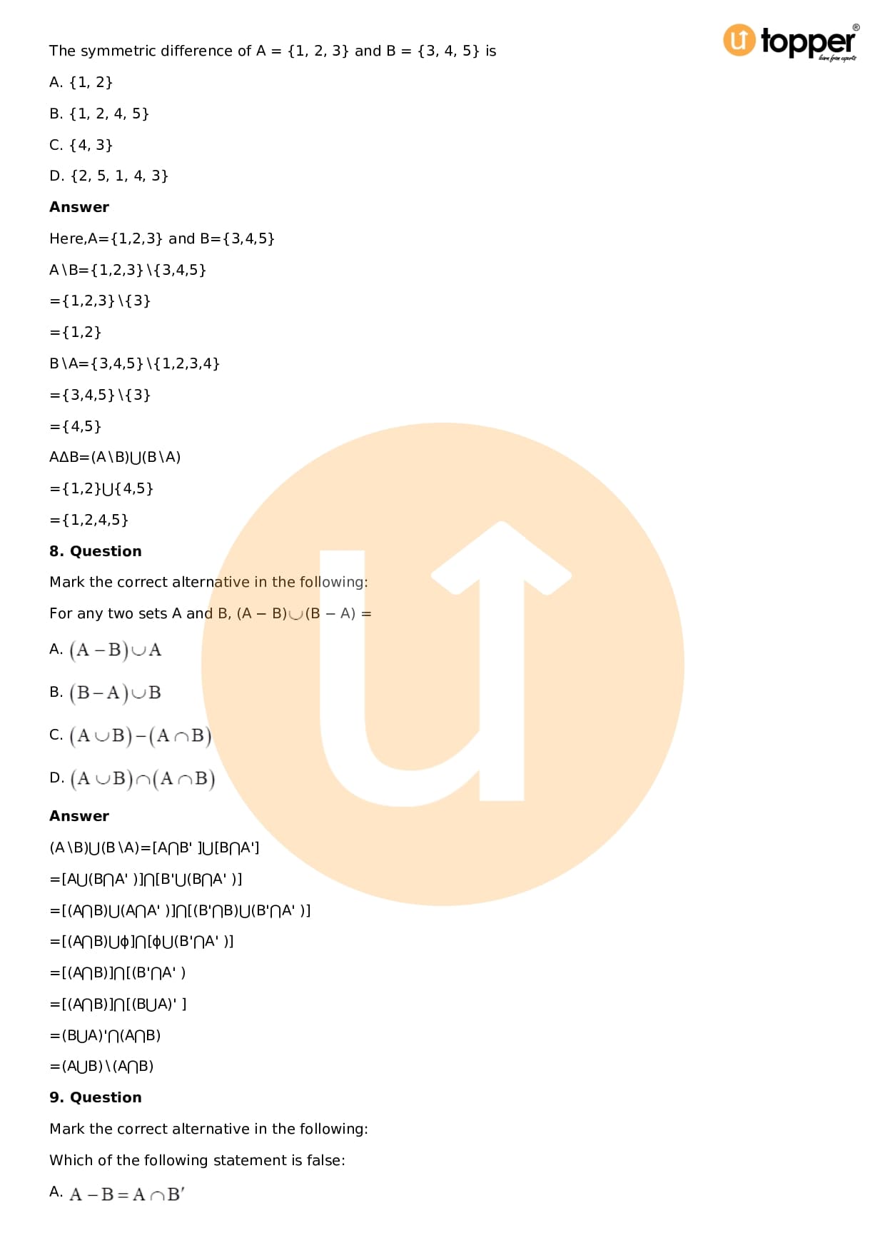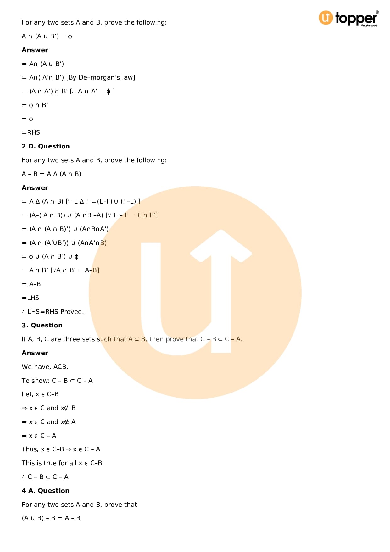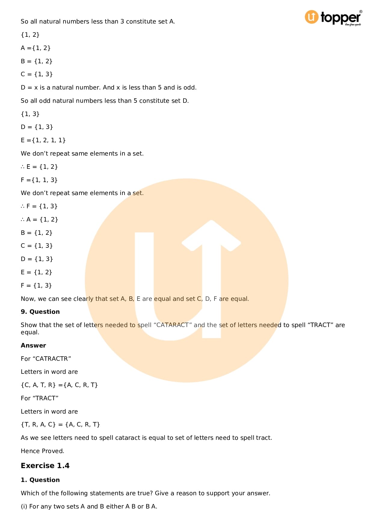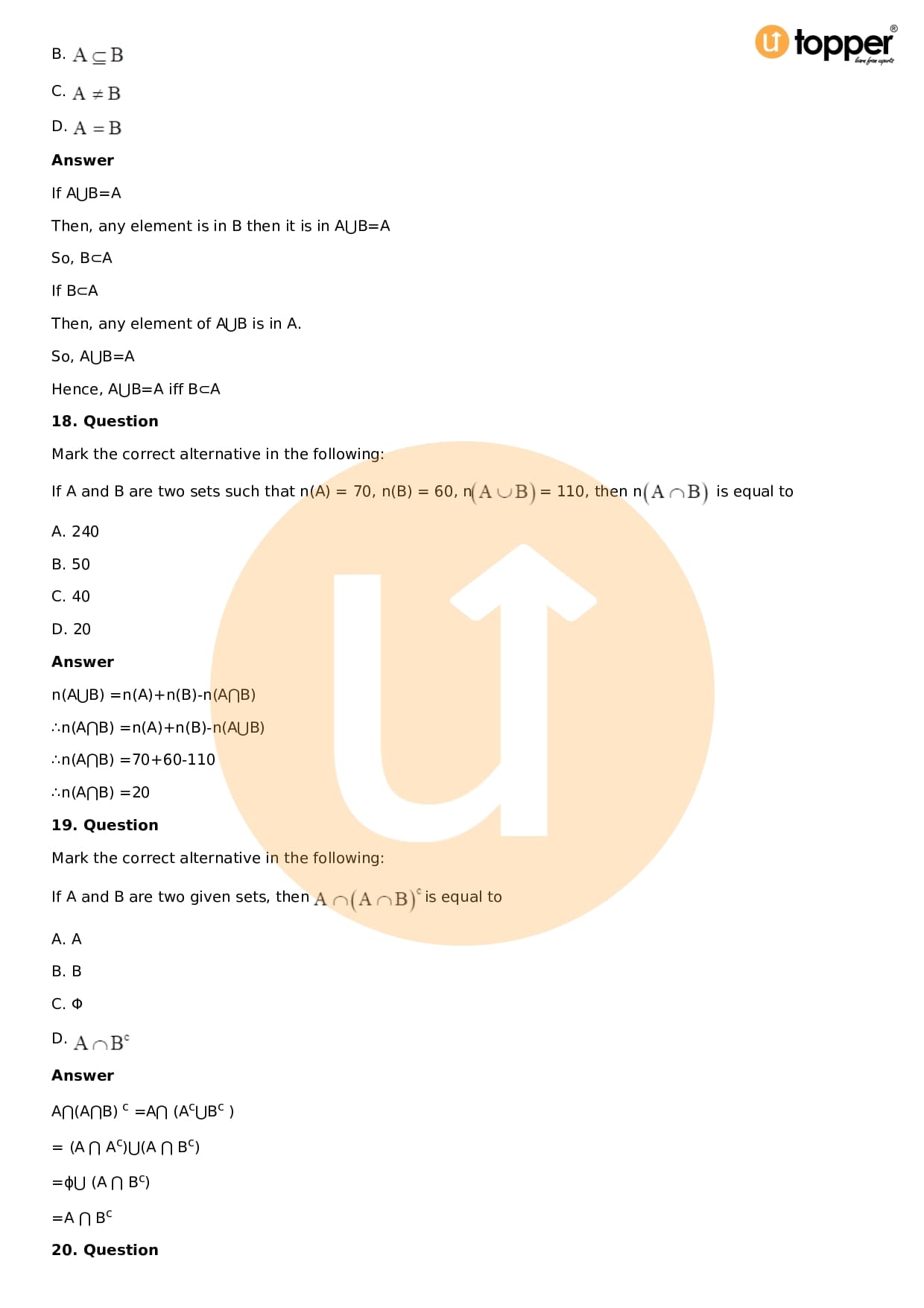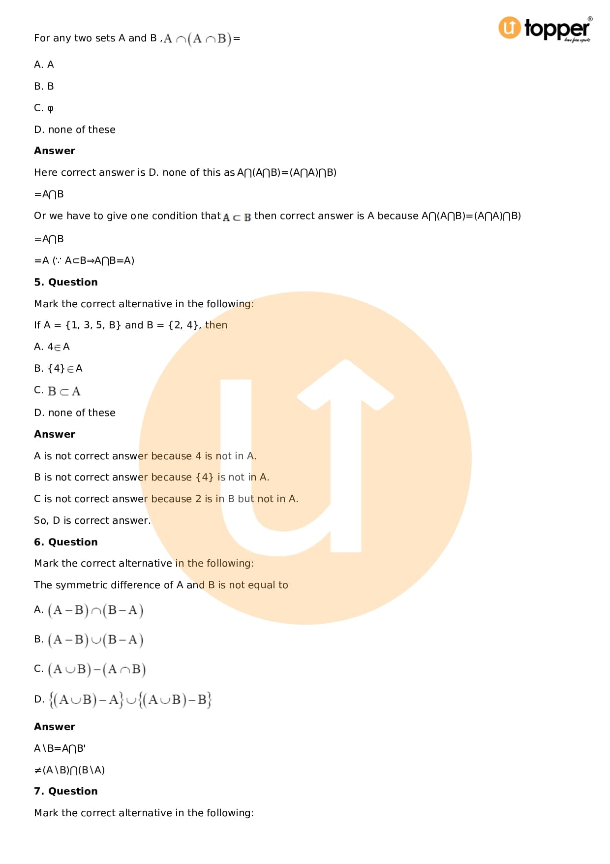 Download the latest version of RD Sharma Solutions for Class 11 Maths Chapter 1 Sets PDF at Utopper. It provides step by step Solution PDF. You can download RD Sharma Maths Solutions with a free PDF download option, which includes chapter wise solutions. All the questions in RD Sharma Solutions have been solved and explained by expert mathematics teachers as per the CBSE Board guidelines. By studying these Maths Solutions, you can easily get good marks in the CBSE board exams.