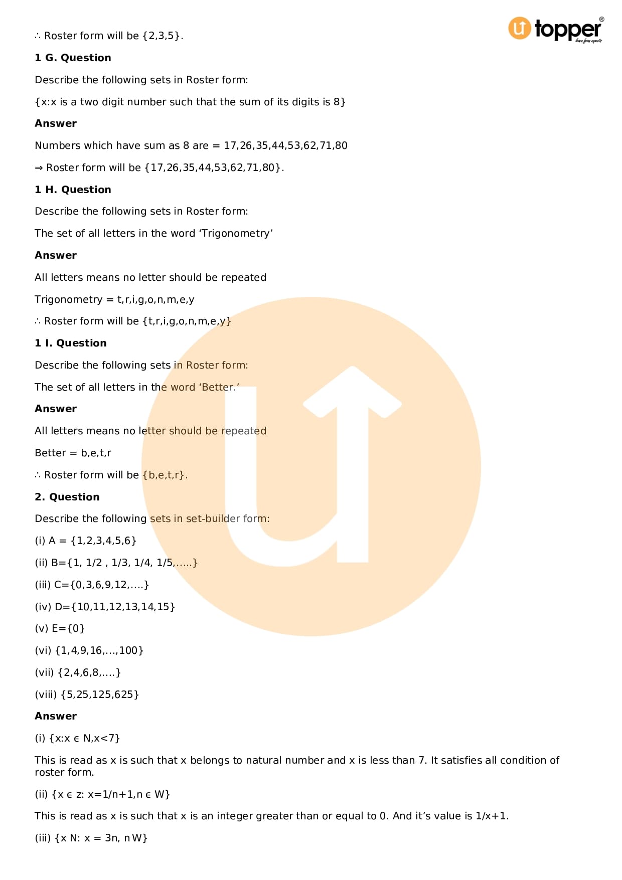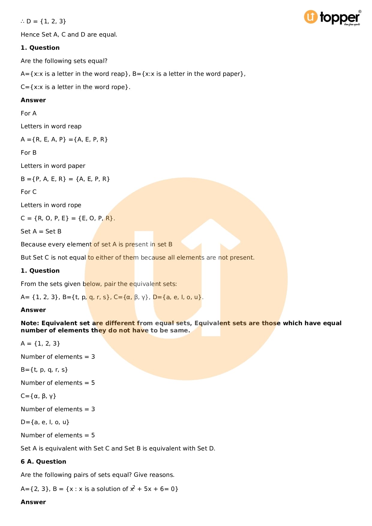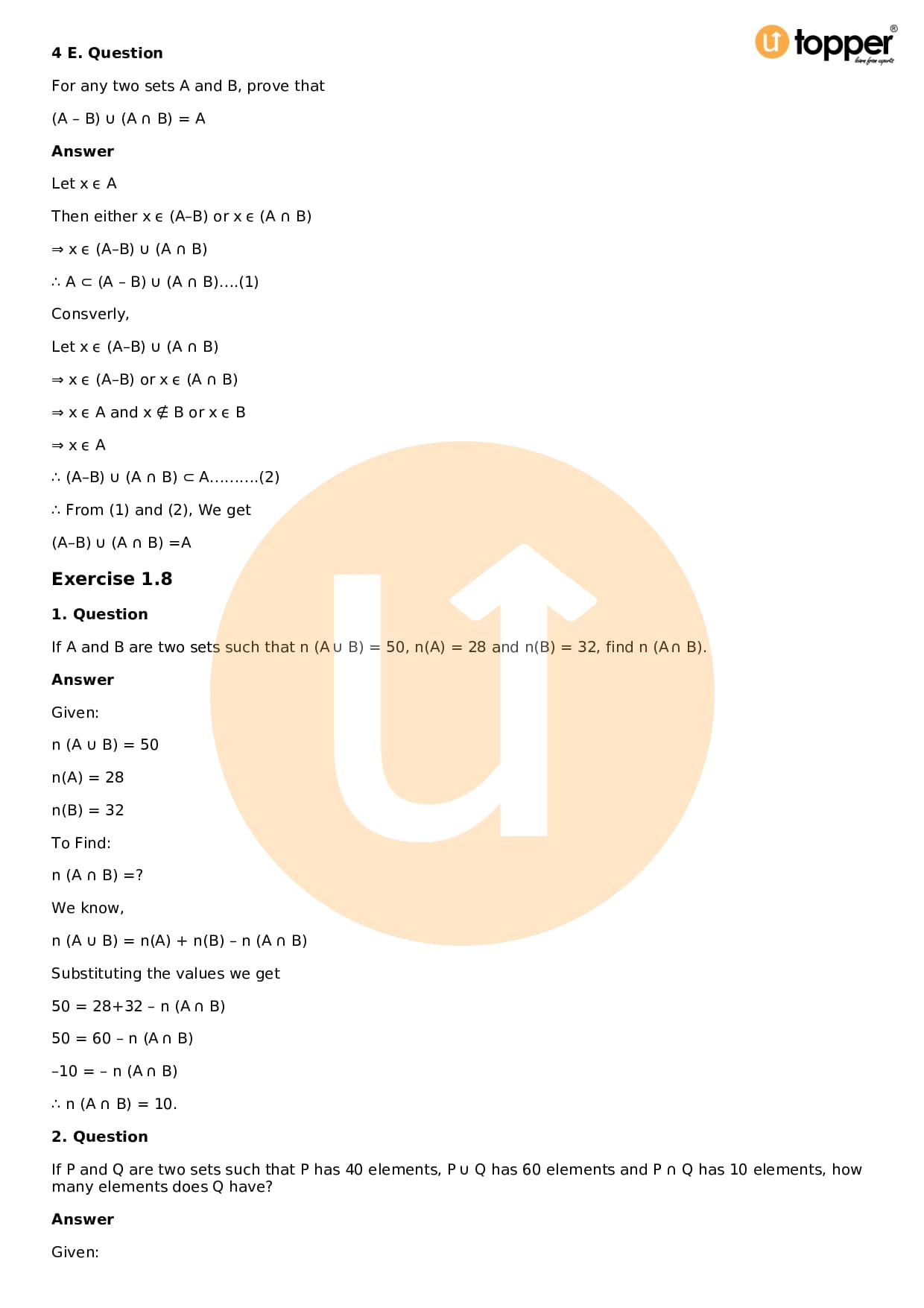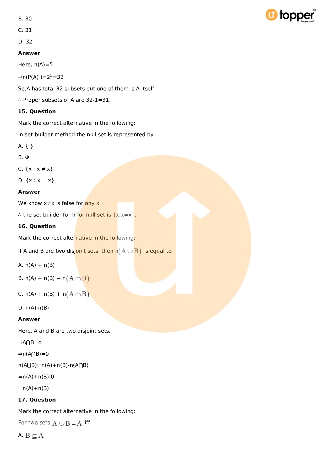 Download the latest version of RD Sharma Solutions for Class 11 Maths Chapter 1 Sets PDF at Utopper. It provides step by step Solution PDF. You can download RD Sharma Maths Solutions with a free PDF download option, which includes chapter wise solutions. All the questions in RD Sharma Solutions have been solved and explained by expert mathematics teachers as per the CBSE Board guidelines. By studying these Maths Solutions, you can easily get good marks in the CBSE board exams.