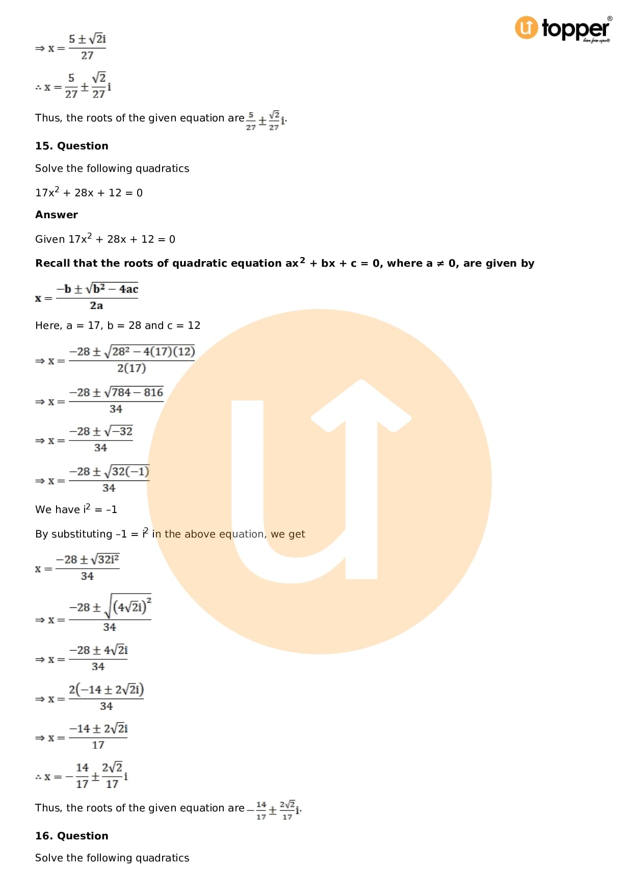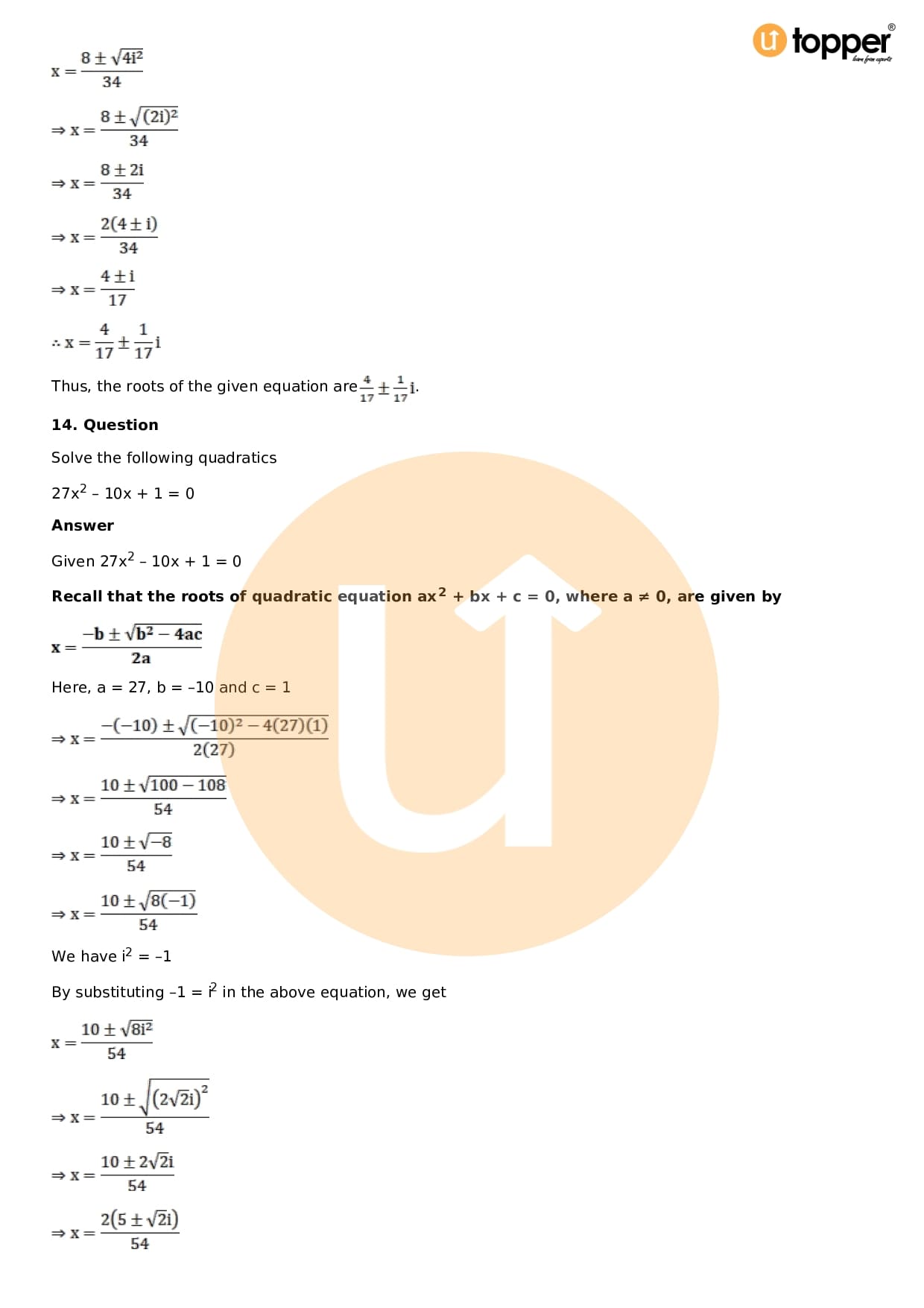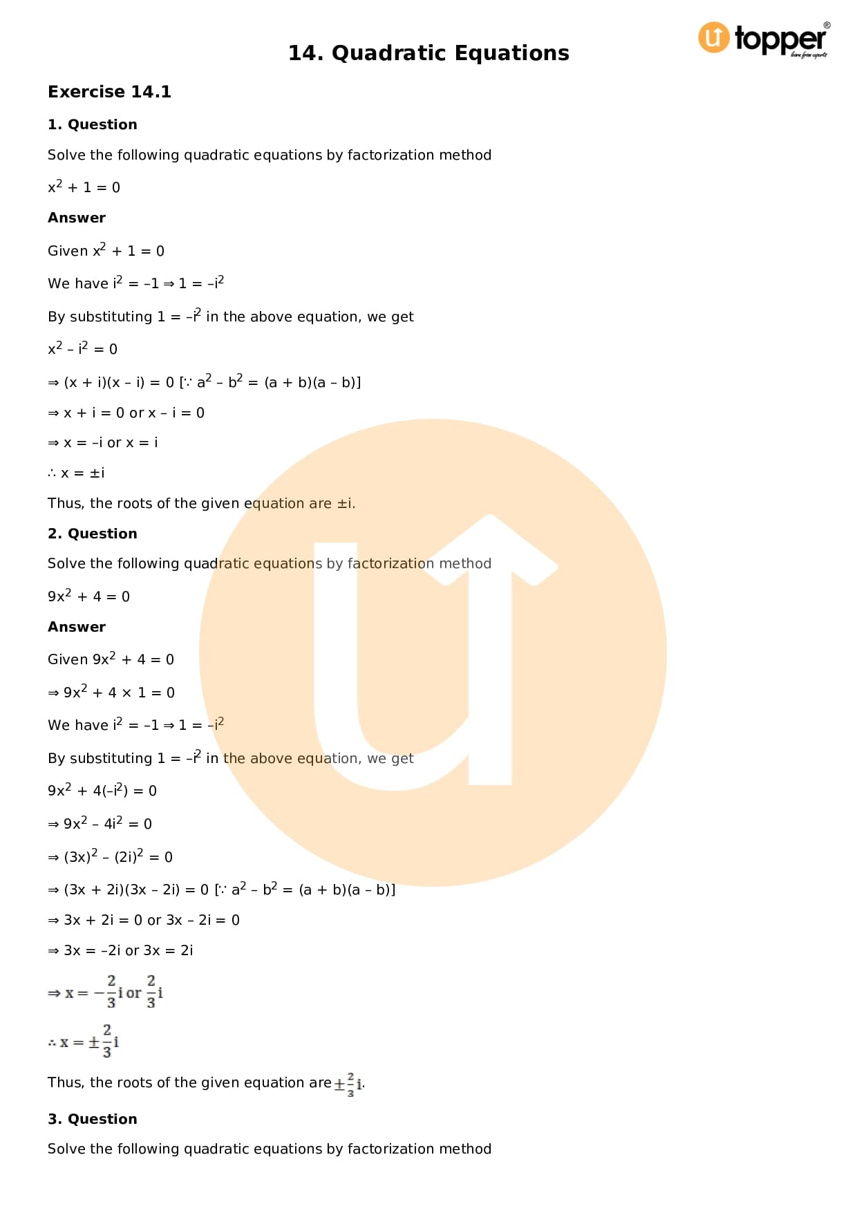 - Chapter 14 – Quadratic Equations