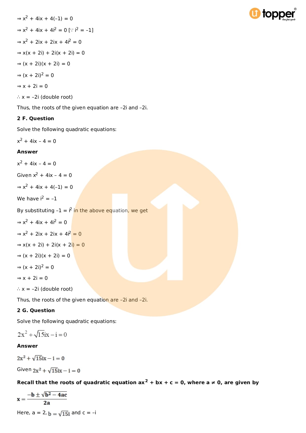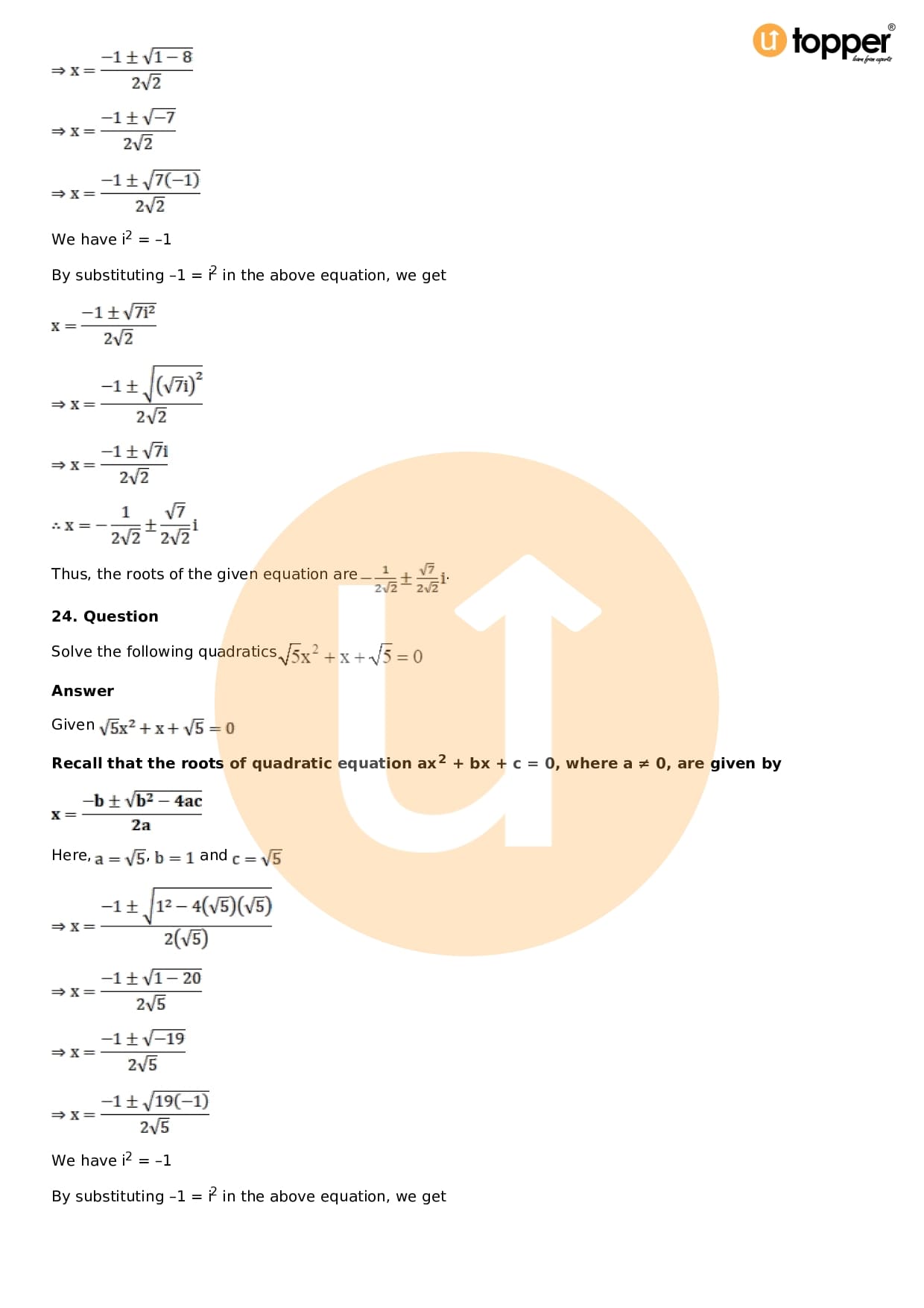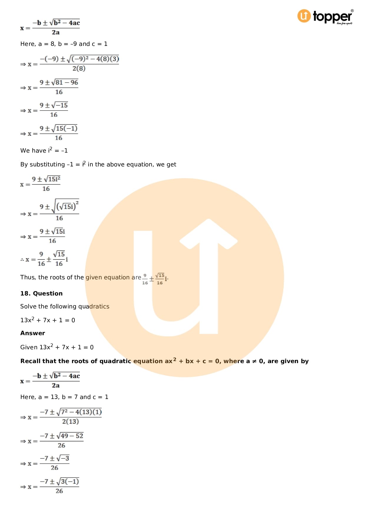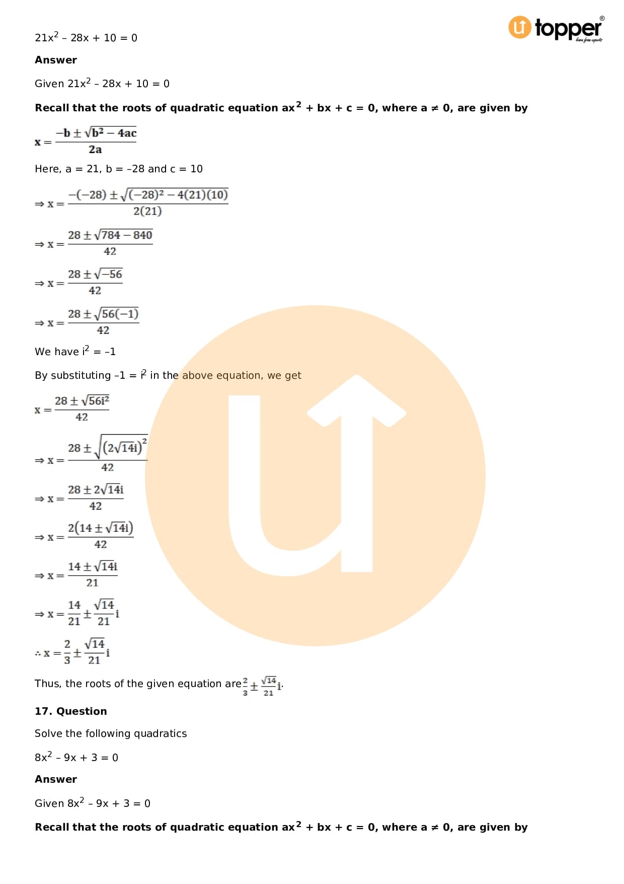 - Chapter 14 – Quadratic Equations
