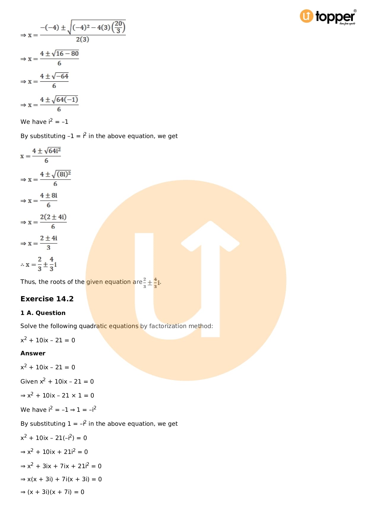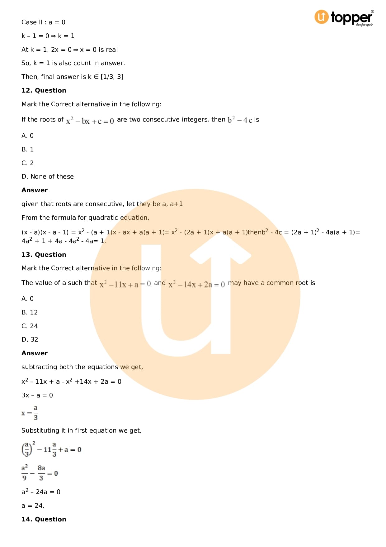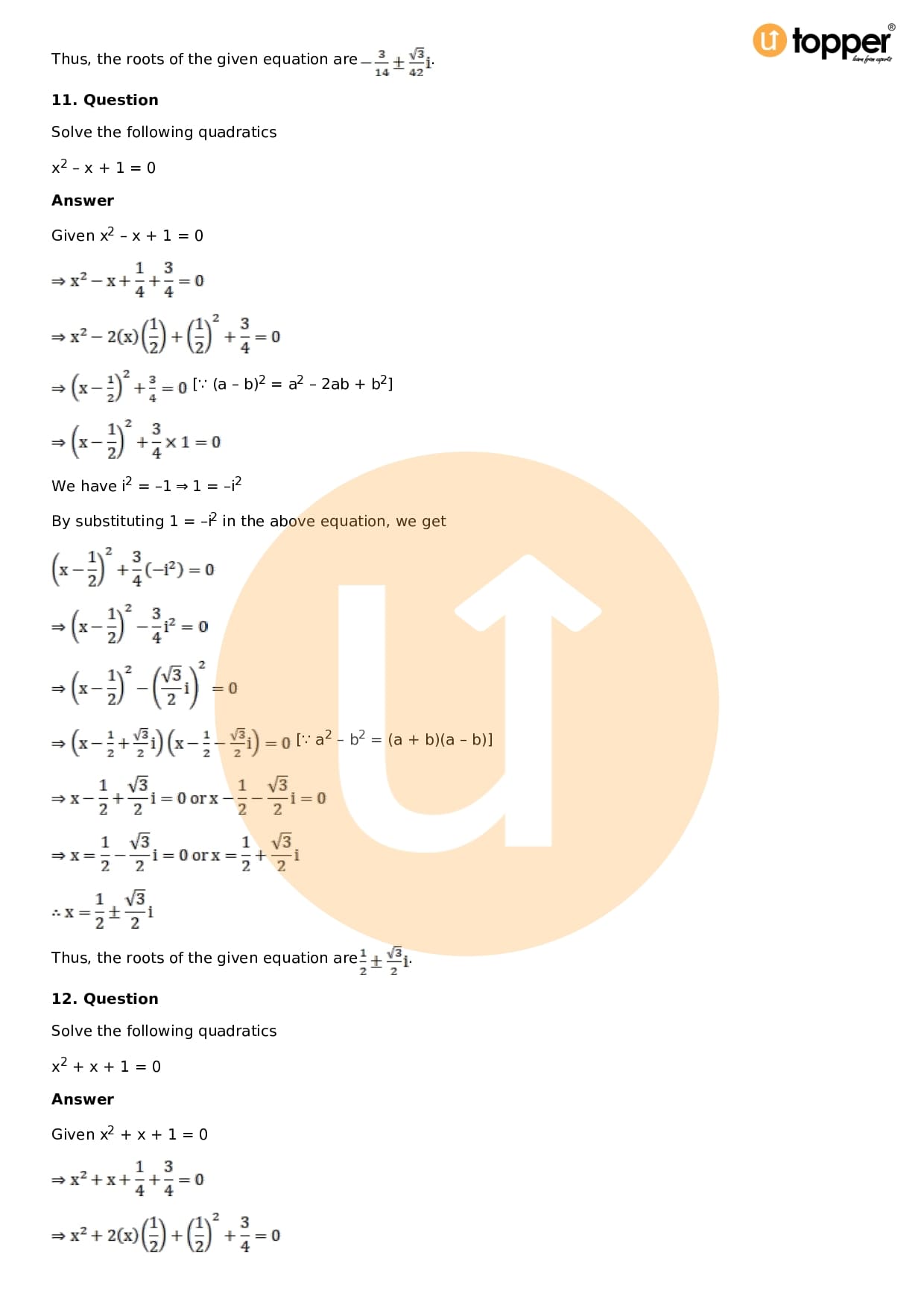Download the latest version of RD Sharma Solutions for Class 11 Maths Chapter 14 Quadratic Equations PDF at Utopper. It provides step by step Solution PDF. You can download RD Sharma Maths Solutions with a free PDF download option, which includes chapter wise solutions. All the questions in RD Sharma Solutions have been solved and explained by expert mathematics teachers as per the CBSE Board guidelines. By studying these Maths Solutions, you can easily get good marks in the CBSE board exams.