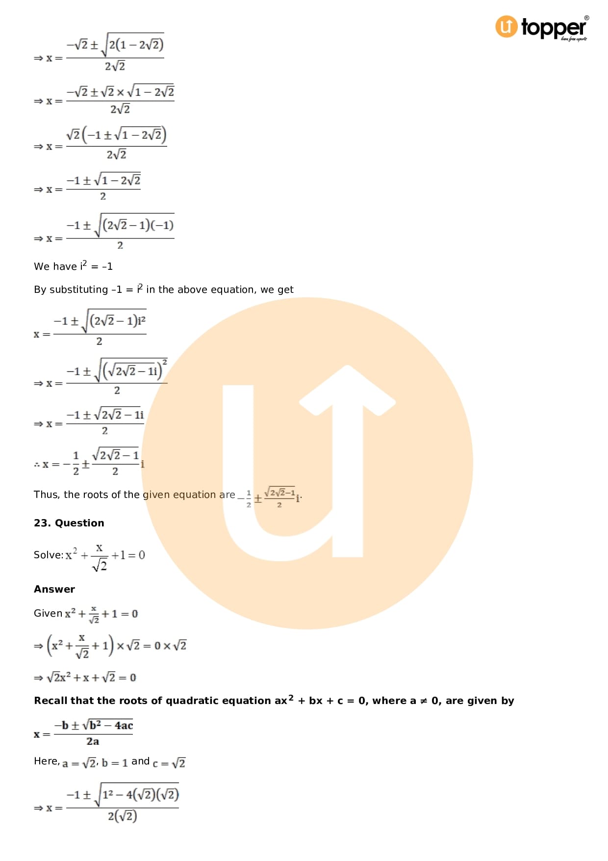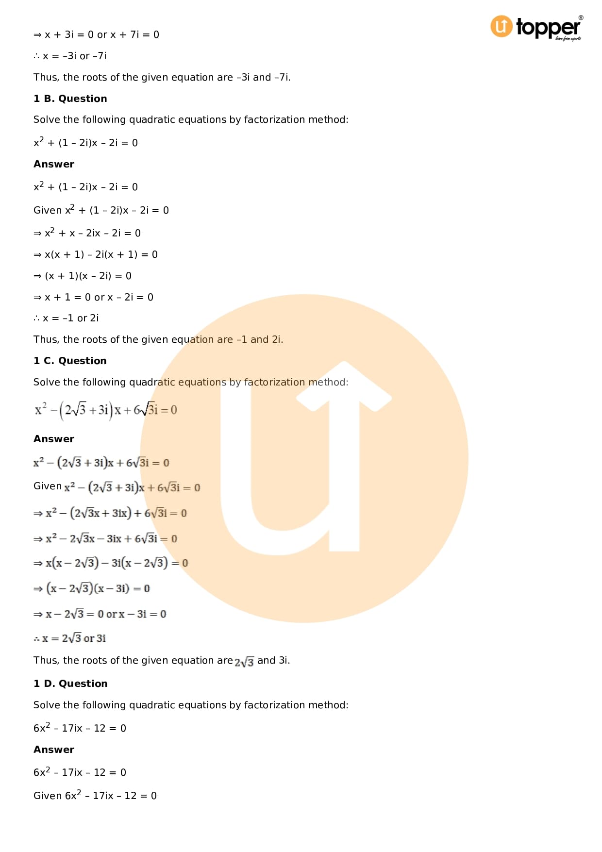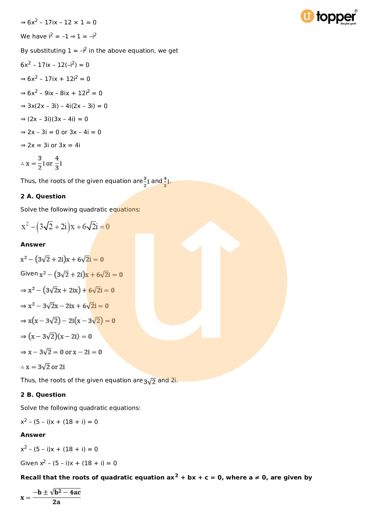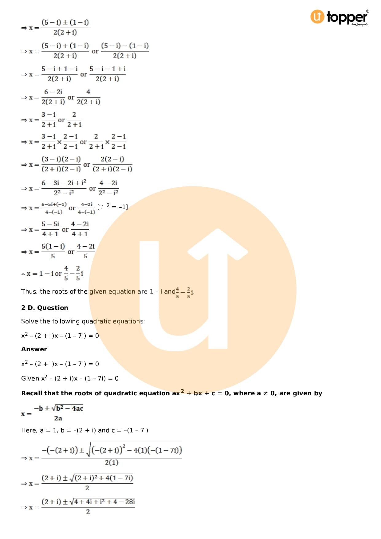 Download the latest version of RD Sharma Solutions for Class 11 Maths Chapter 14 Quadratic Equations PDF at Utopper. It provides step by step Solution PDF. You can download RD Sharma Maths Solutions with a free PDF download option, which includes chapter wise solutions. All the questions in RD Sharma Solutions have been solved and explained by expert mathematics teachers as per the CBSE Board guidelines. By studying these Maths Solutions, you can easily get good marks in the CBSE board exams.