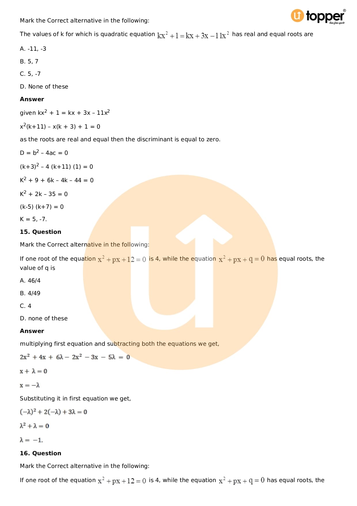 - These answers are prepared by the experts of Utopper who have more years of teaching experience.