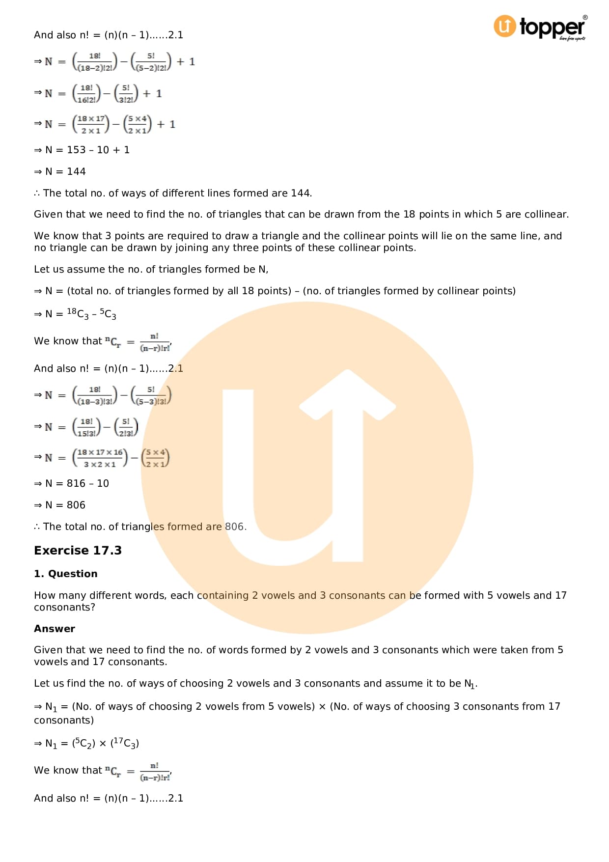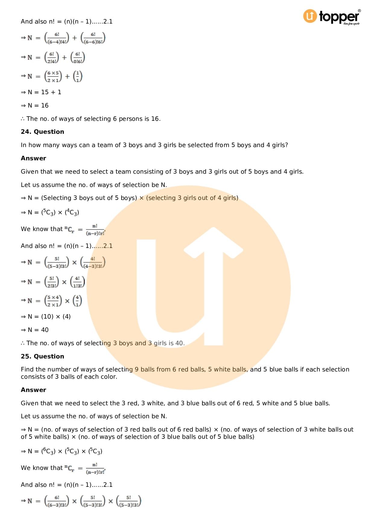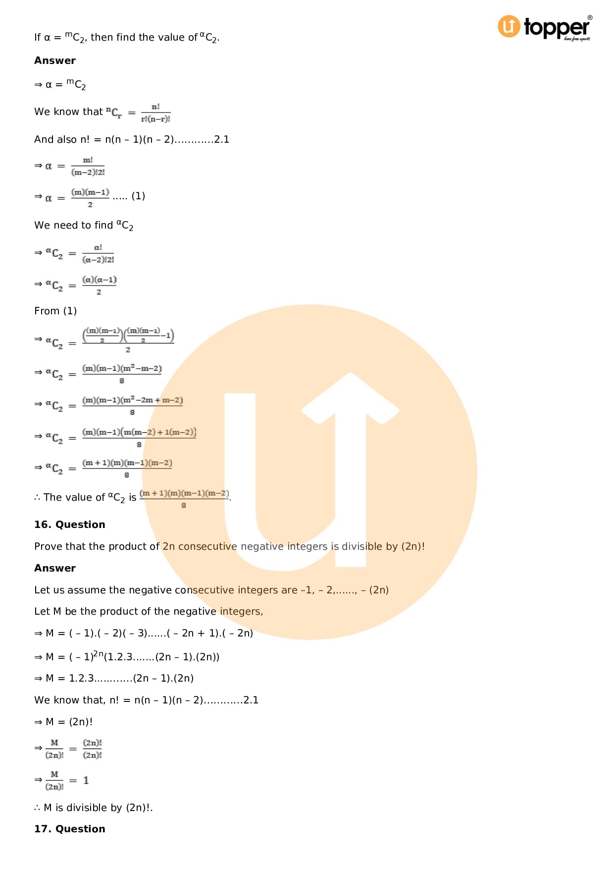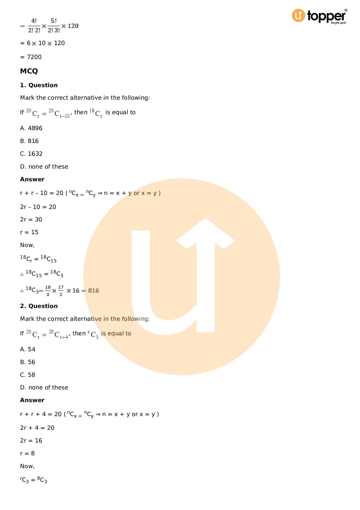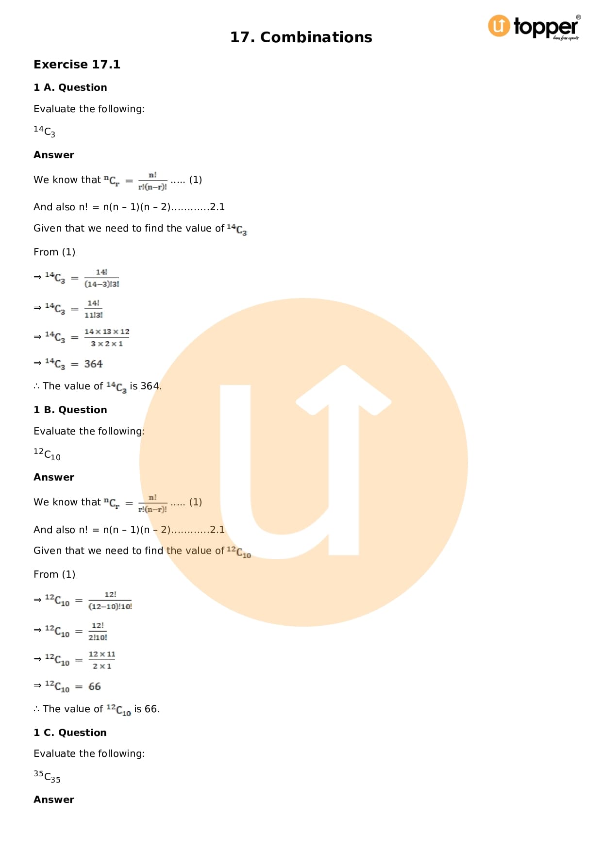 RD Sharma Class 11 Maths Chapter 17 Combinations Solutions PDF Download