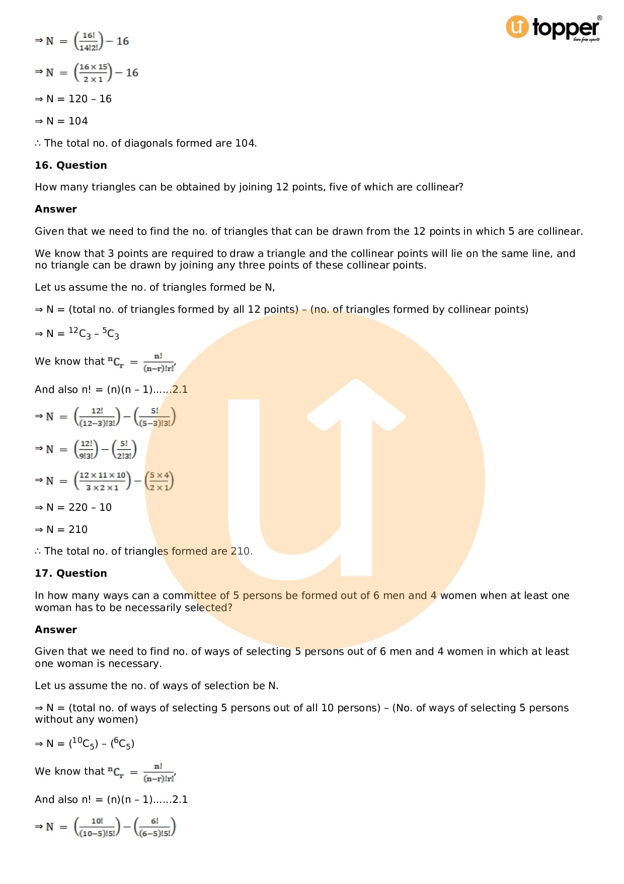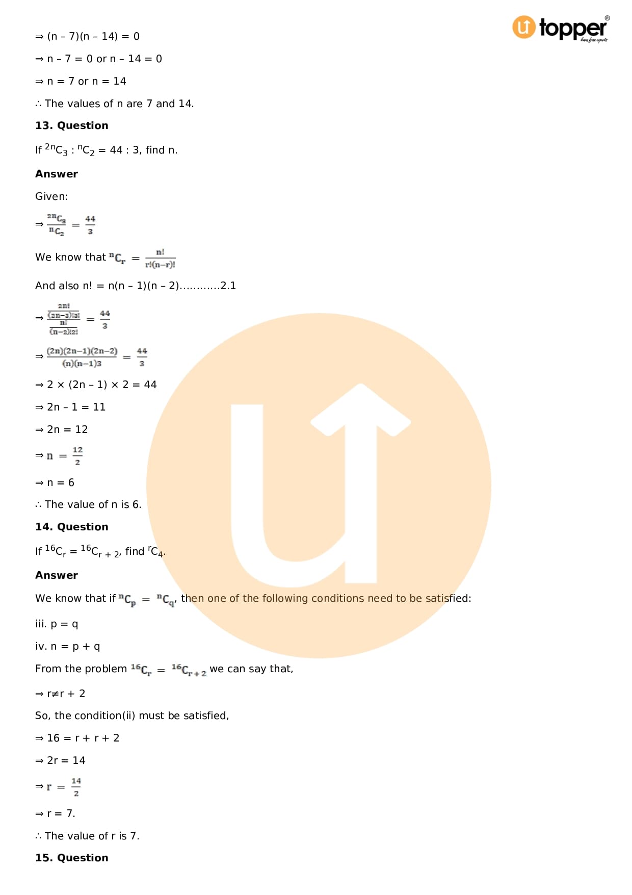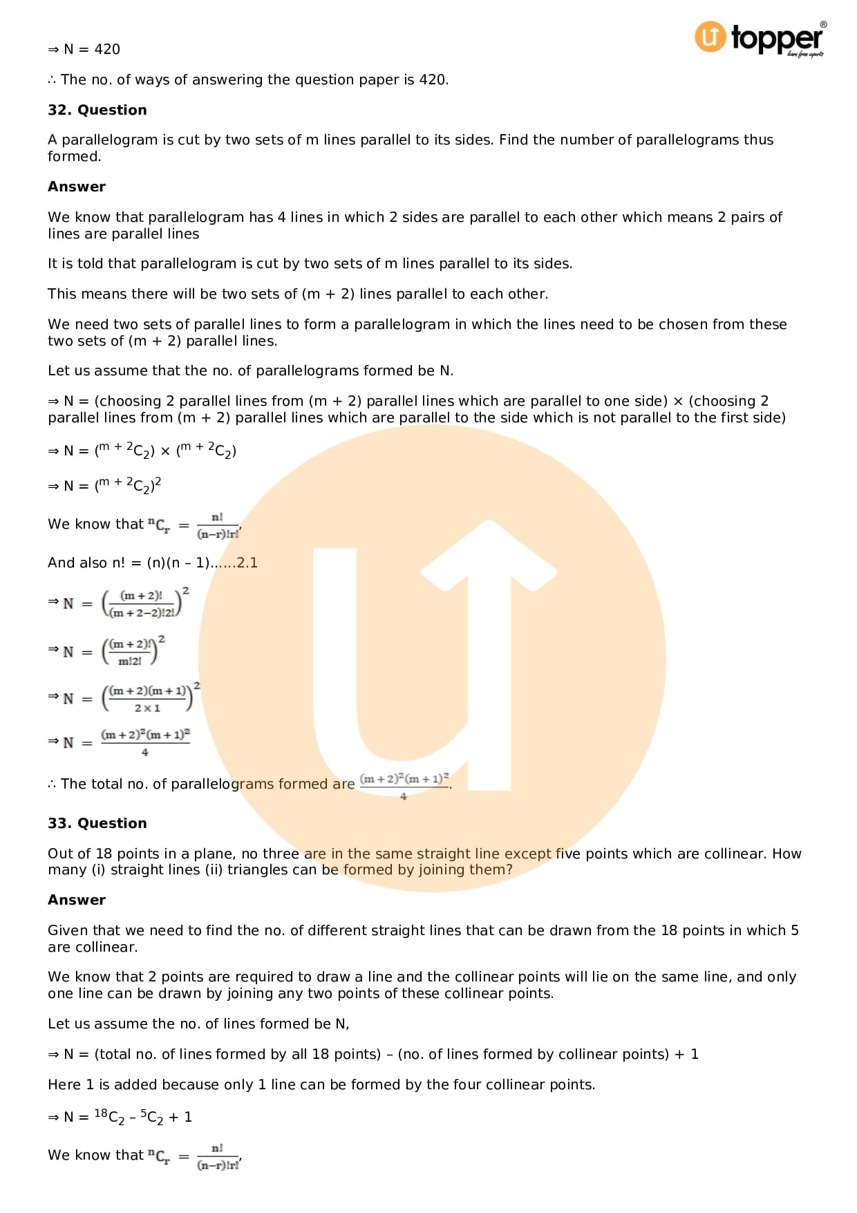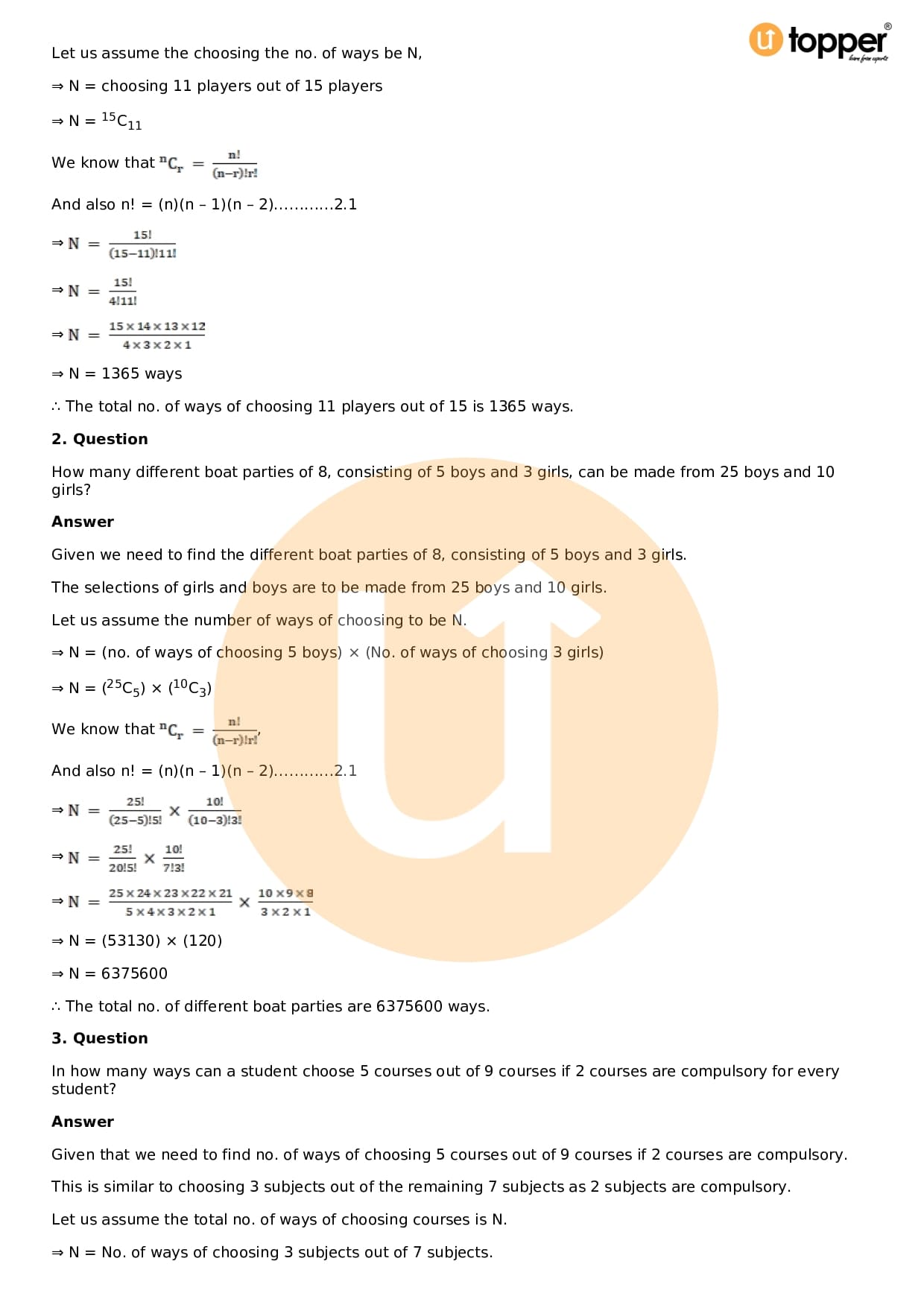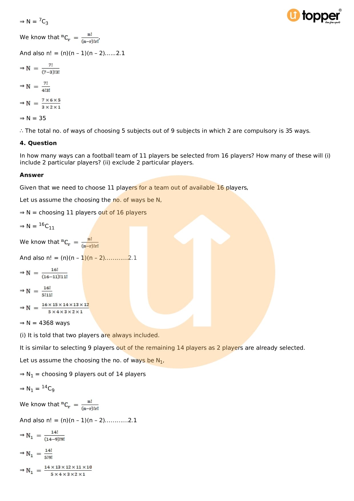 RD Sharma Class 11 Maths Chapter 17 Combinations Solutions PDF Download