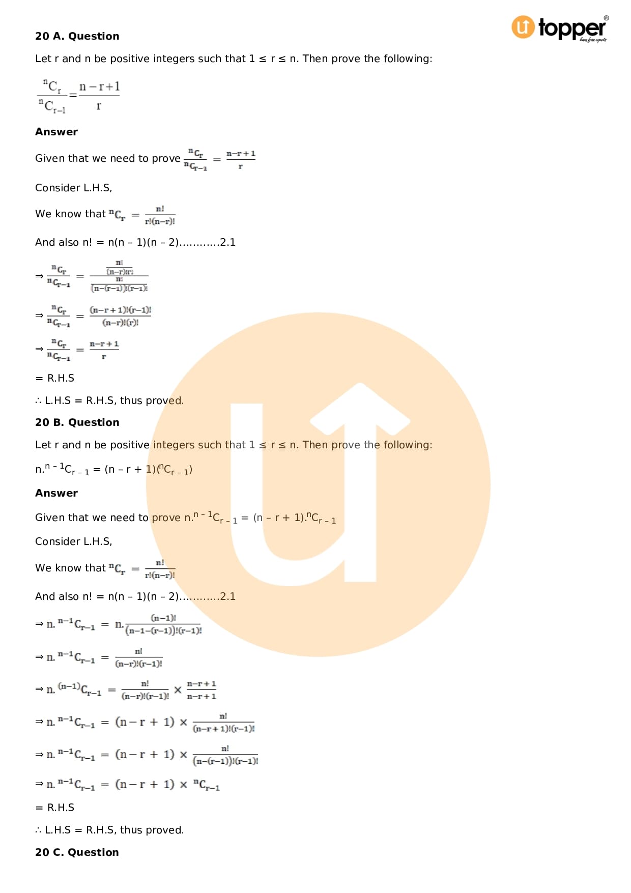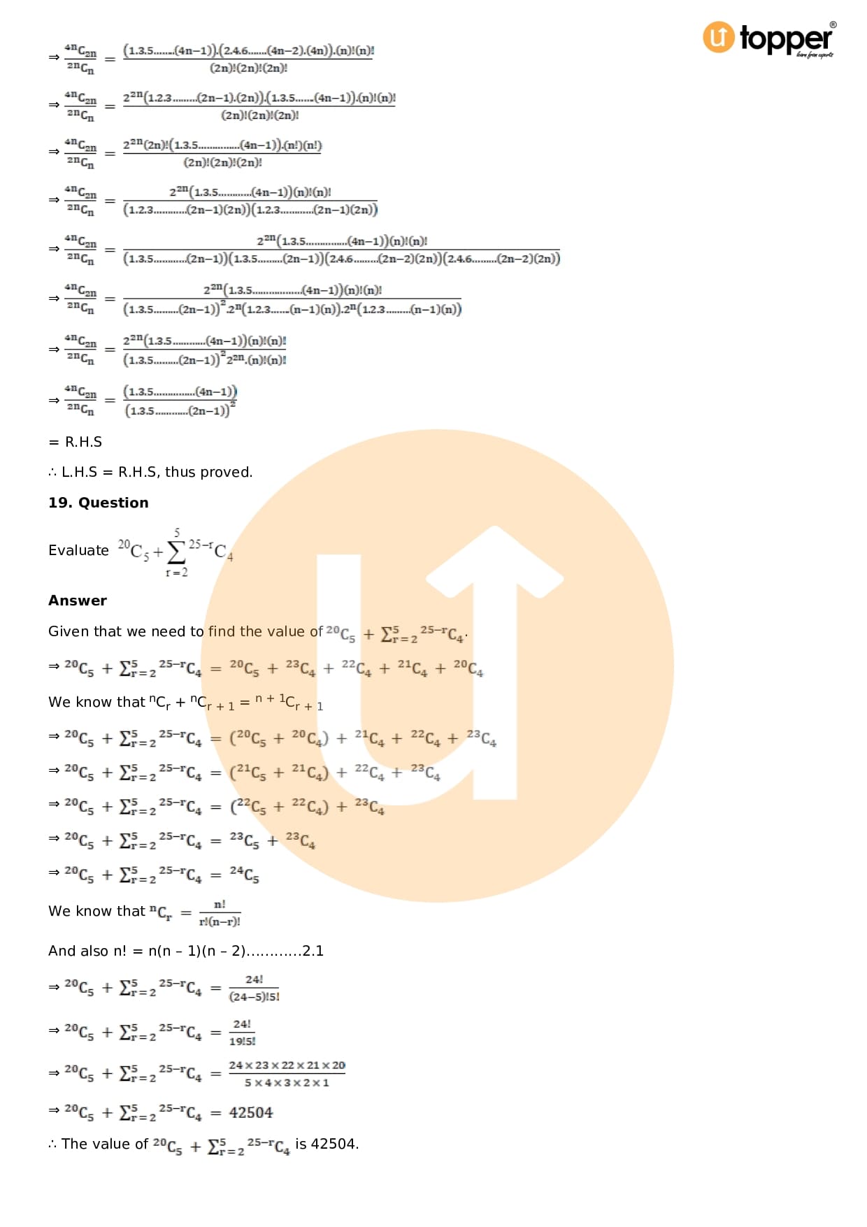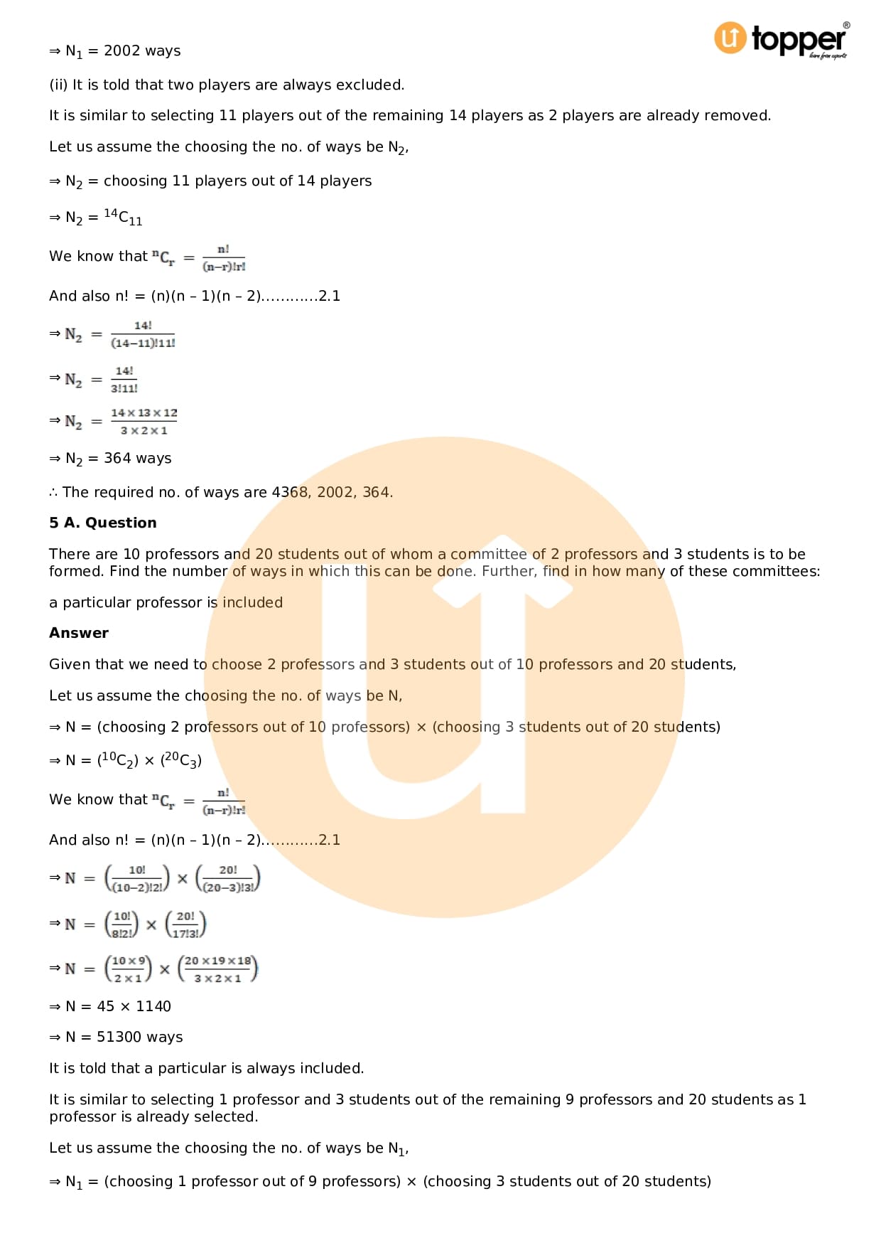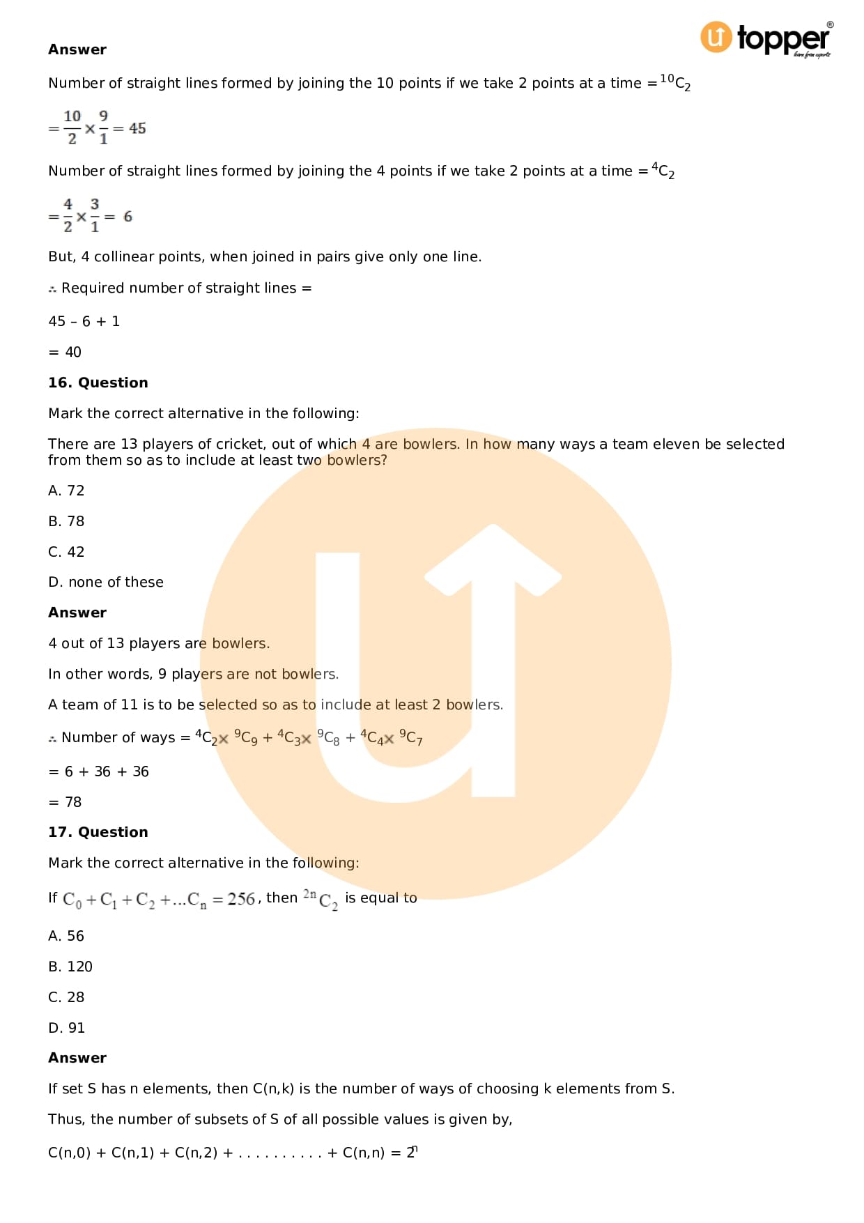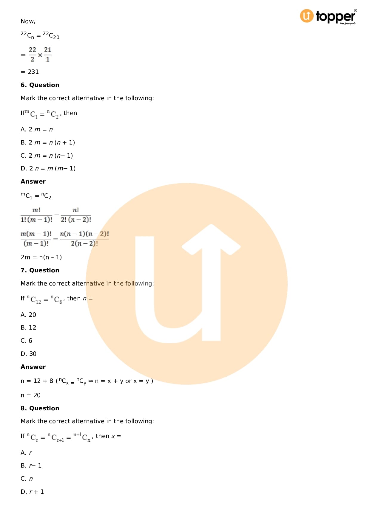 RD Sharma Class 11 Maths Chapter 17 Combinations Solutions PDF Download