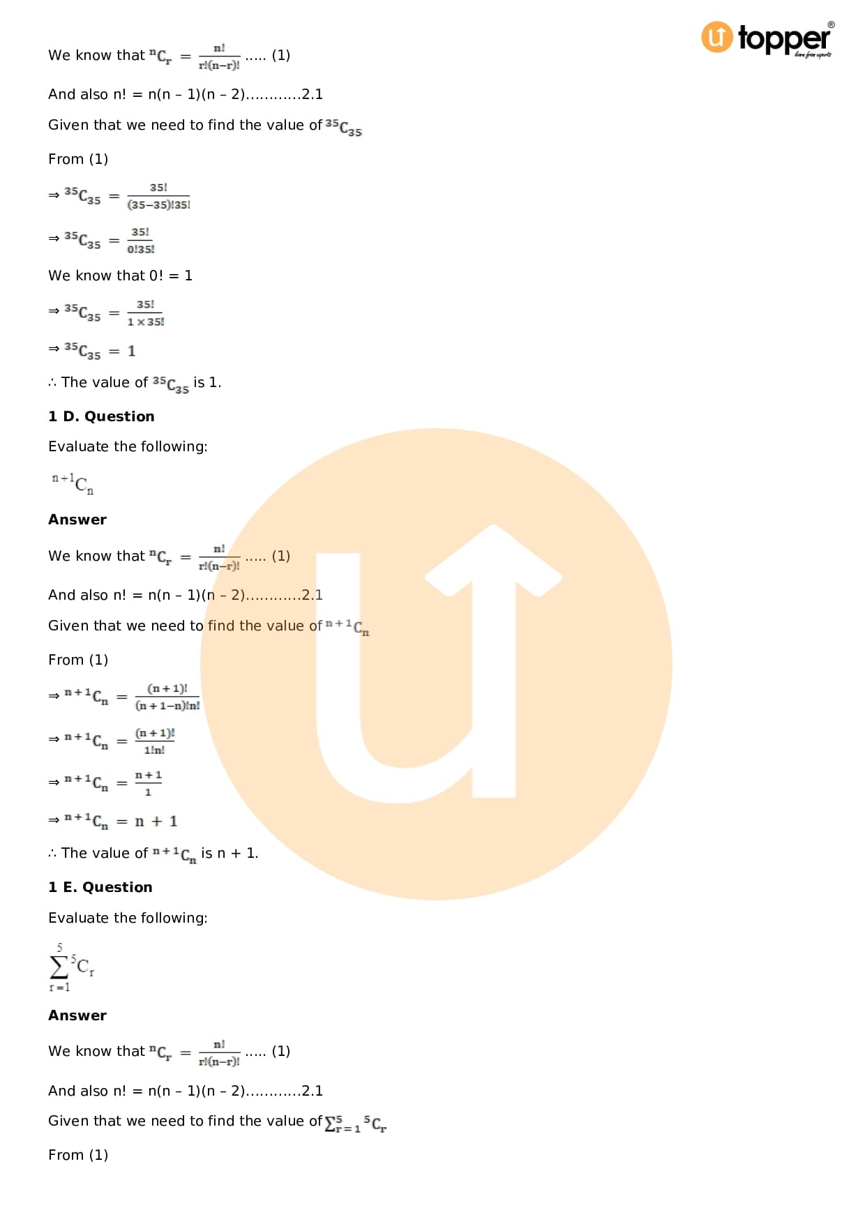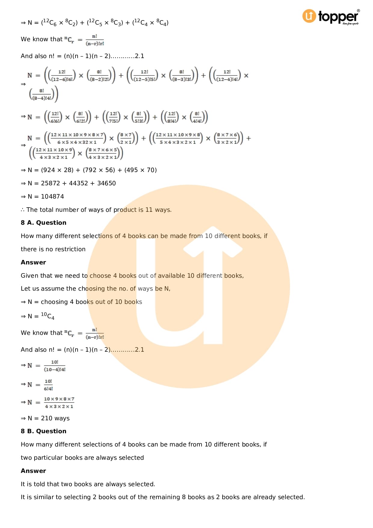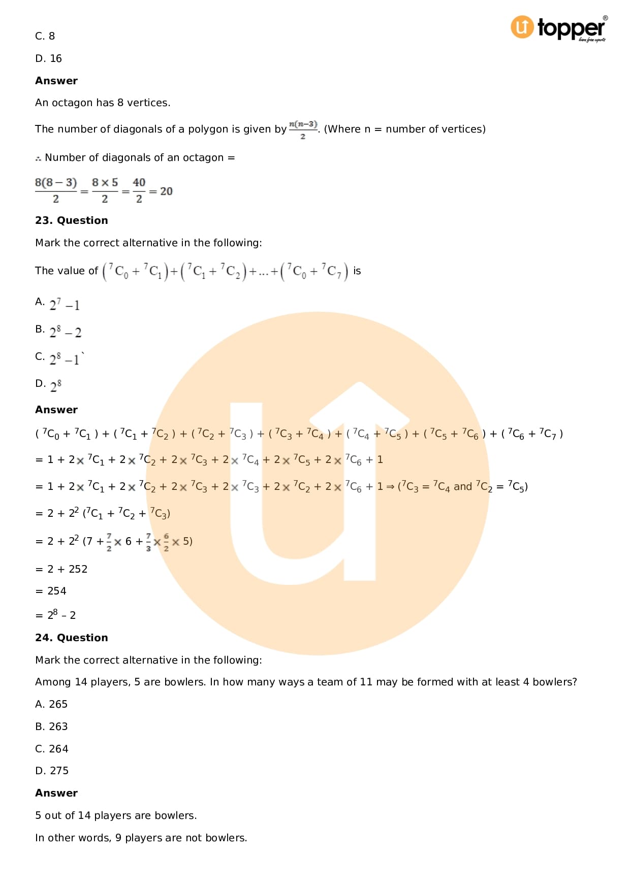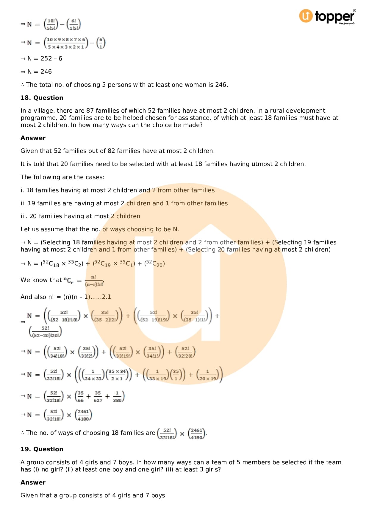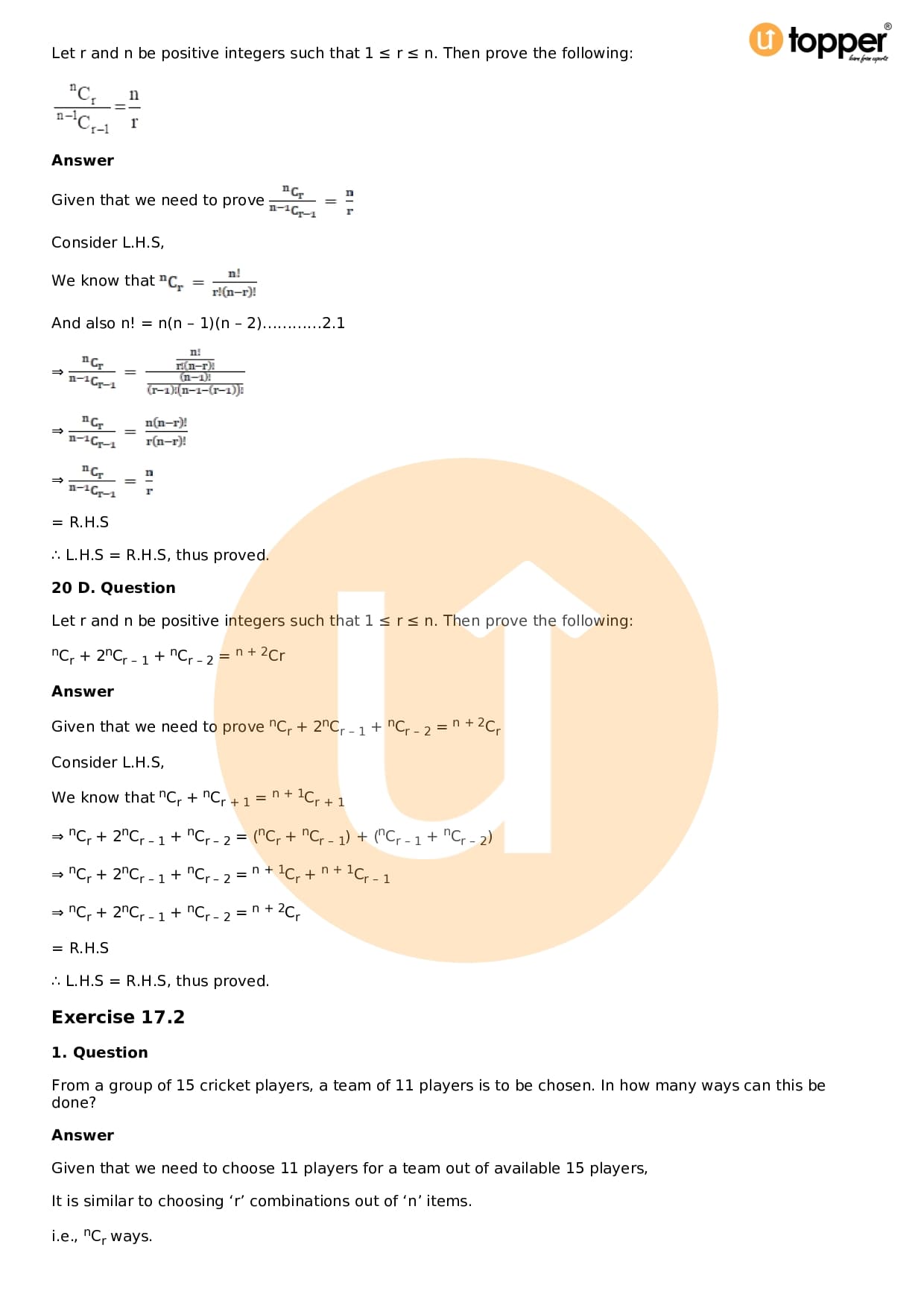 Download the latest version of RD Sharma Solutions for Class 11 Maths Chapter 17 Combinations PDF at Utopper. It provides step by step Solution PDF. You can download RD Sharma Maths Solutions with a free PDF download option, which includes chapter wise solutions. All the questions in RD Sharma Solutions have been solved and explained by expert mathematics teachers as per the CBSE Board guidelines. By studying these Maths Solutions, you can easily get good marks in the CBSE board exams.