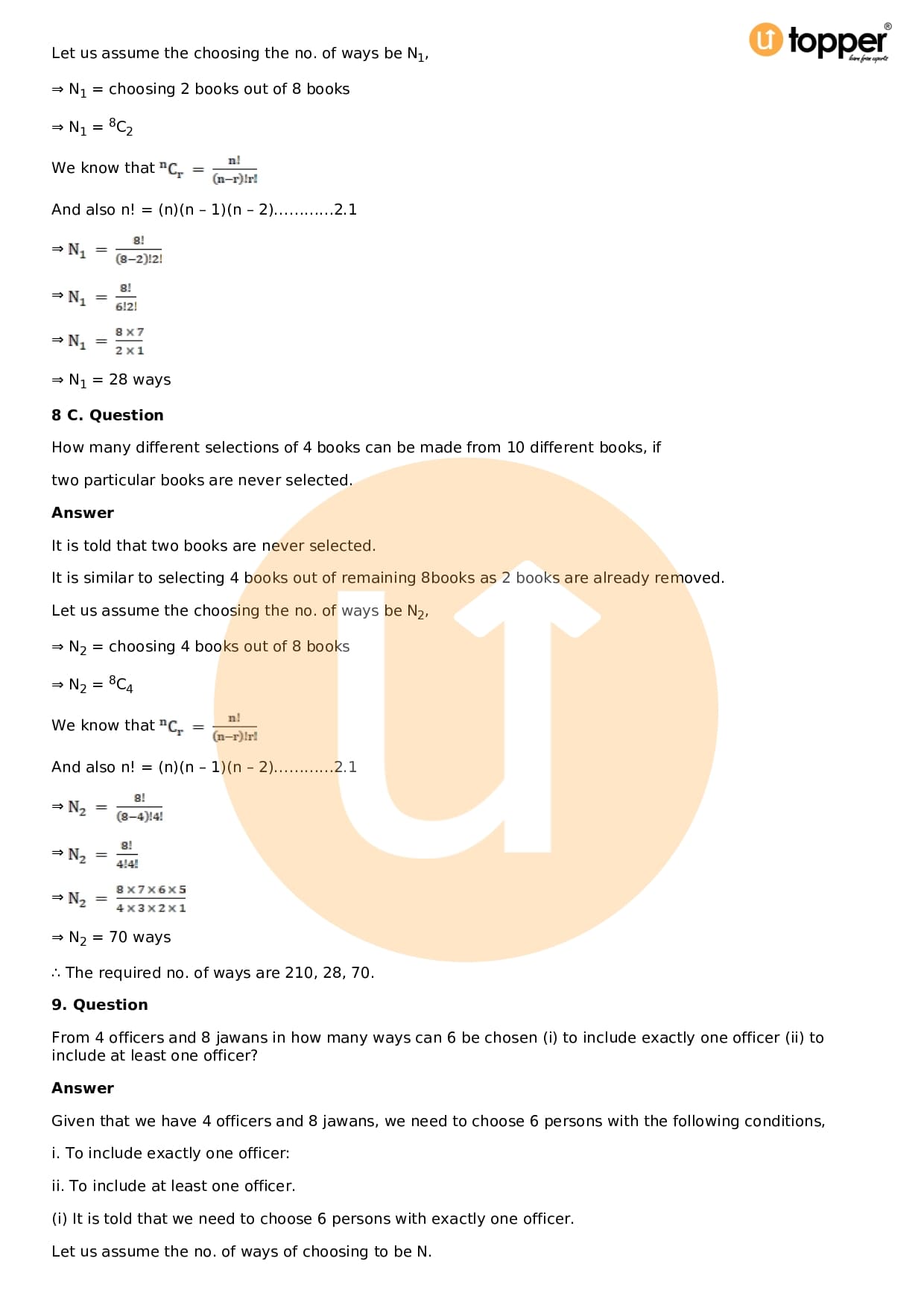 RD Sharma Class 11 Maths Solutions Chapter 17 Combinations PDF