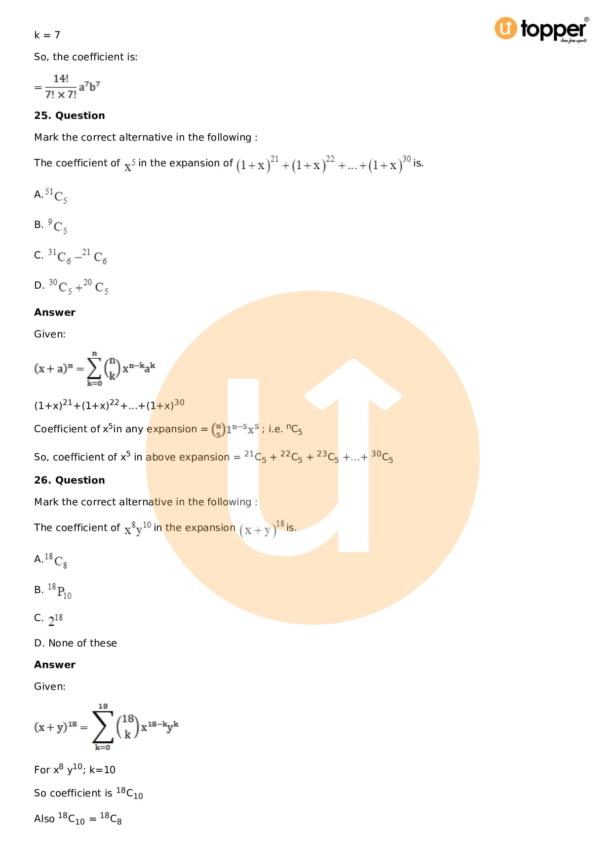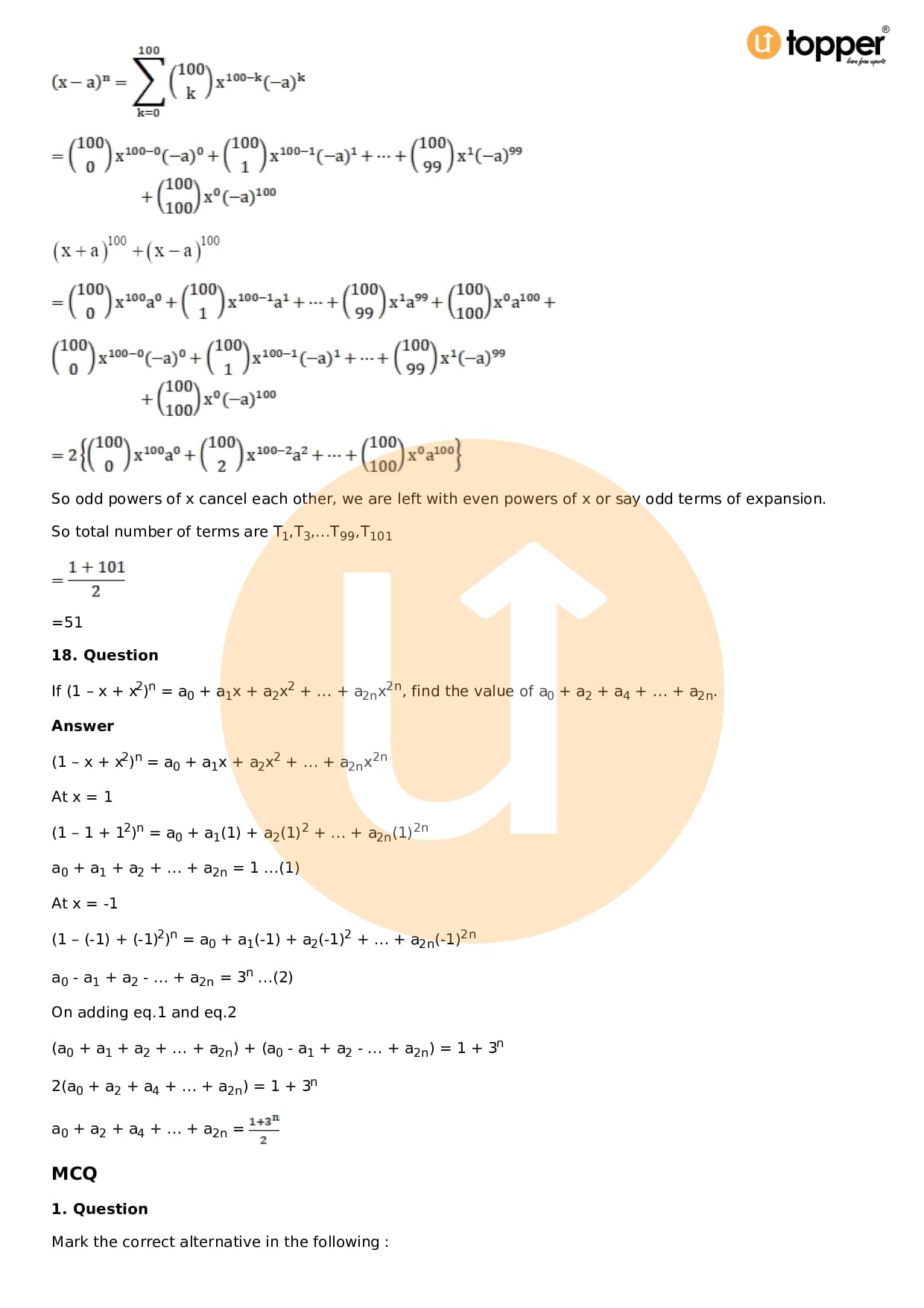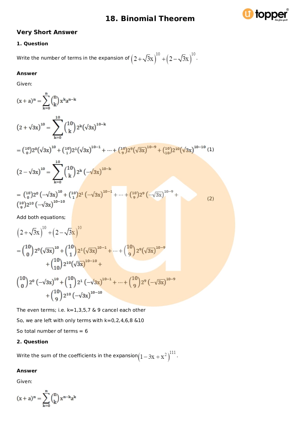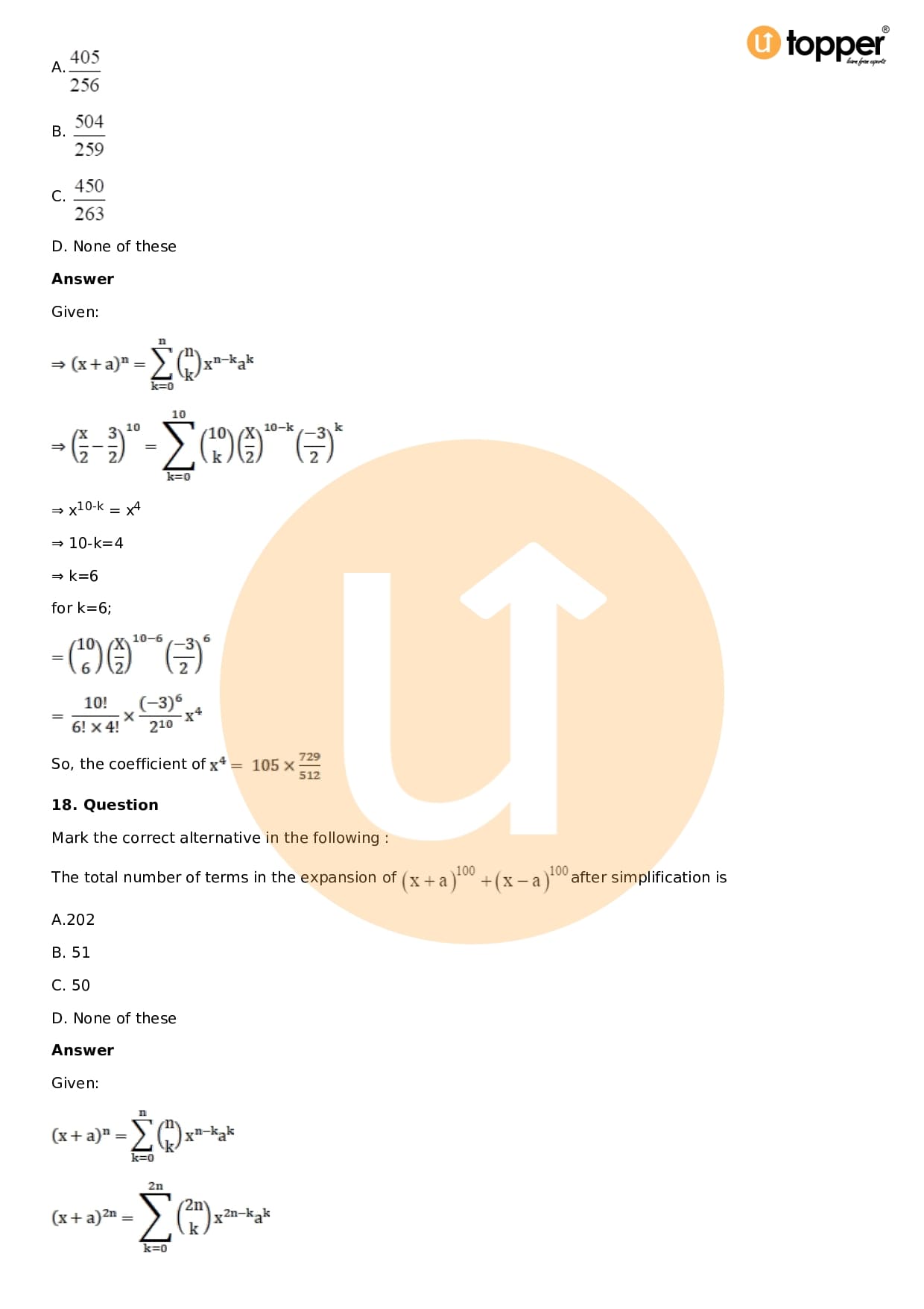 Chapter 18 – Binomial Theorem