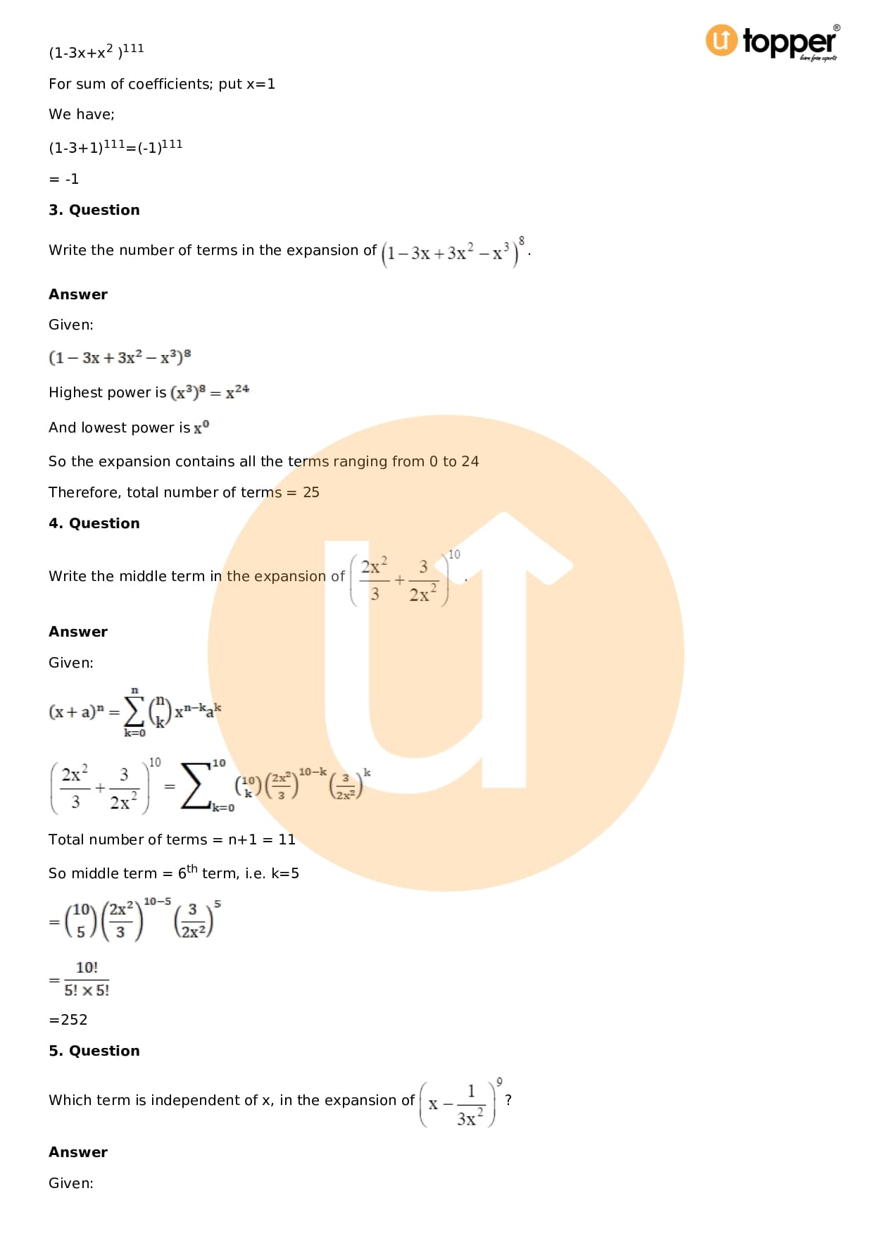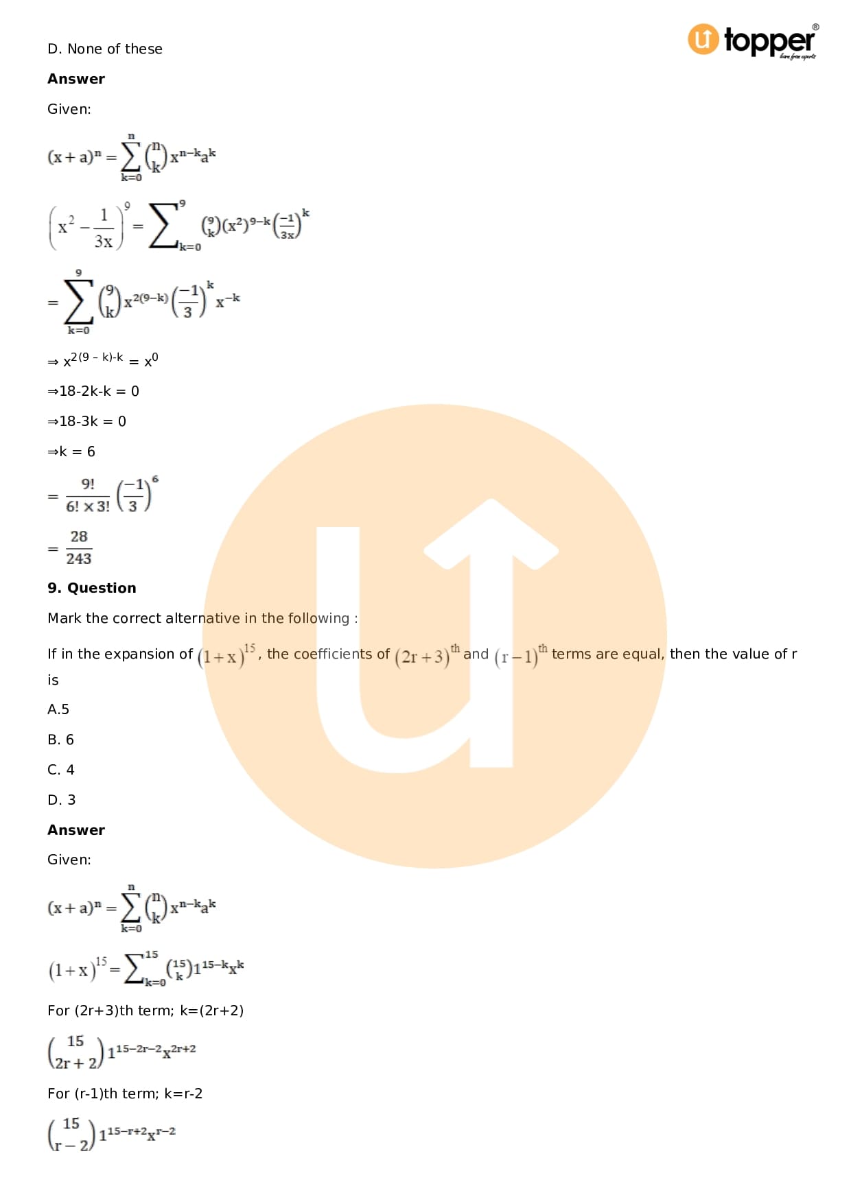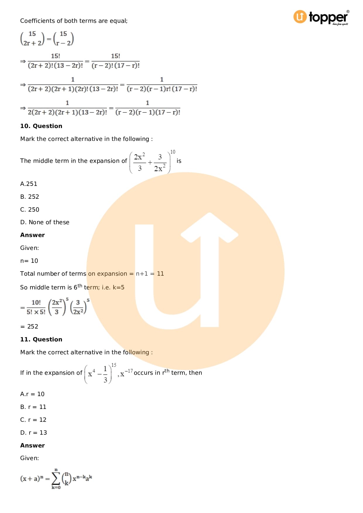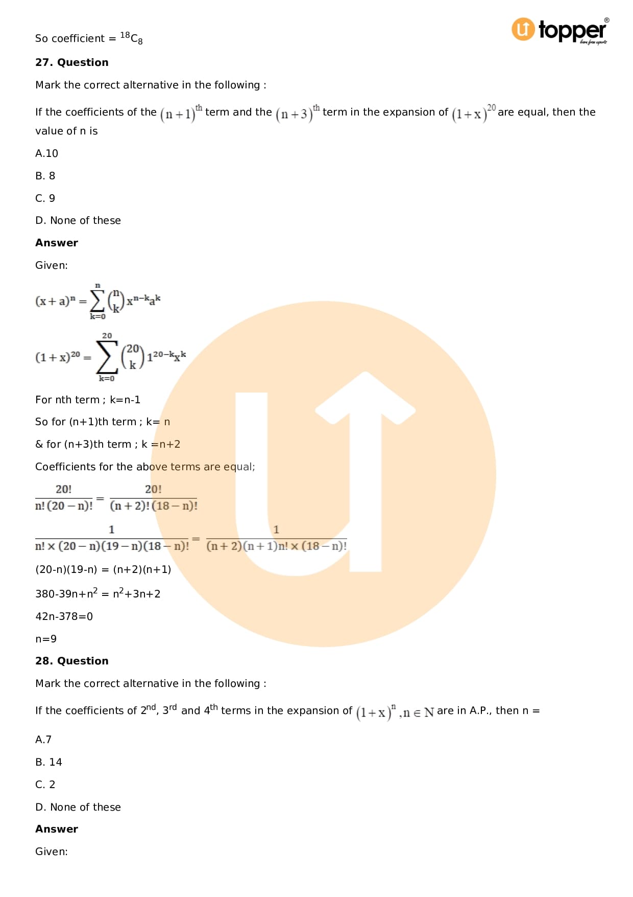 Chapter 18 – Binomial Theorem