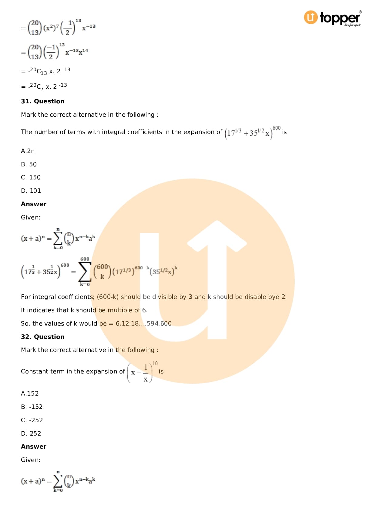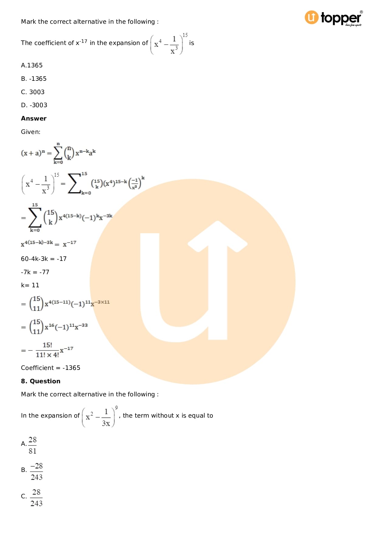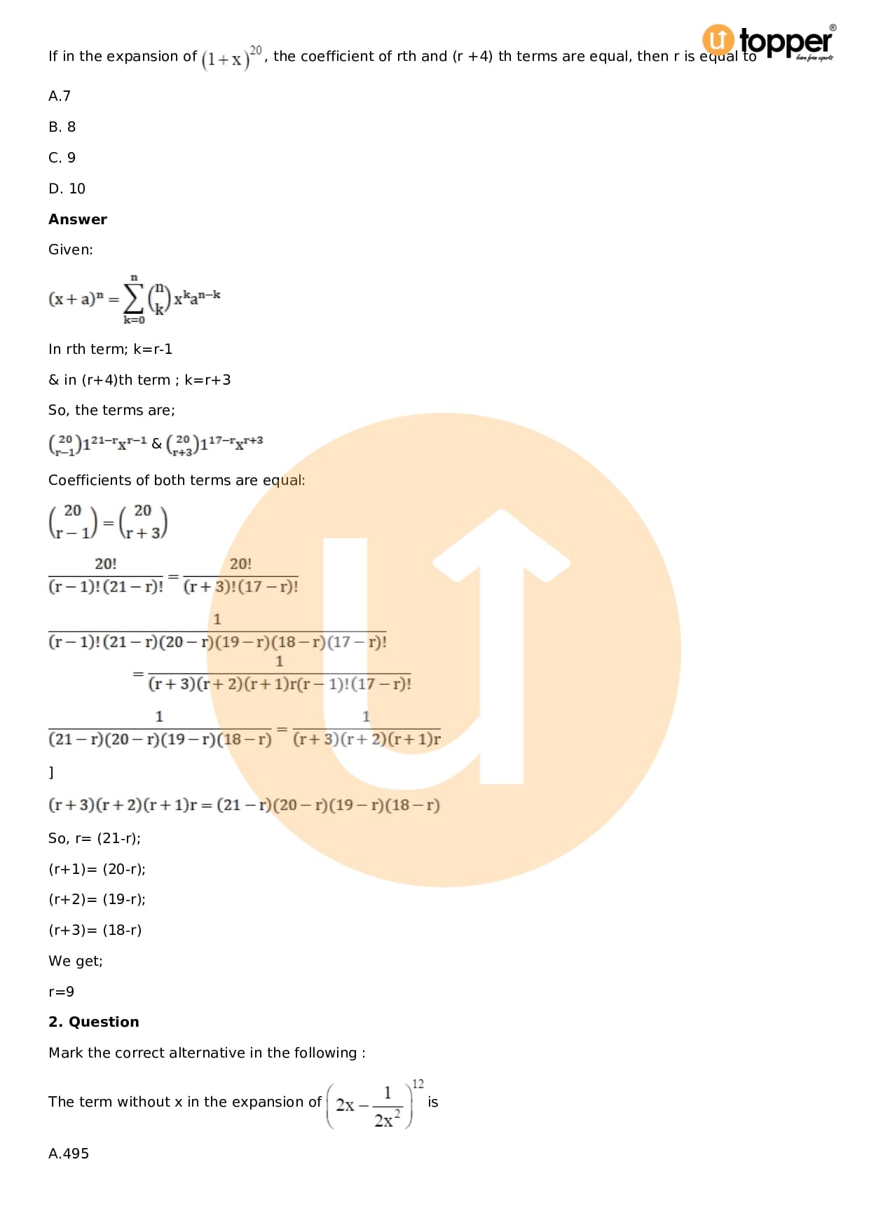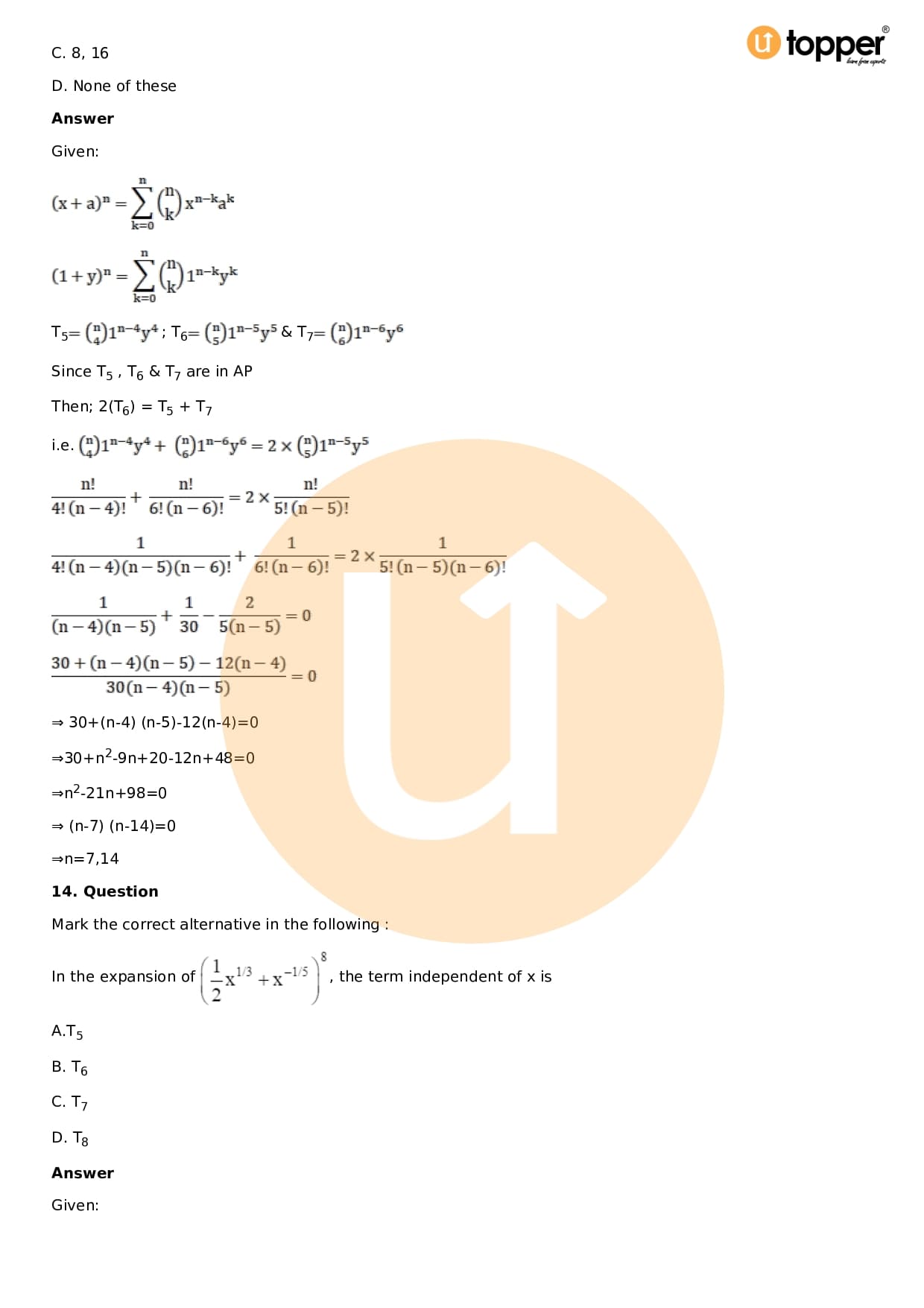 Chapter 18 – Binomial Theorem