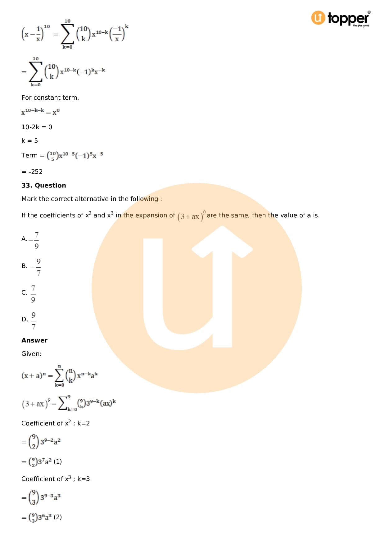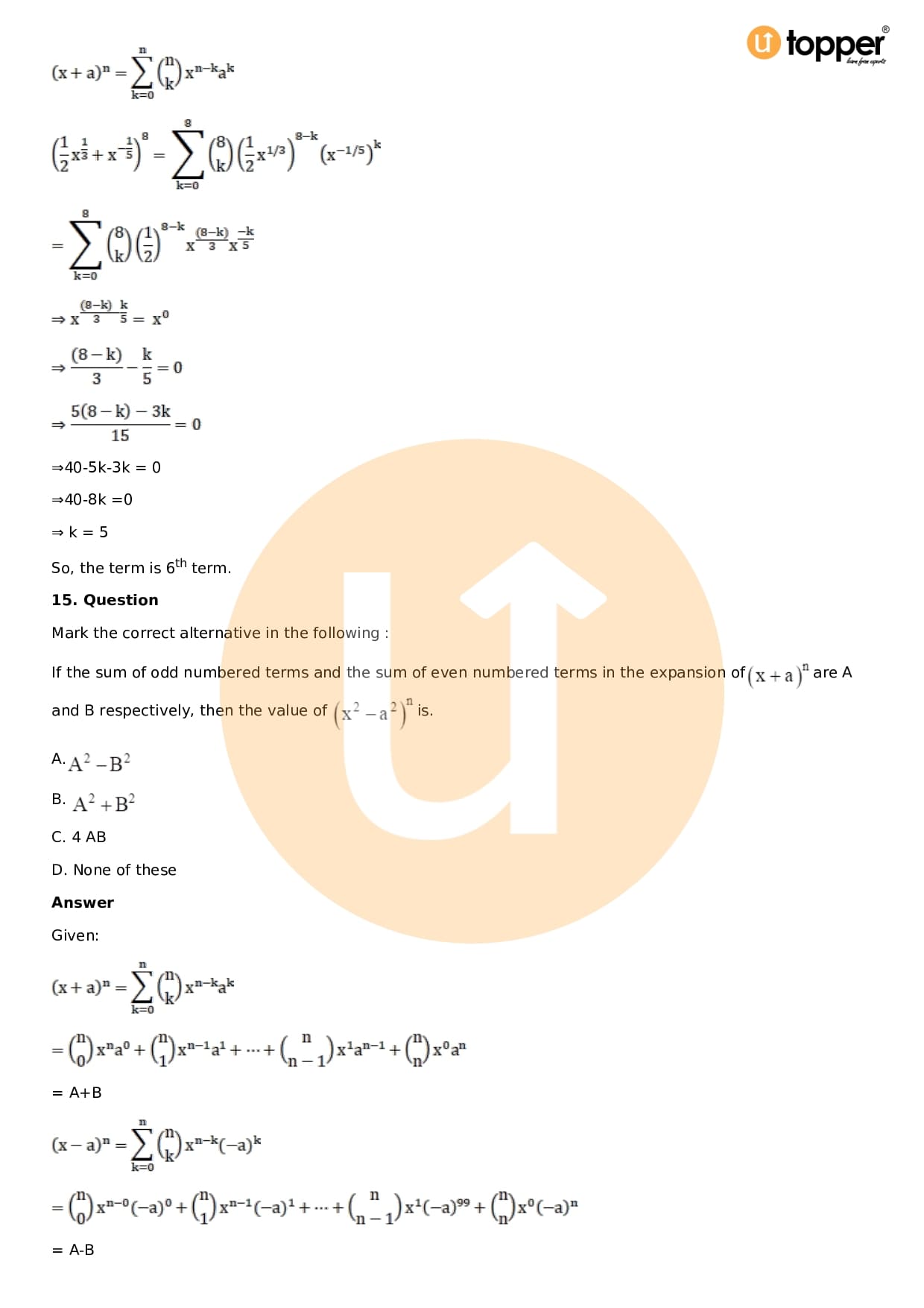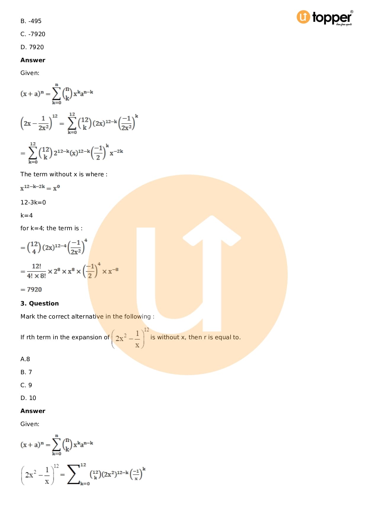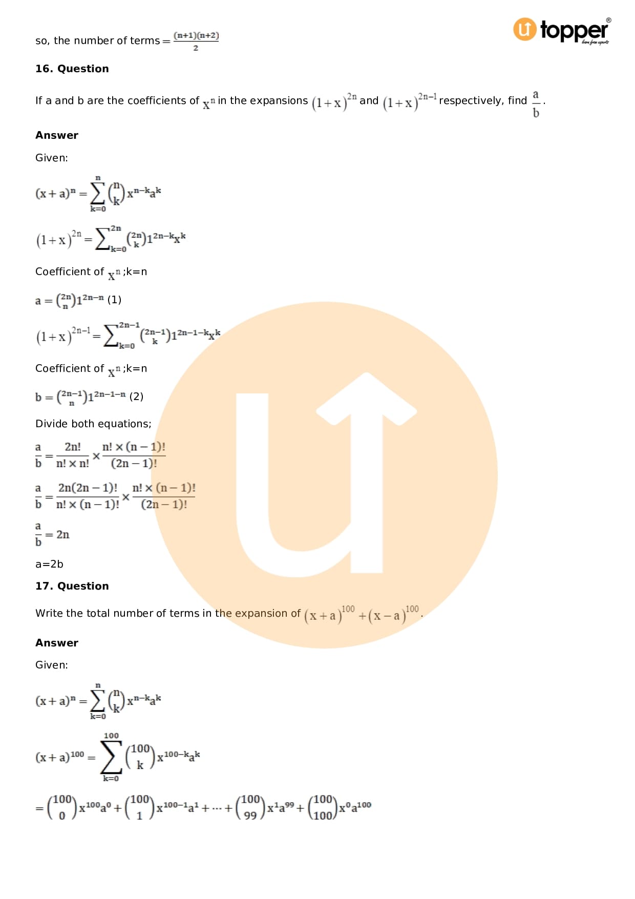 Chapter 18 – Binomial Theorem