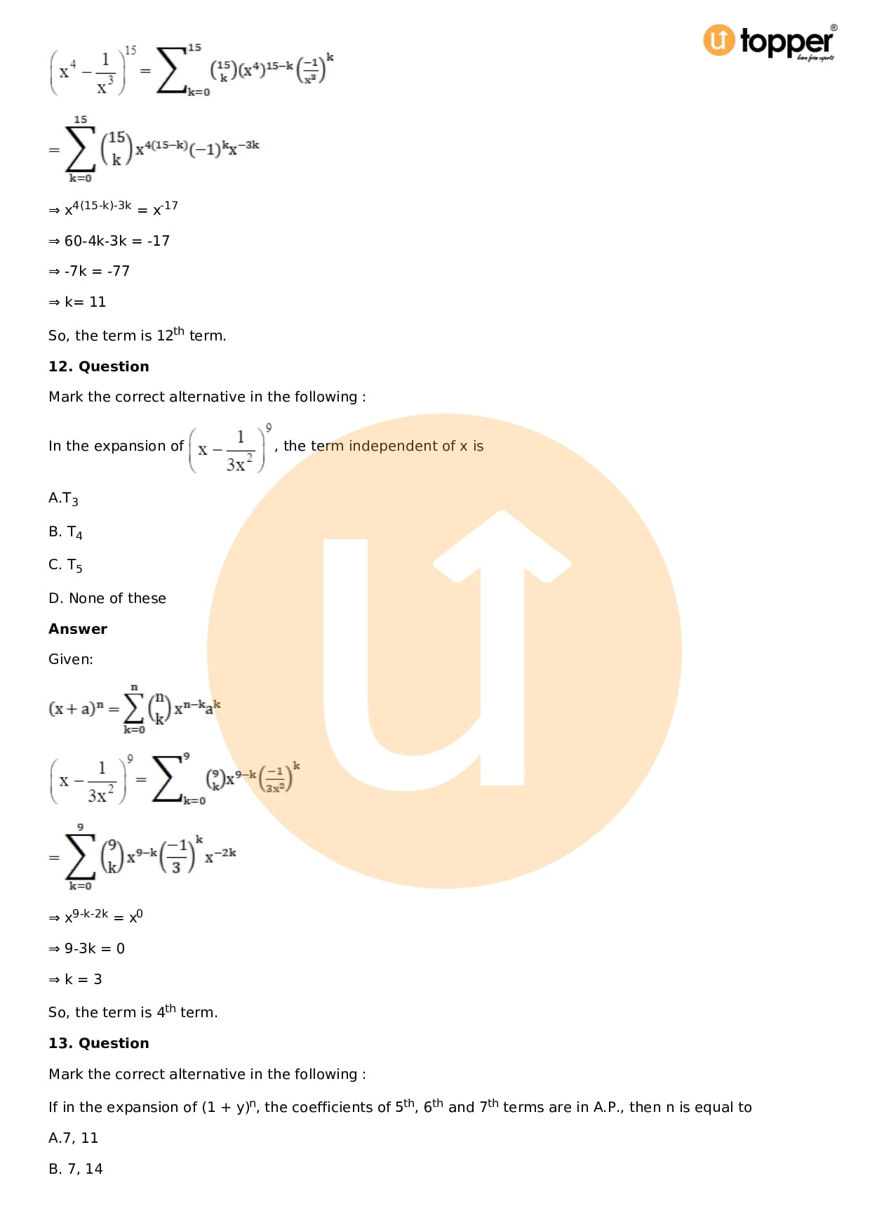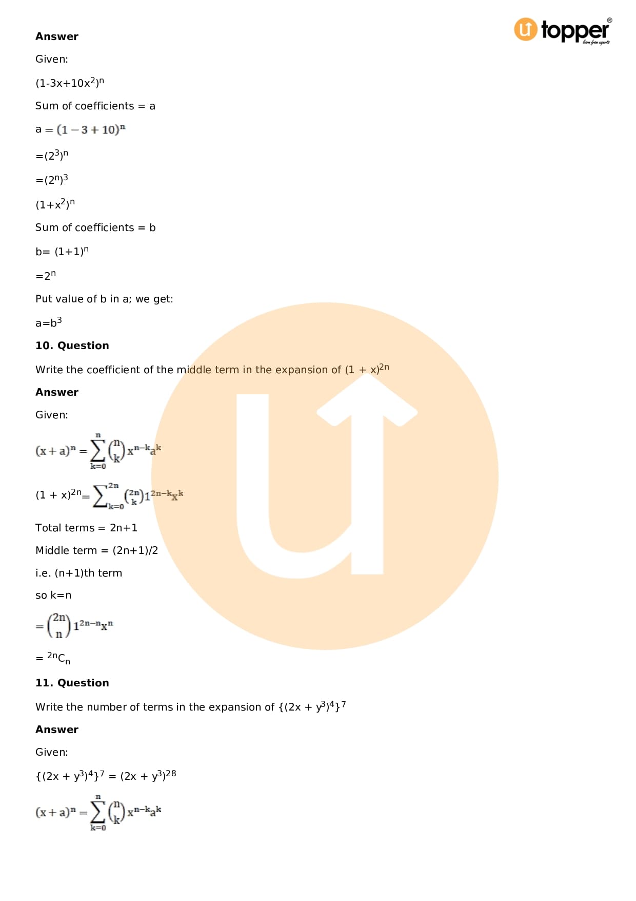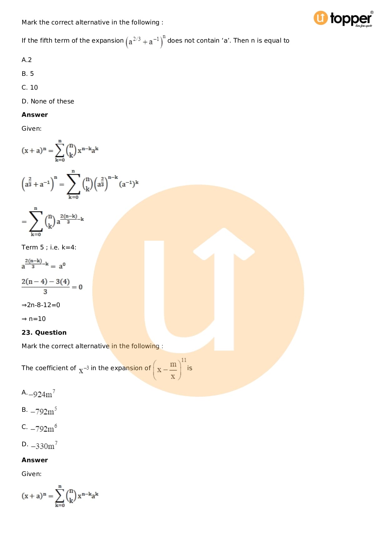 Download the latest version of RD Sharma Solutions for Class 11 Maths Chapter 18 Binomial Theorem PDF at Utopper. It provides step by step Solution PDF. You can download RD Sharma Maths Solutions with a free PDF download option, which includes chapter wise solutions. All the questions in RD Sharma Solutions have been solved and explained by expert mathematics teachers as per the CBSE Board guidelines. By studying these Maths Solutions, you can easily get good marks in the CBSE board exams.