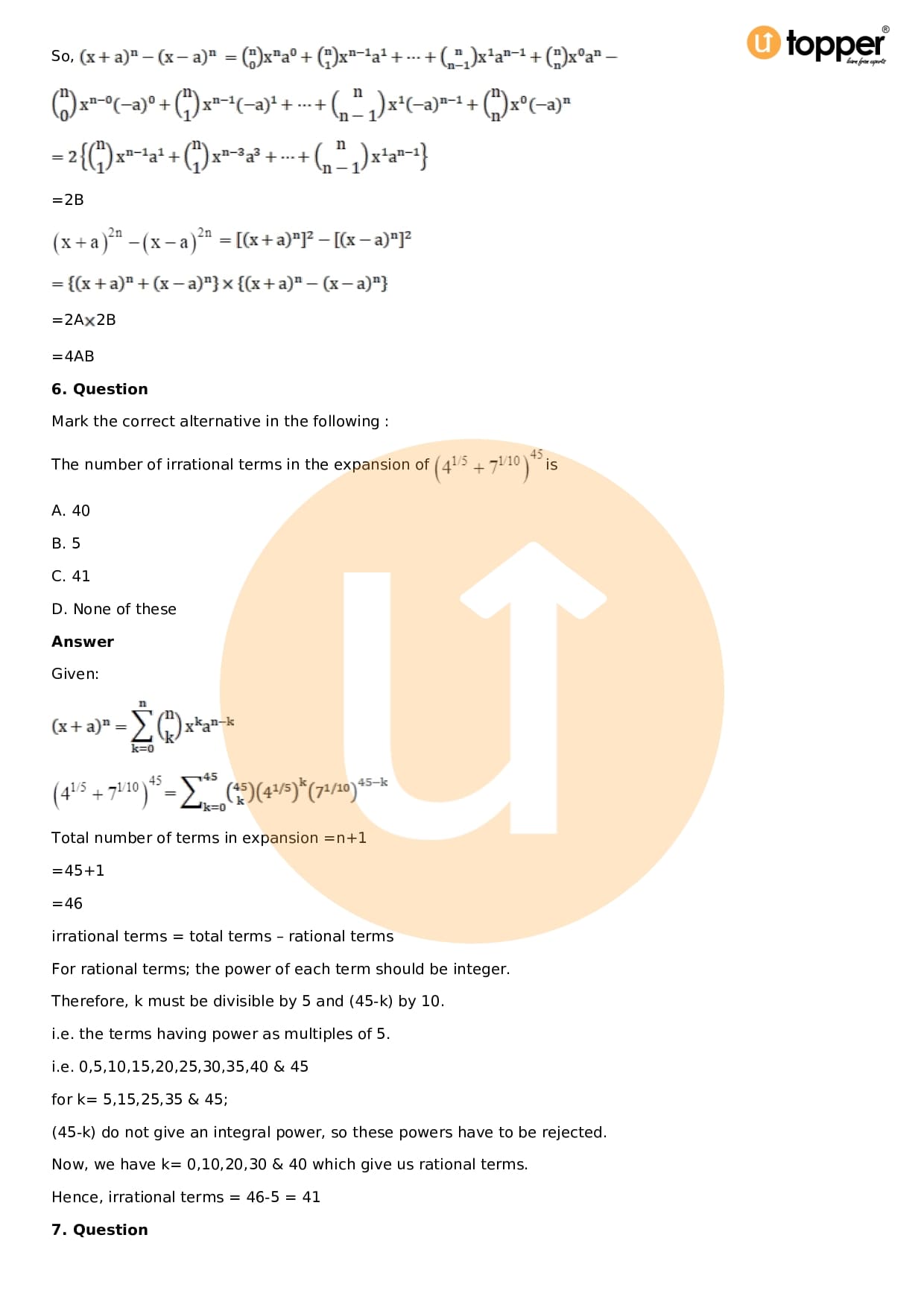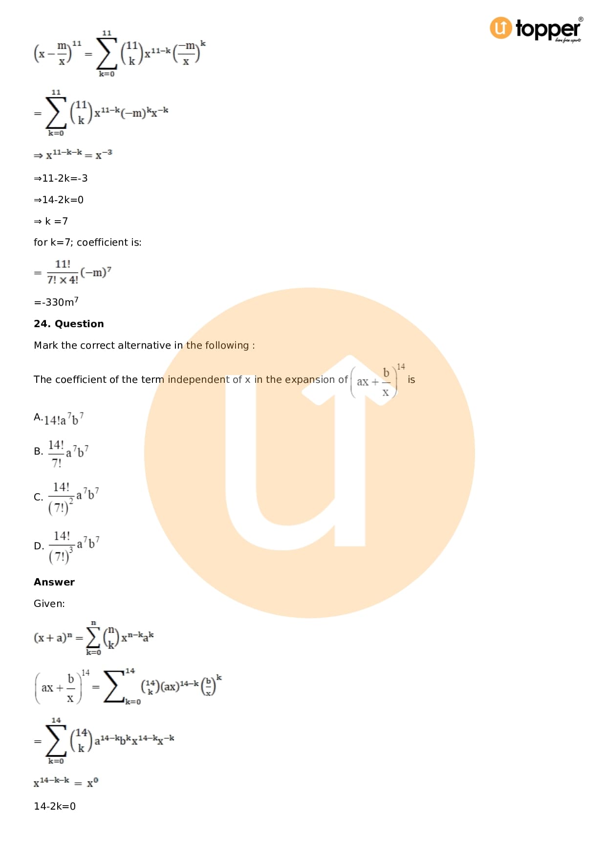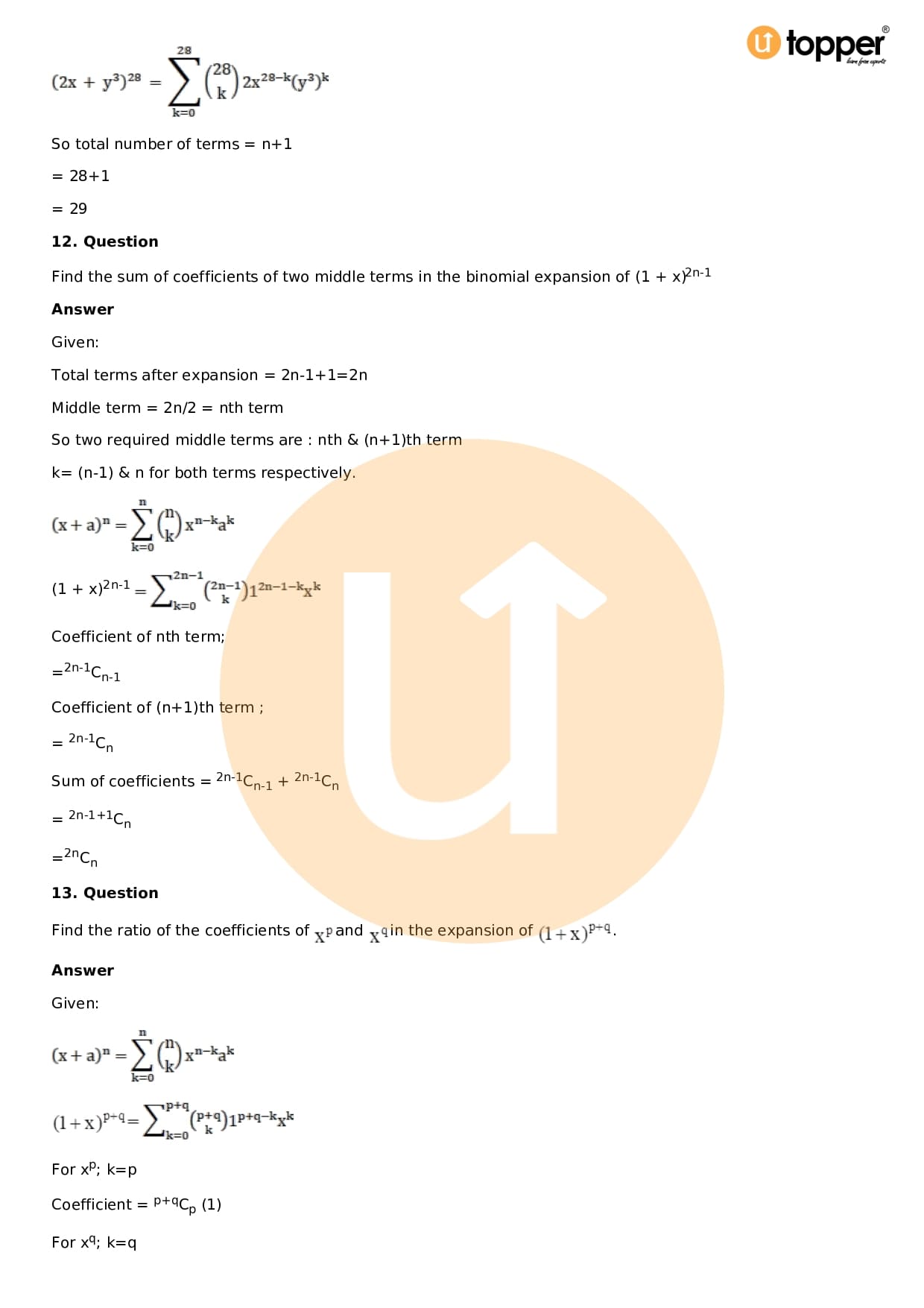 Download the latest version of RD Sharma Solutions for Class 11 Maths Chapter 18 Binomial Theorem PDF at Utopper. It provides step by step Solution PDF. You can download RD Sharma Maths Solutions with a free PDF download option, which includes chapter wise solutions. All the questions in RD Sharma Solutions have been solved and explained by expert mathematics teachers as per the CBSE Board guidelines. By studying these Maths Solutions, you can easily get good marks in the CBSE board exams.