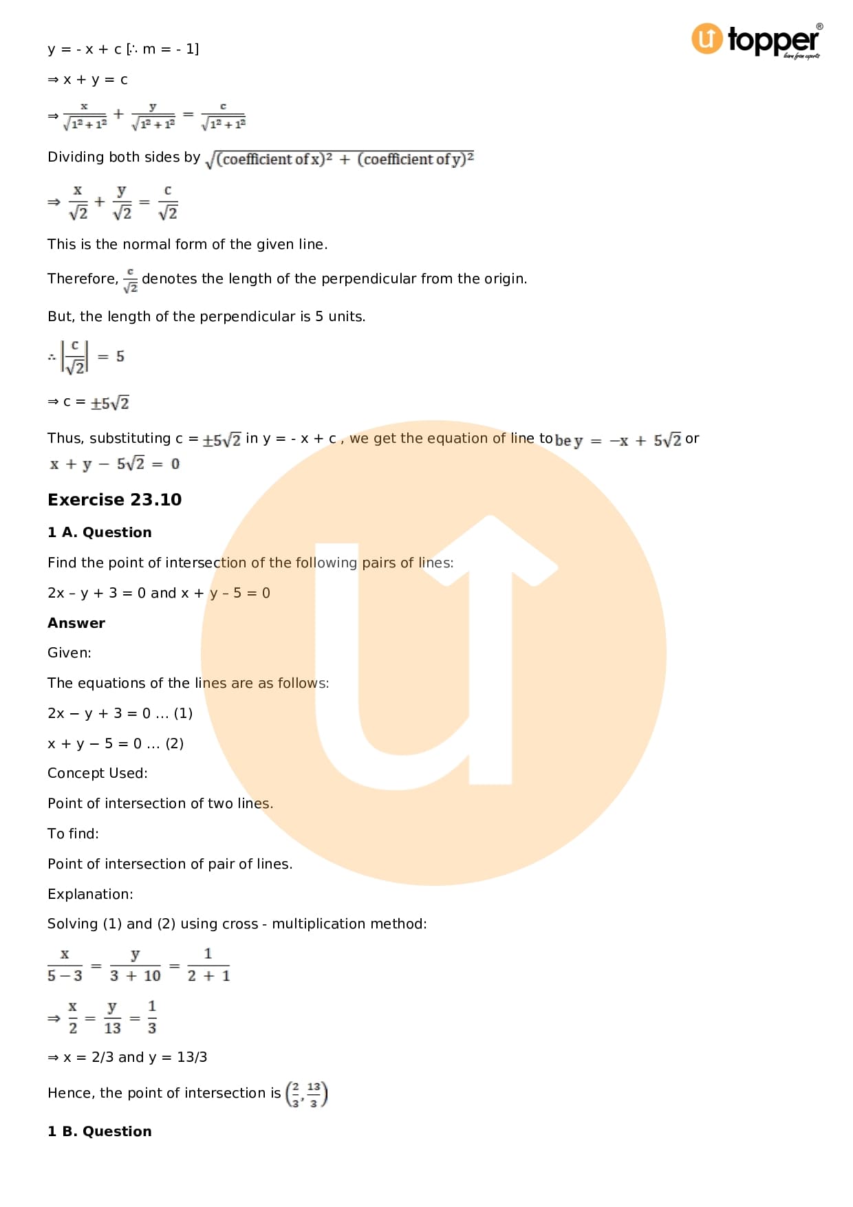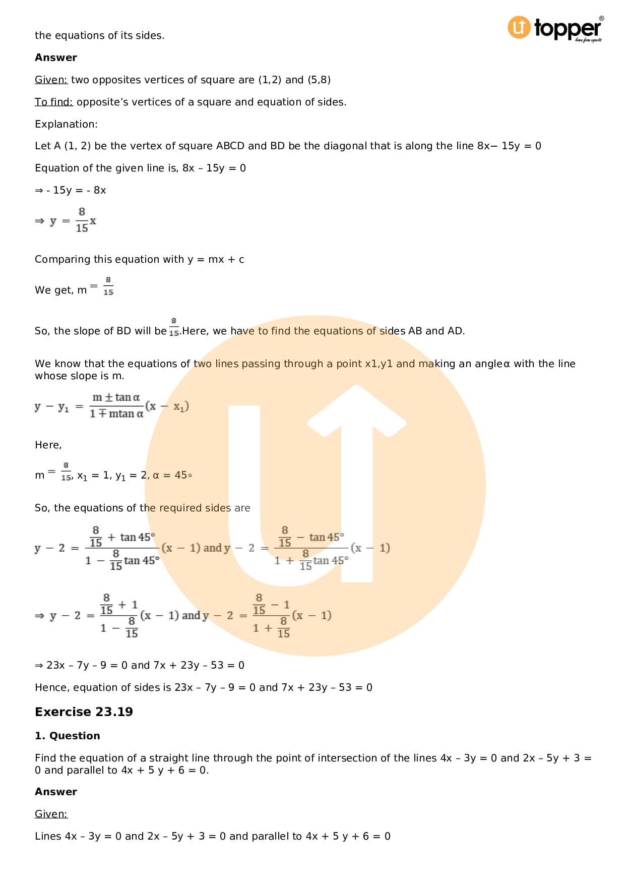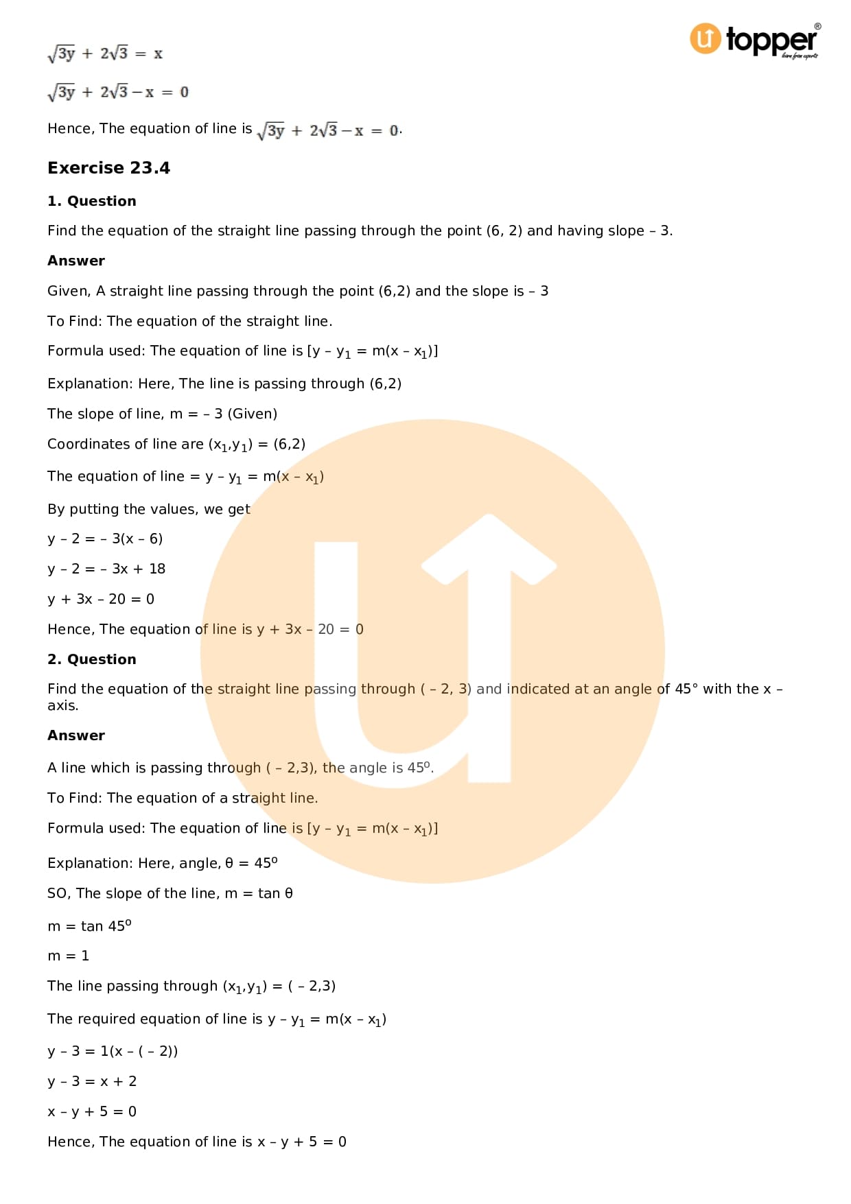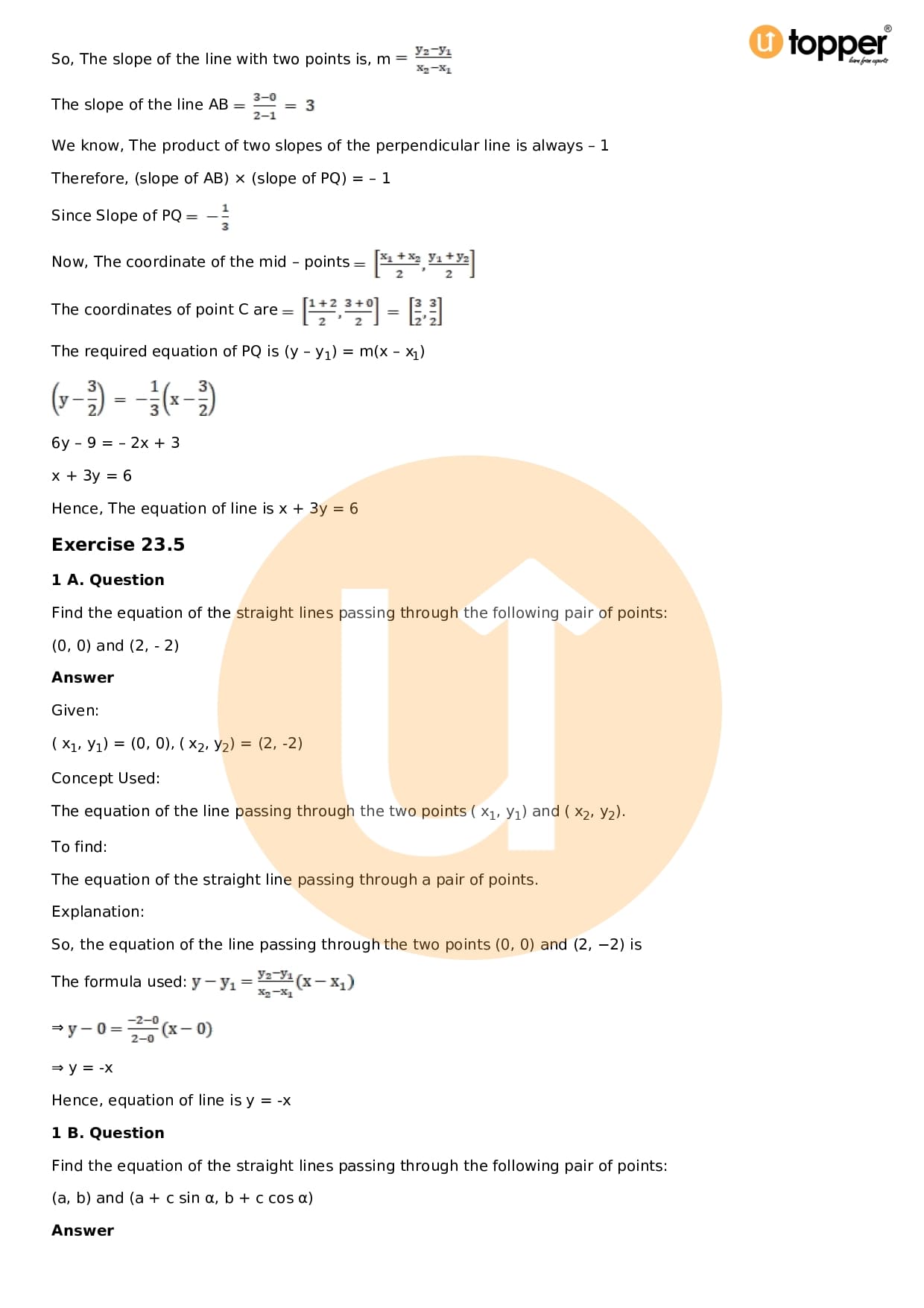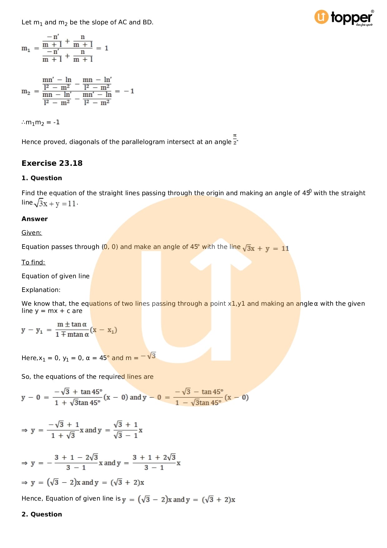 Download the latest version of RD Sharma Solutions for Class 11 Maths Chapter 23 The Straight Lines PDF at Utopper. It provides step by step Solution PDF. You can download RD Sharma Maths Solutions with a free PDF download option, which includes chapter wise solutions. All the questions in RD Sharma Solutions have been solved and explained by expert mathematics teachers as per the CBSE Board guidelines. By studying these Maths Solutions, you can easily get good marks in the CBSE board exams.