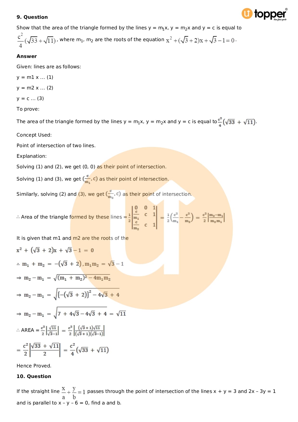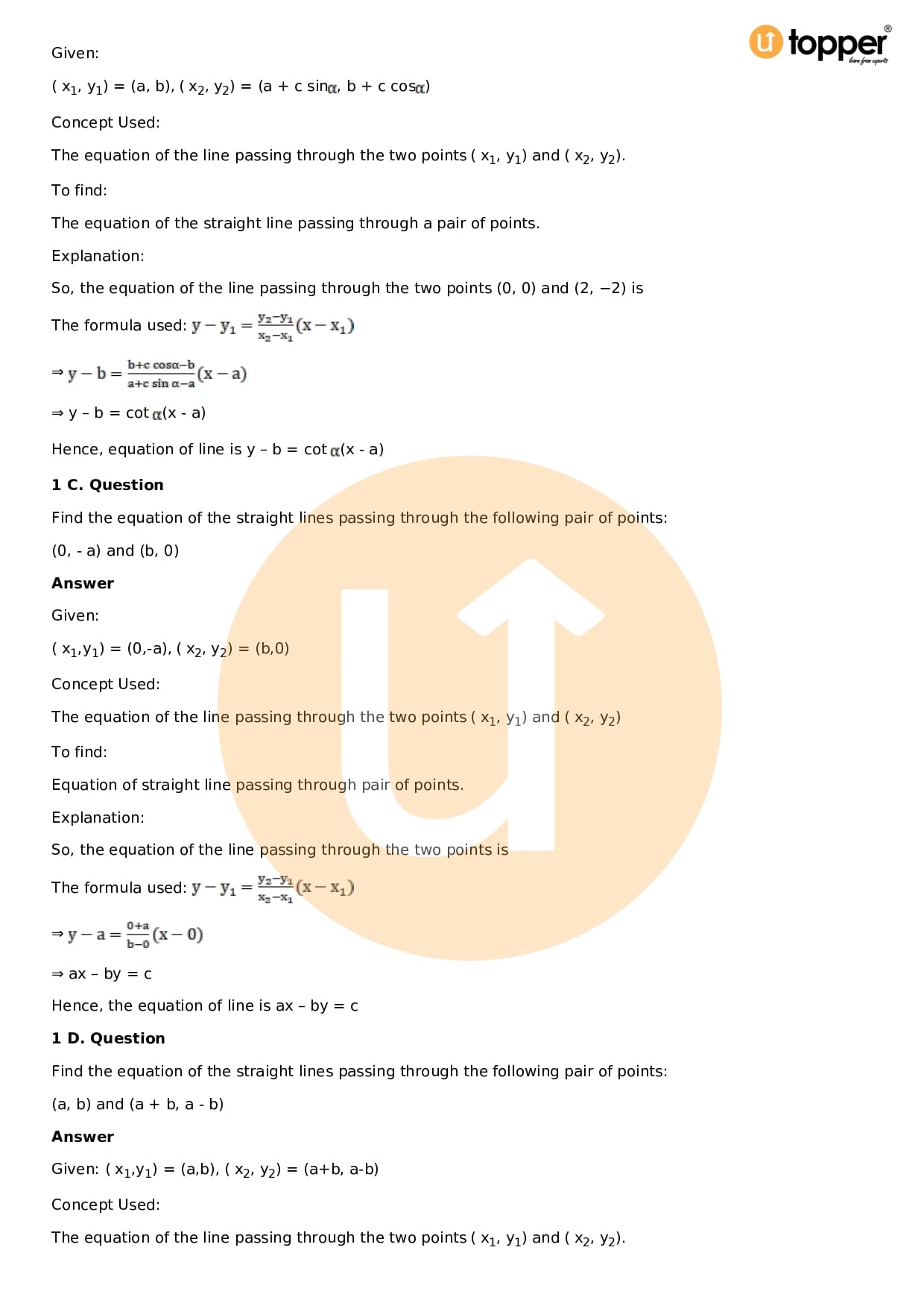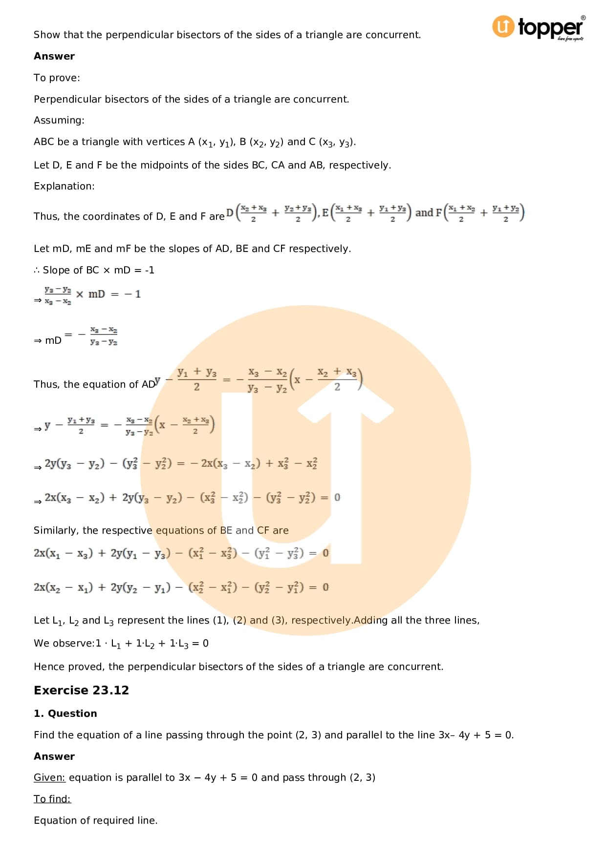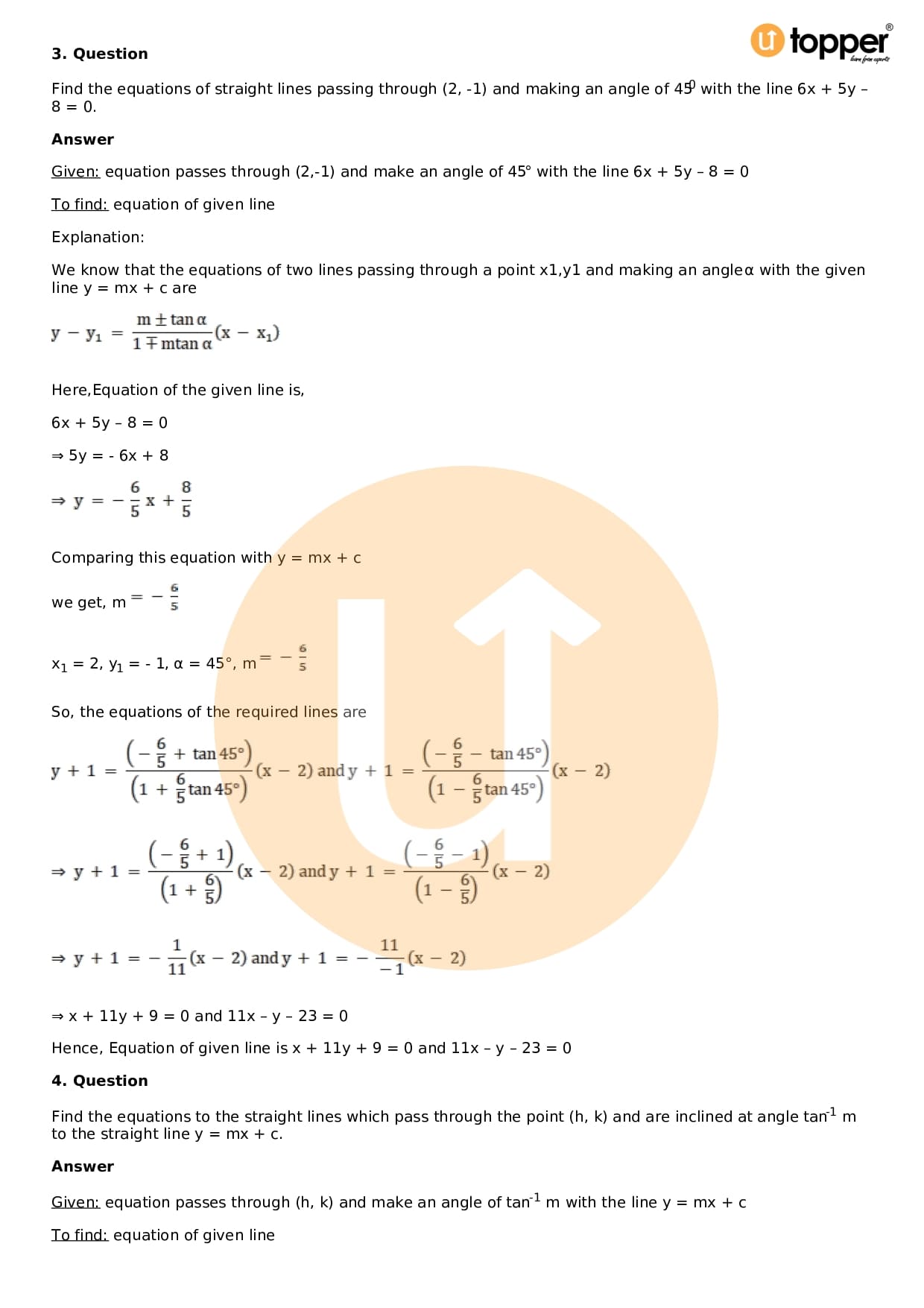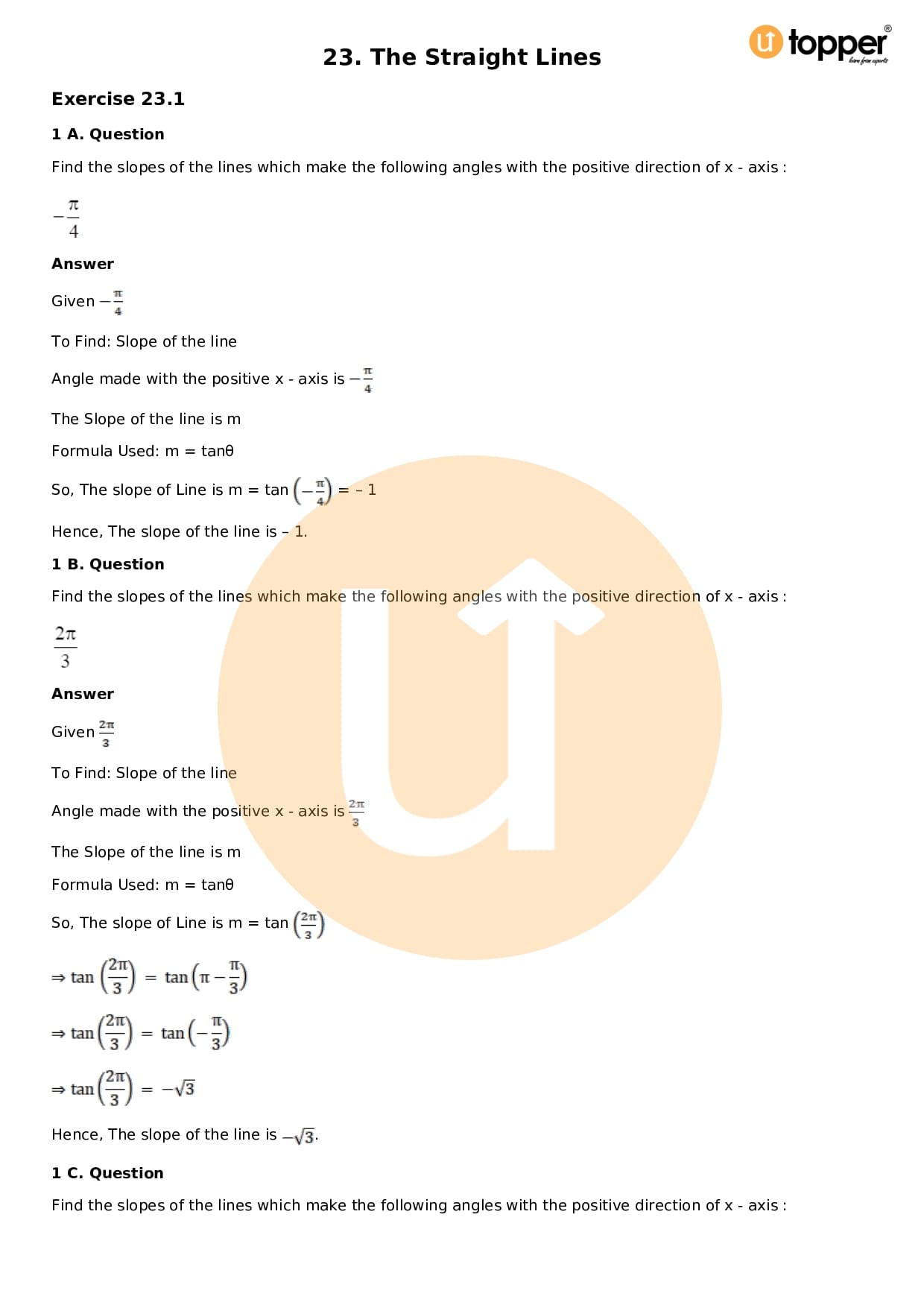 Download the latest version of RD Sharma Solutions for Class 11 Maths Chapter 23 The Straight Lines PDF at Utopper. It provides step by step Solution PDF. You can download RD Sharma Maths Solutions with a free PDF download option, which includes chapter wise solutions. All the questions in RD Sharma Solutions have been solved and explained by expert mathematics teachers as per the CBSE Board guidelines. By studying these Maths Solutions, you can easily get good marks in the CBSE board exams.