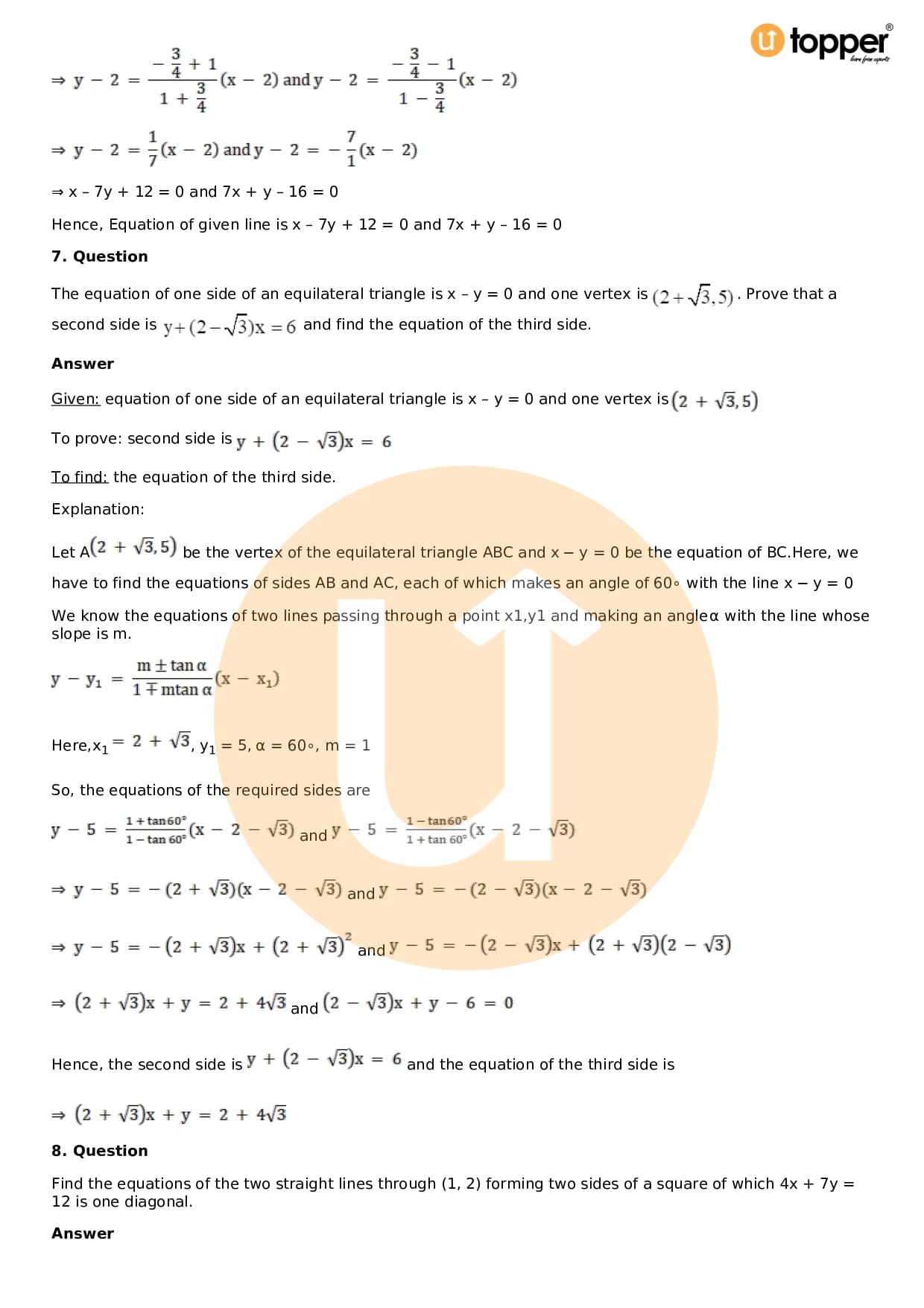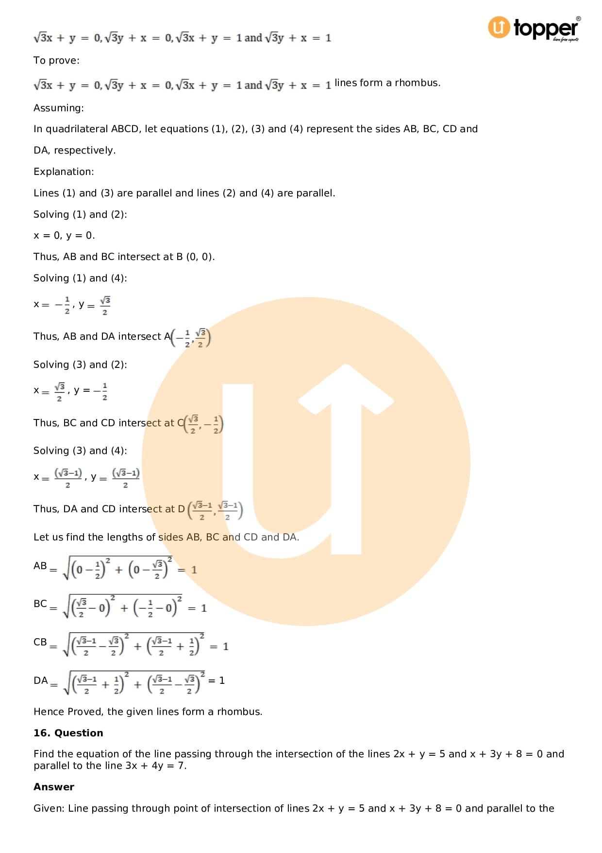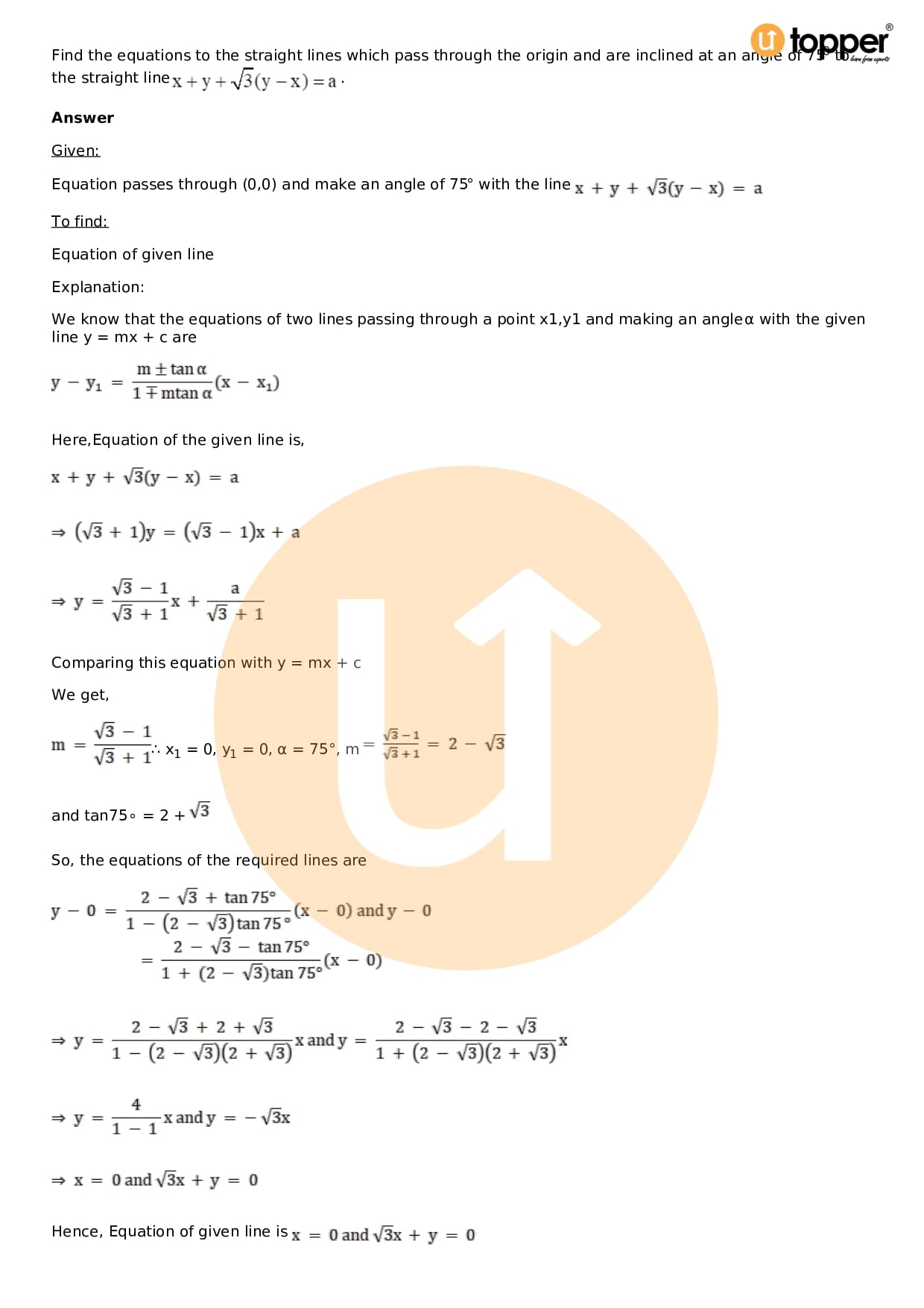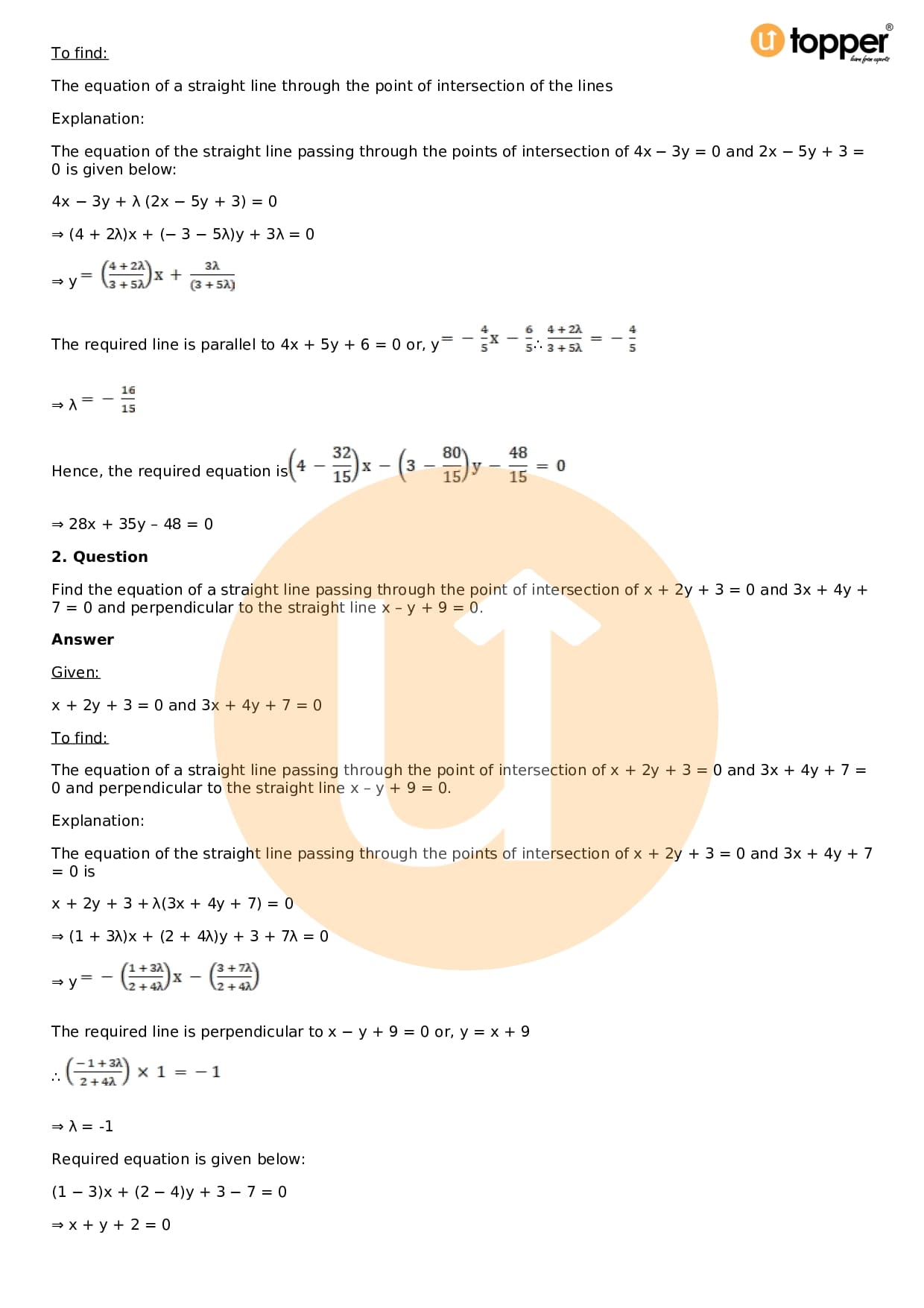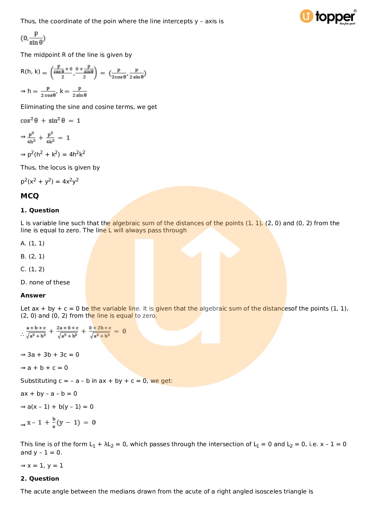 Download the latest version of RD Sharma Solutions for Class 11 Maths Chapter 23 The Straight Lines PDF at Utopper. It provides step by step Solution PDF. You can download RD Sharma Maths Solutions with a free PDF download option, which includes chapter wise solutions. All the questions in RD Sharma Solutions have been solved and explained by expert mathematics teachers as per the CBSE Board guidelines. By studying these Maths Solutions, you can easily get good marks in the CBSE board exams.