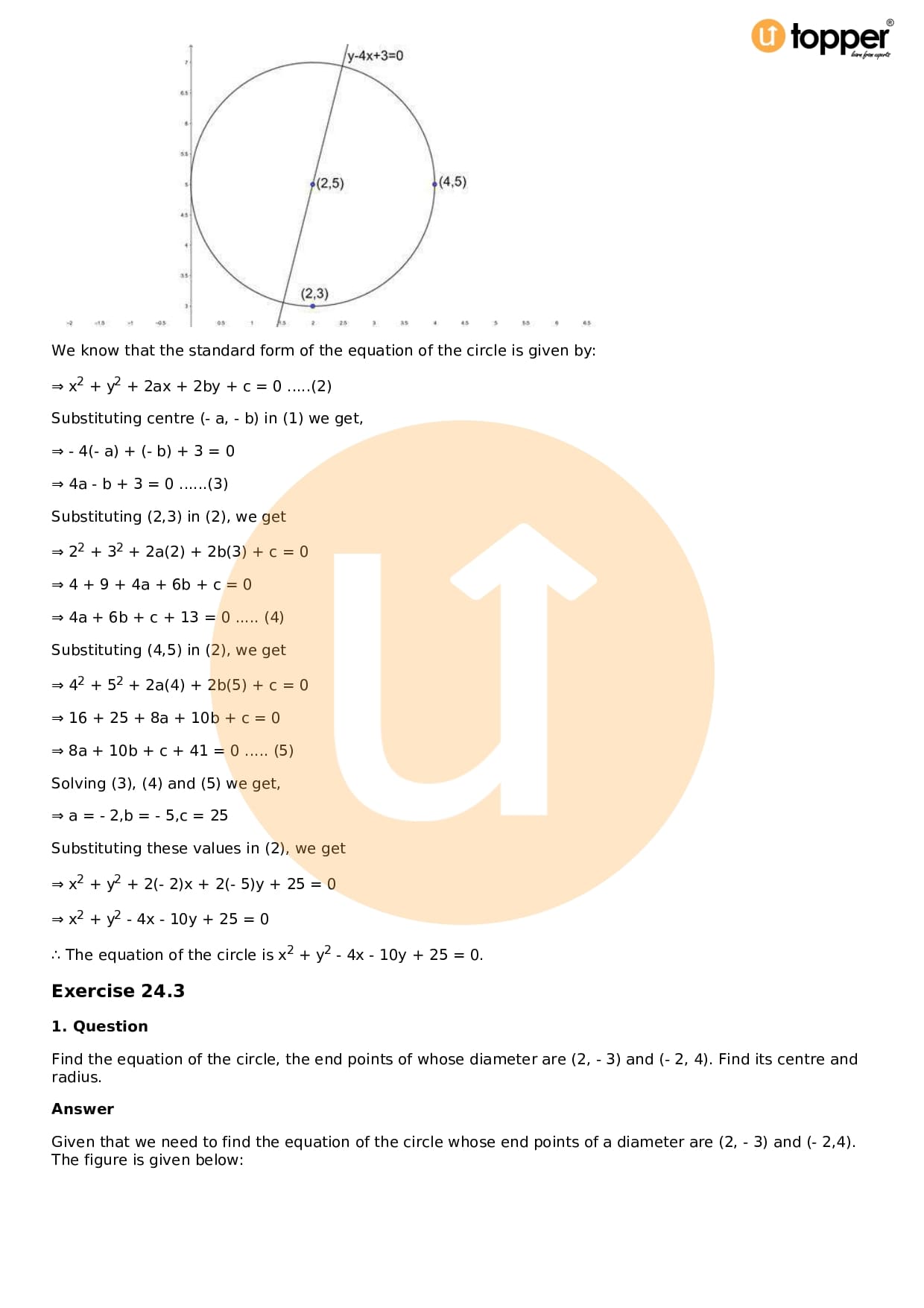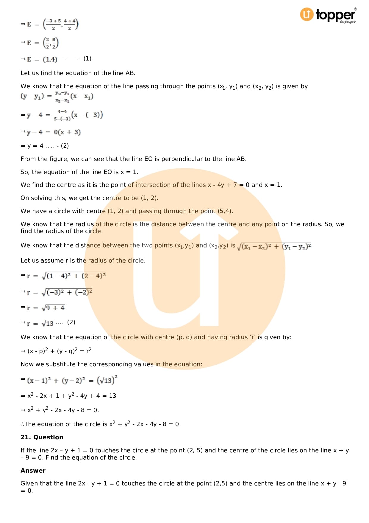 RD Sharma Class 11 Maths Solutions Chapter 24 The Circle PDF