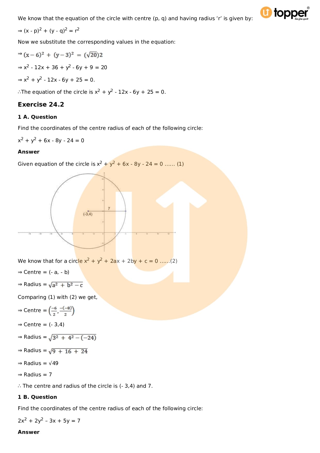 RD Sharma Class 11 Maths Chapter 24 The Circle Solutions PDF Download