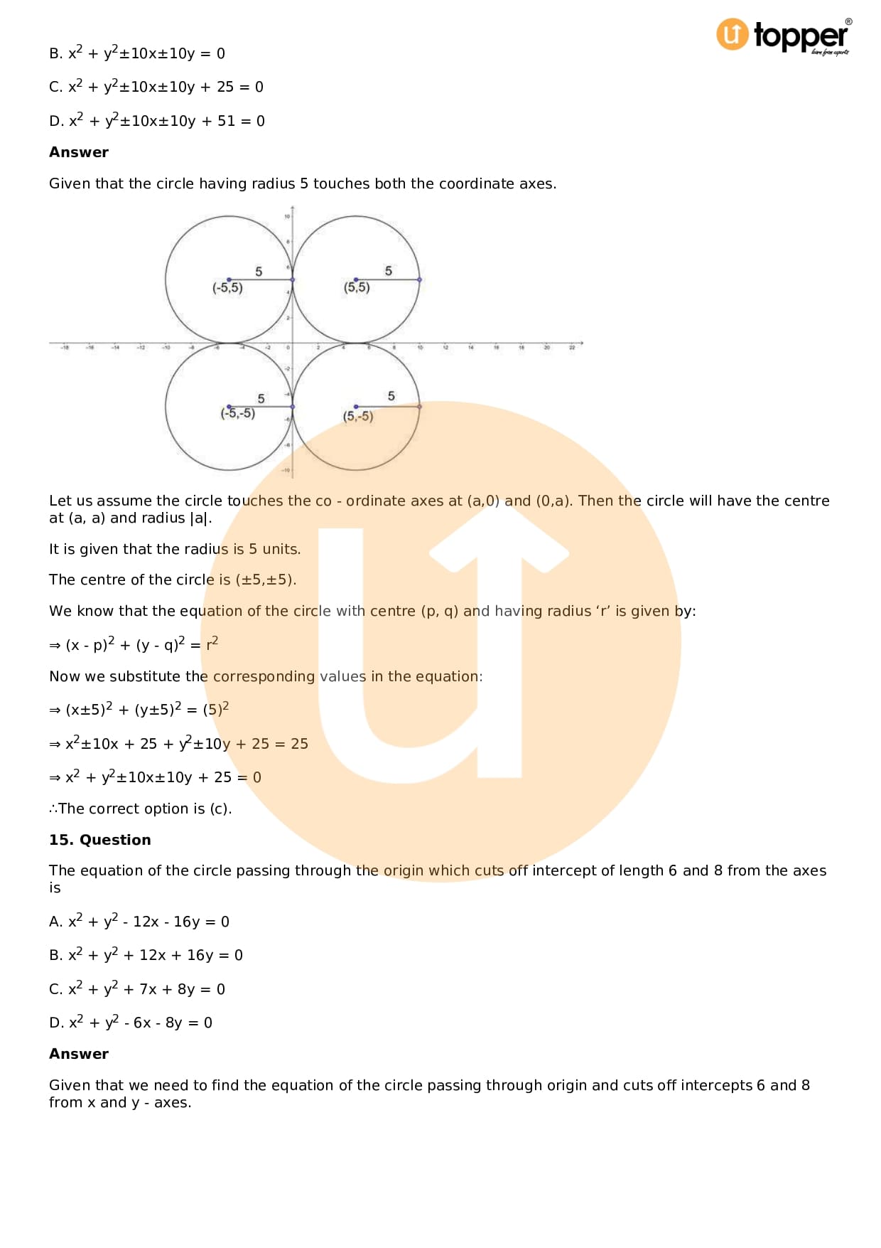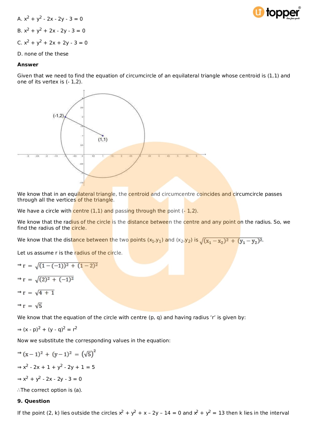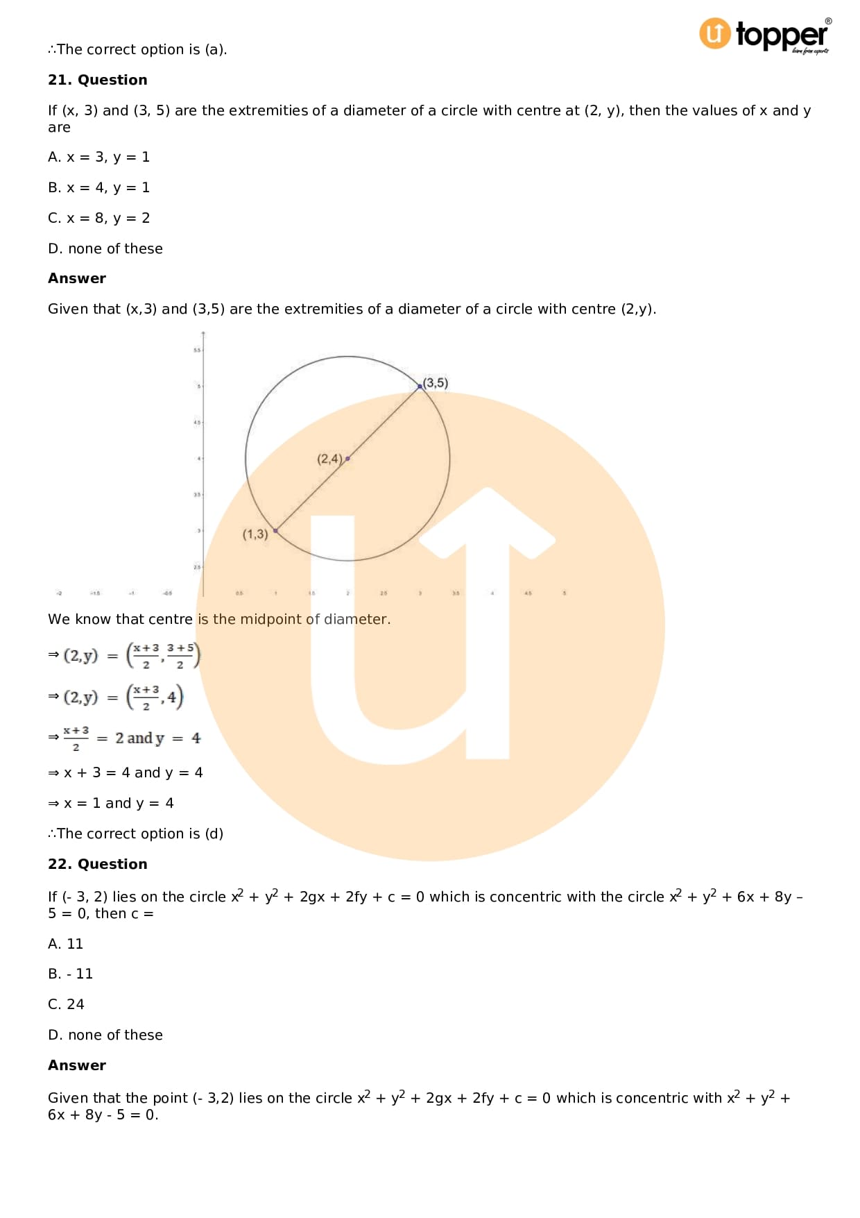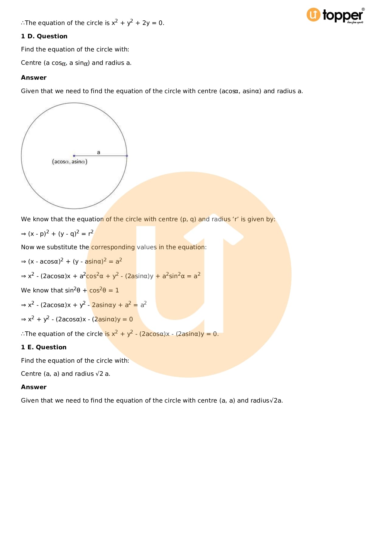 Download the latest version of RD Sharma Solutions for Class 11 Maths Chapter 24 The Circle PDF at Utopper. It provides step by step Solution PDF. You can download RD Sharma Maths Solutions with a free PDF download option, which includes chapter wise solutions. All the questions in RD Sharma Solutions have been solved and explained by expert mathematics teachers as per the CBSE Board guidelines. By studying these Maths Solutions, you can easily get good marks in the CBSE board exams.