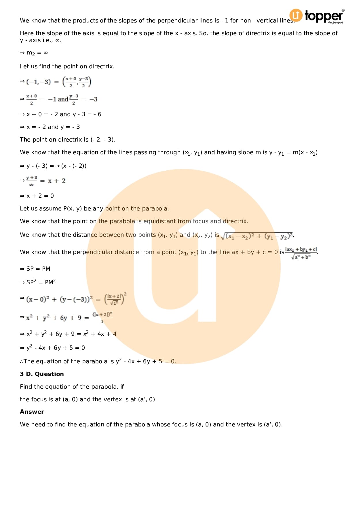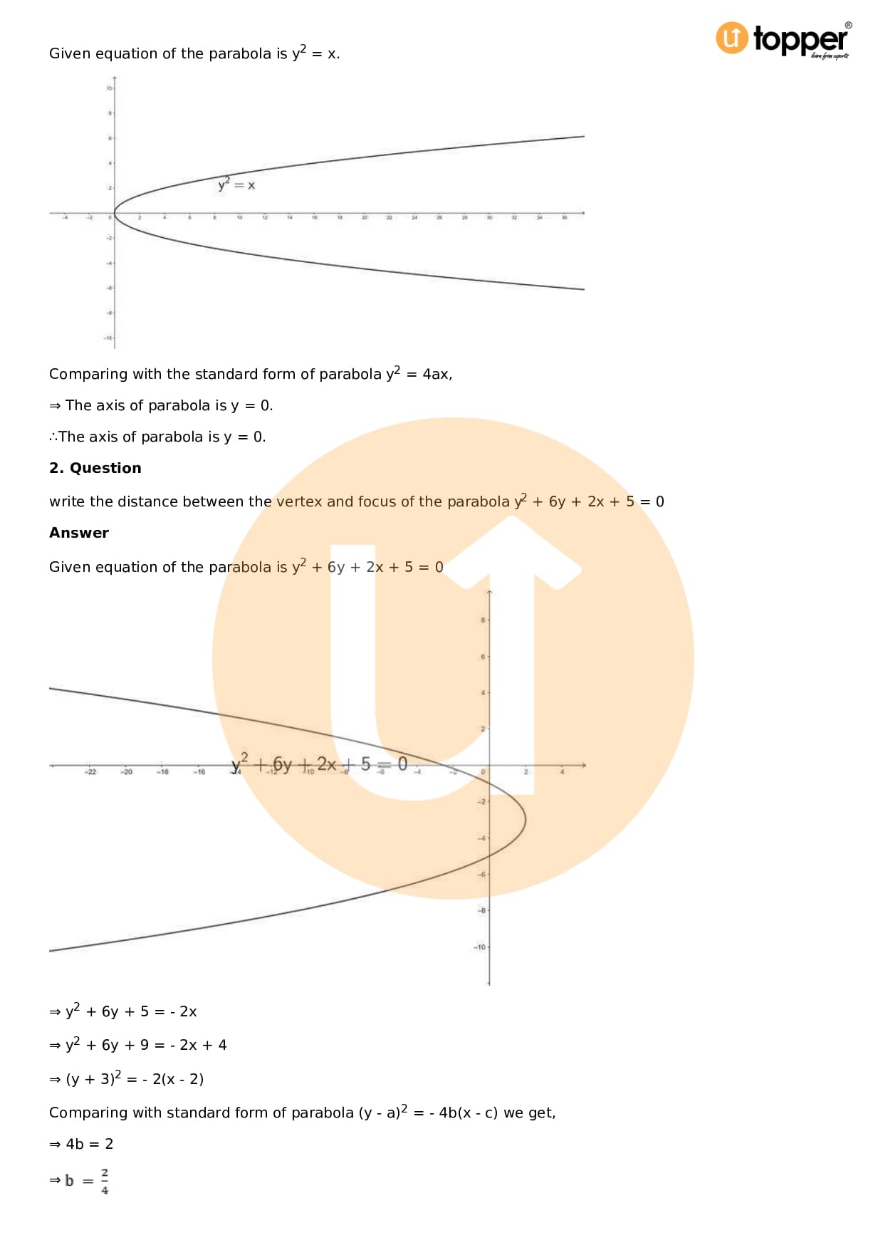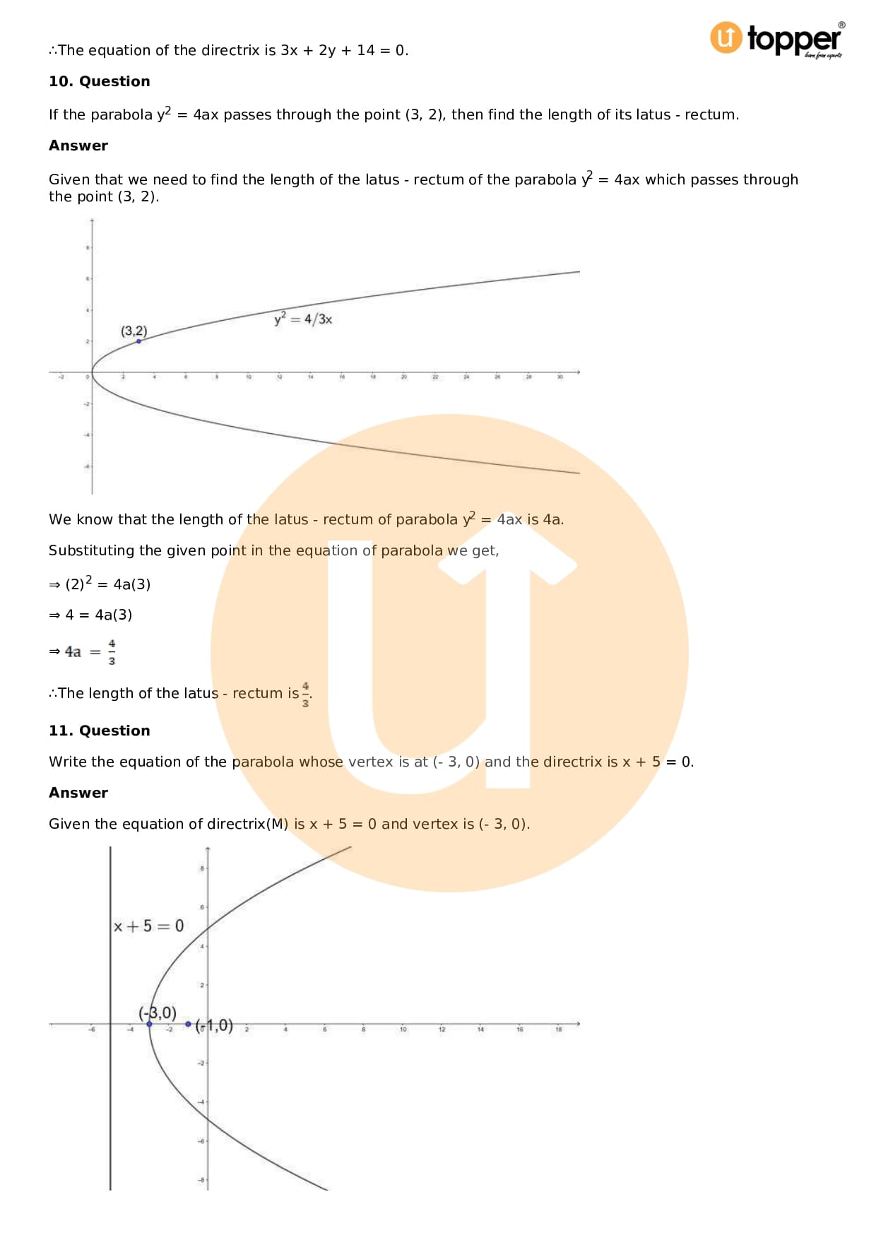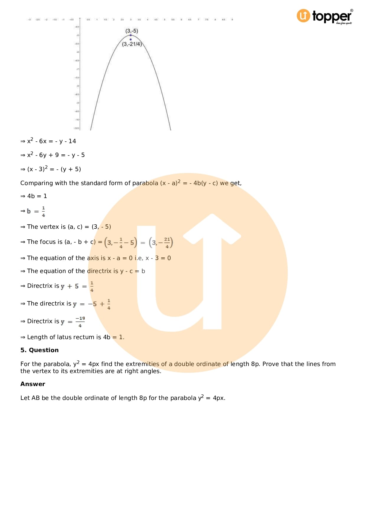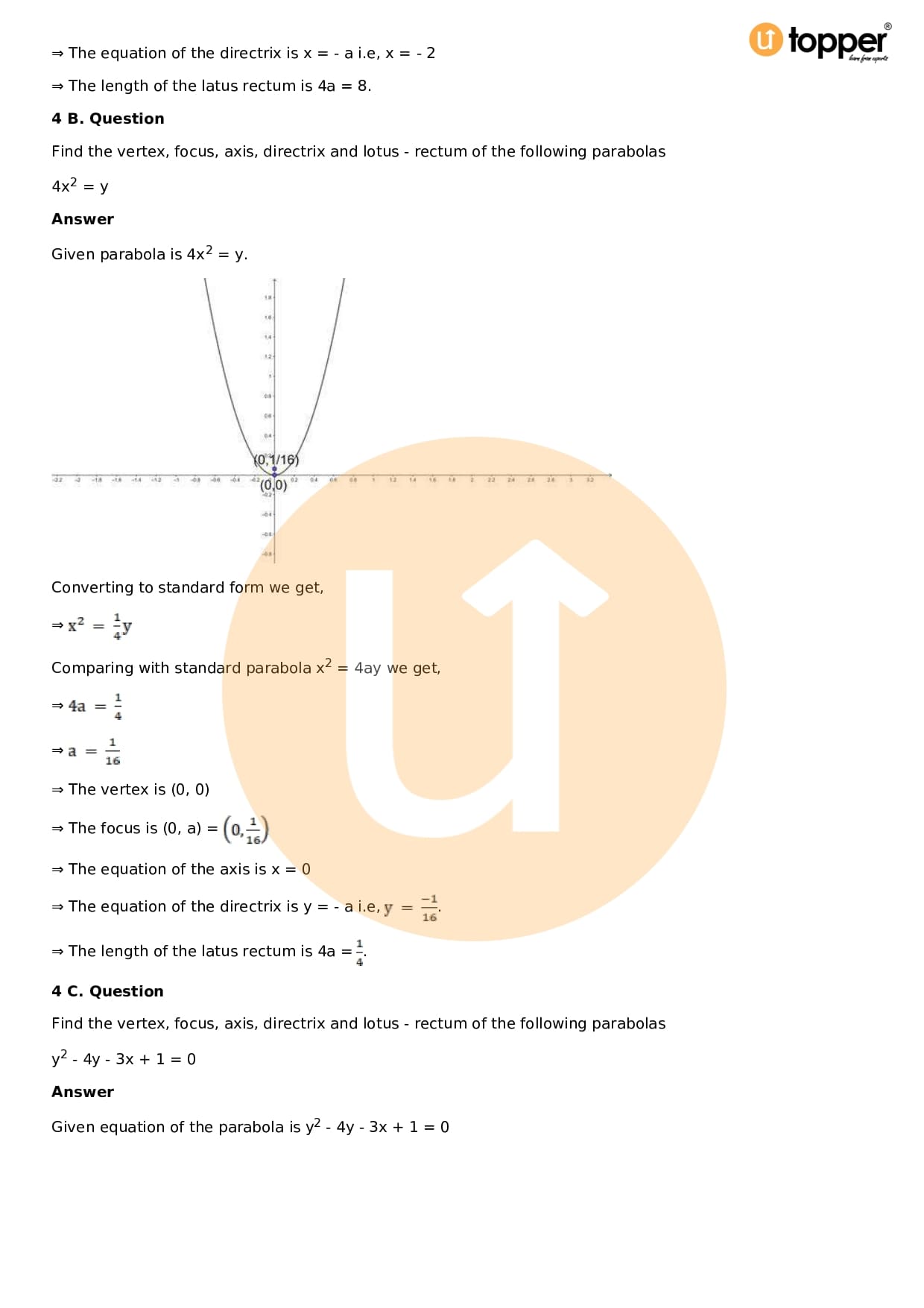RD Sharma Class 11 Maths Chapter 25 Parabola Solutions PDF Download