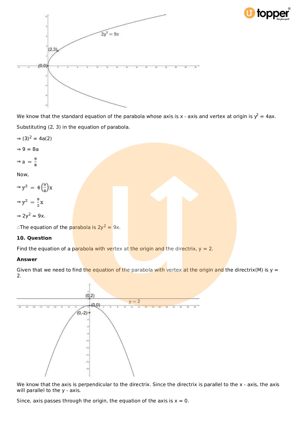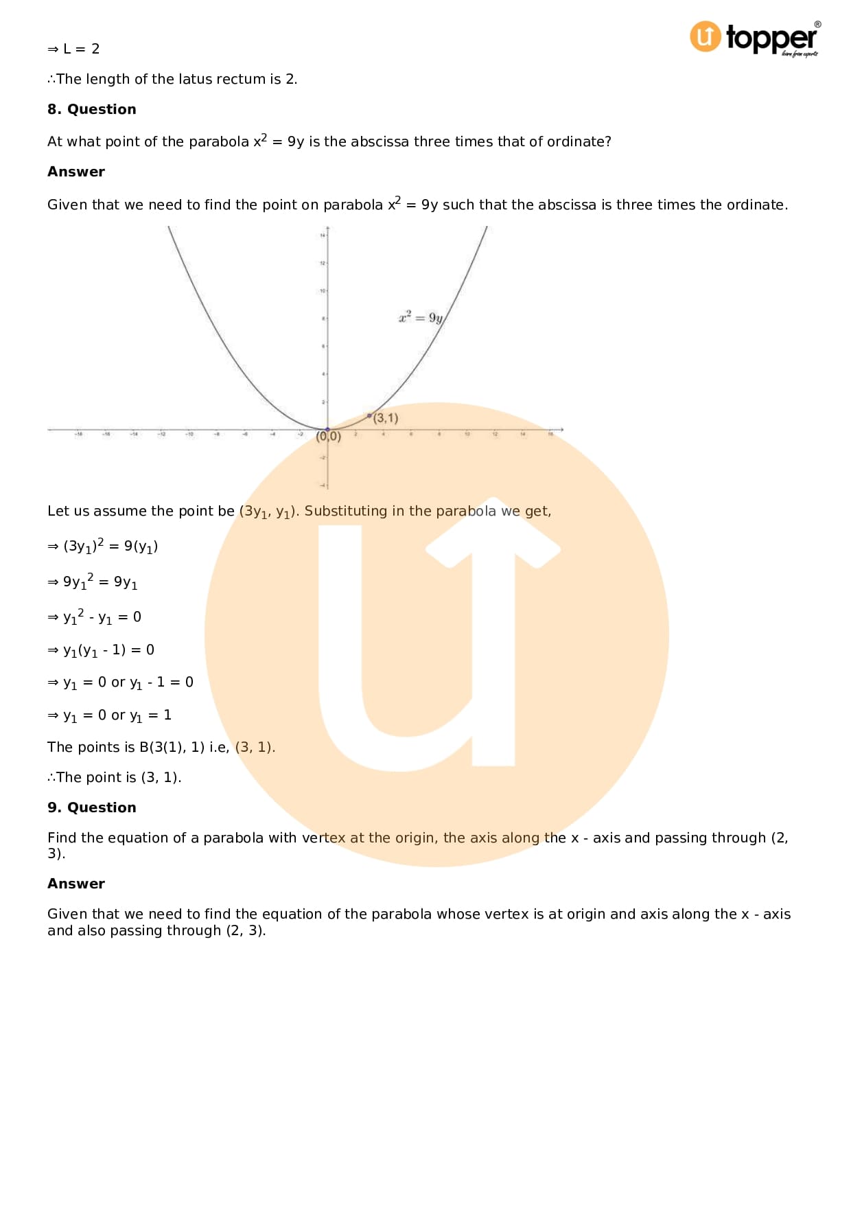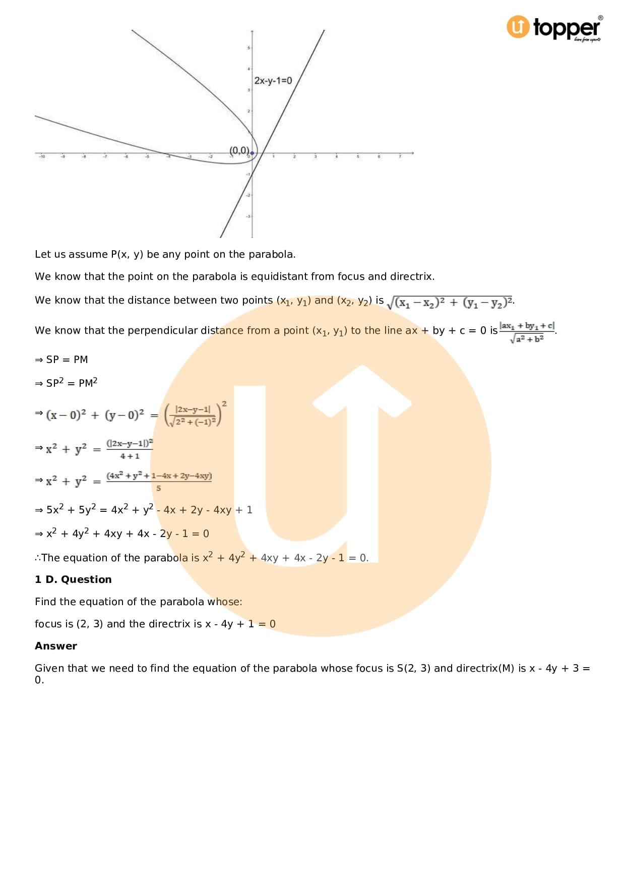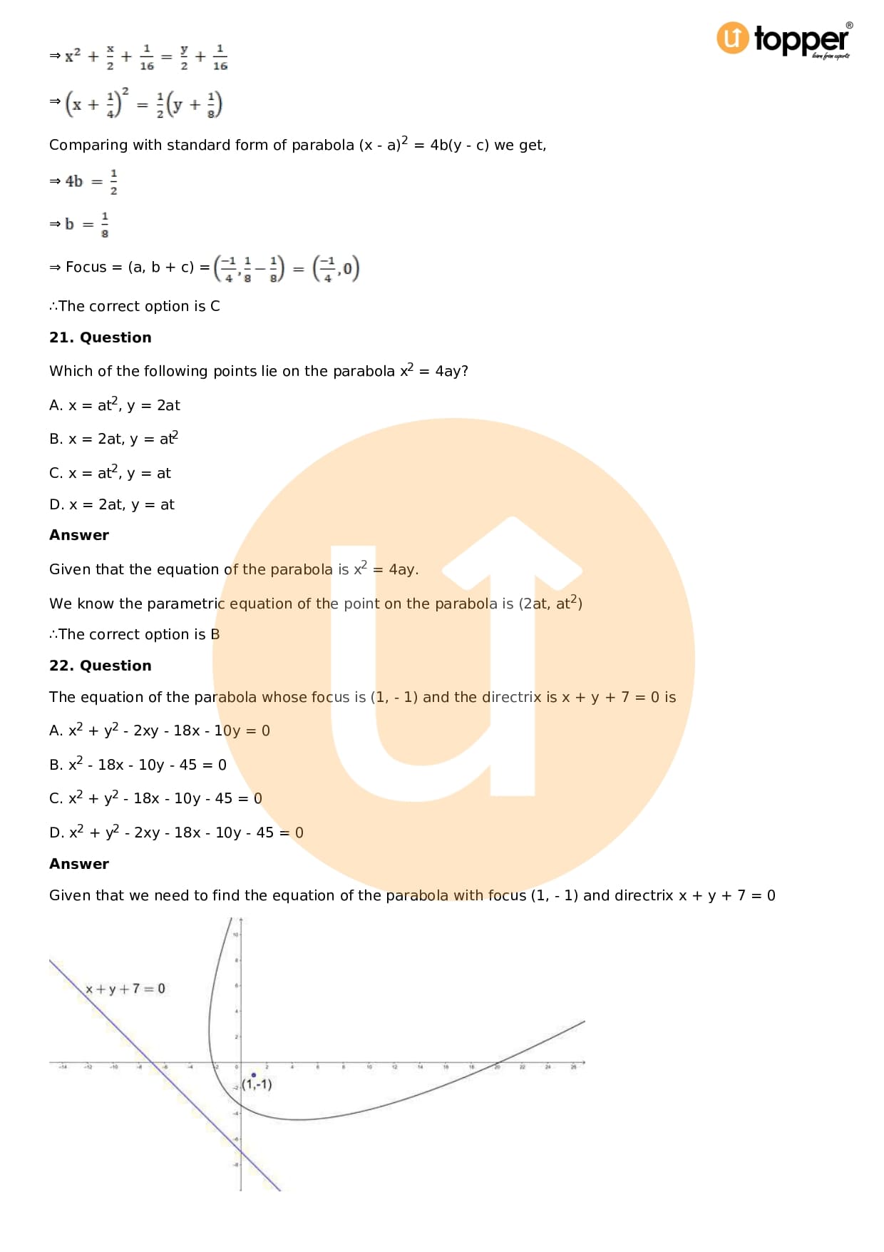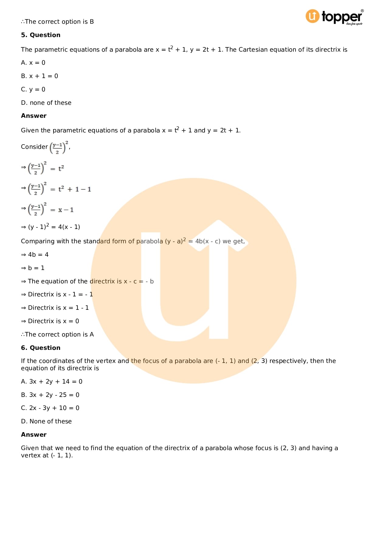 RD Sharma Class 11 Maths Chapter 25 Parabola Solutions PDF Download