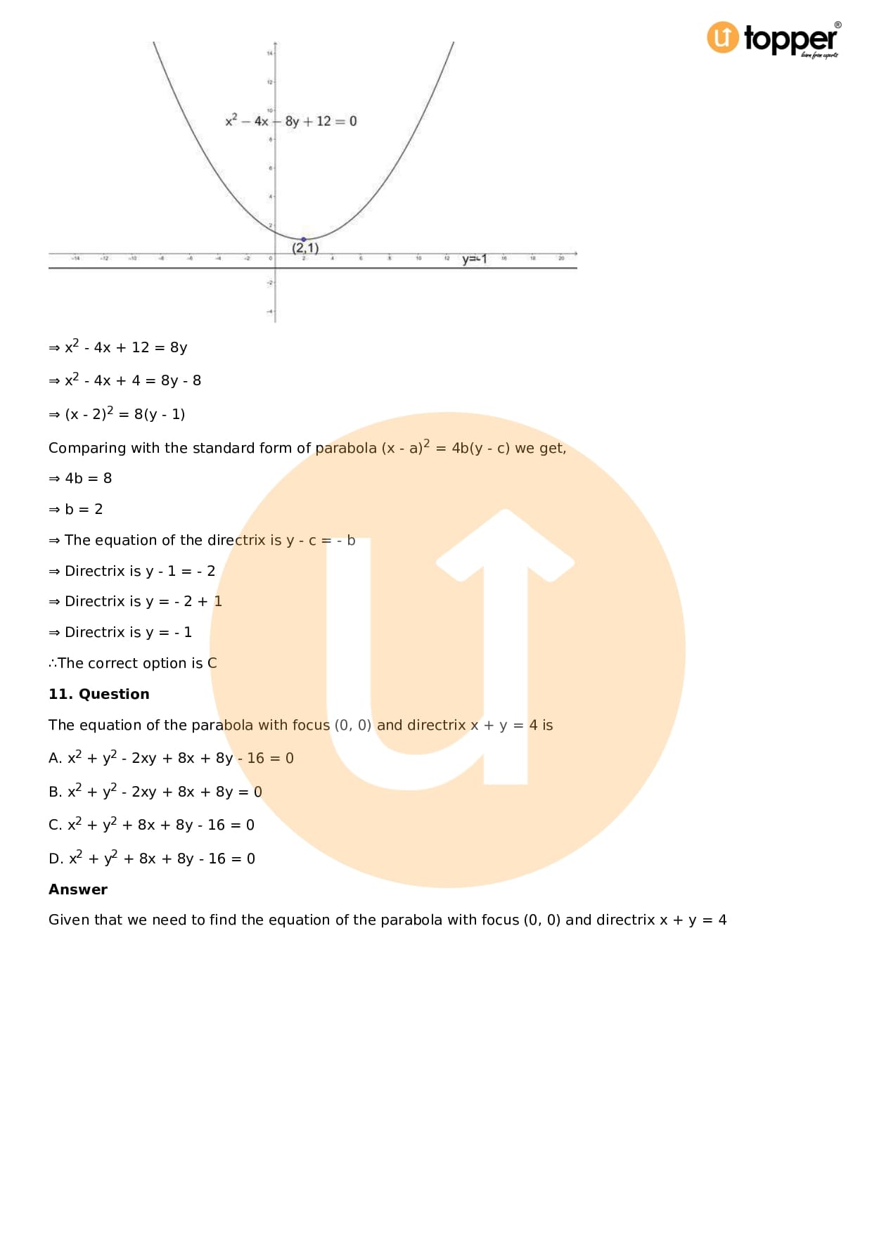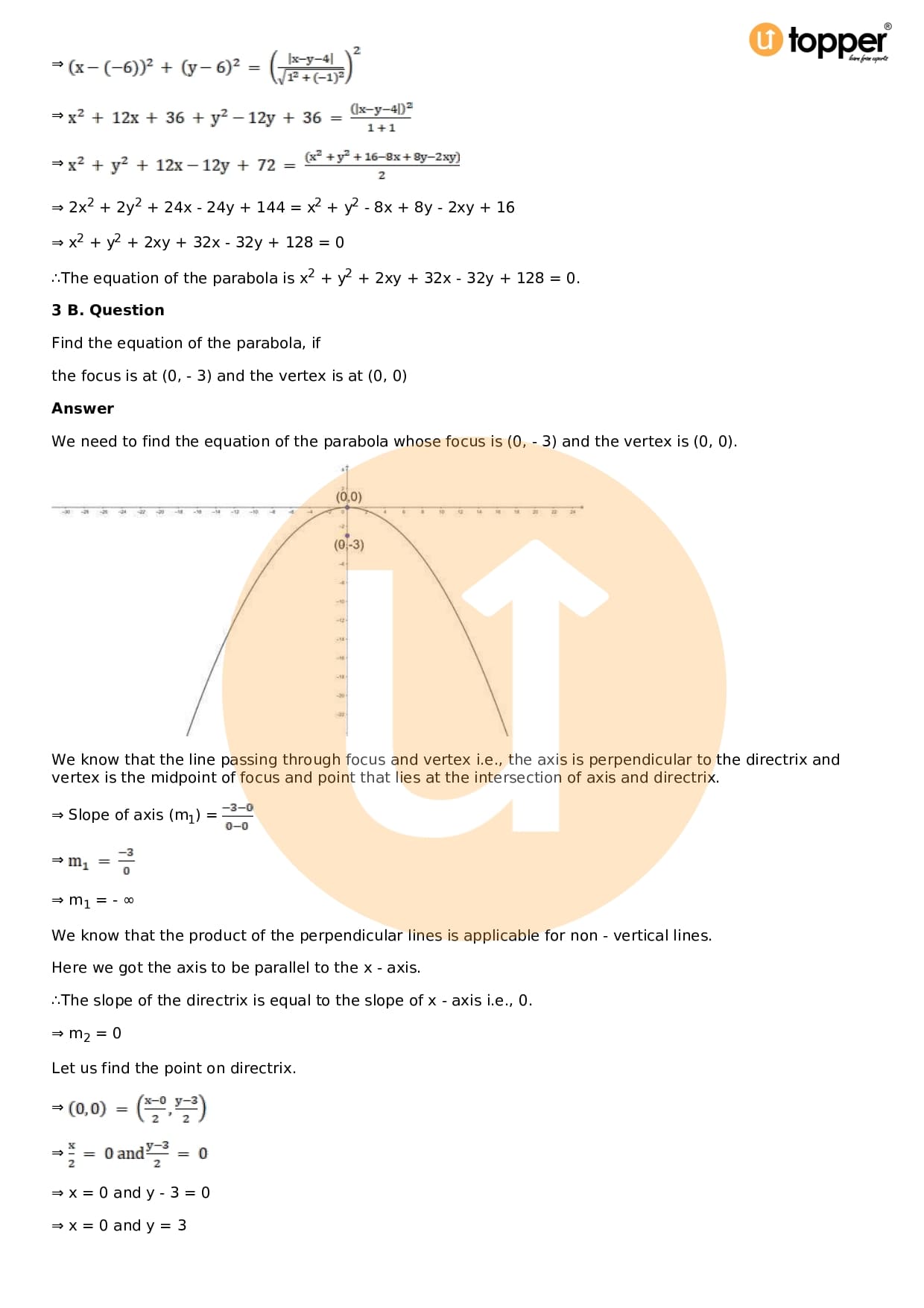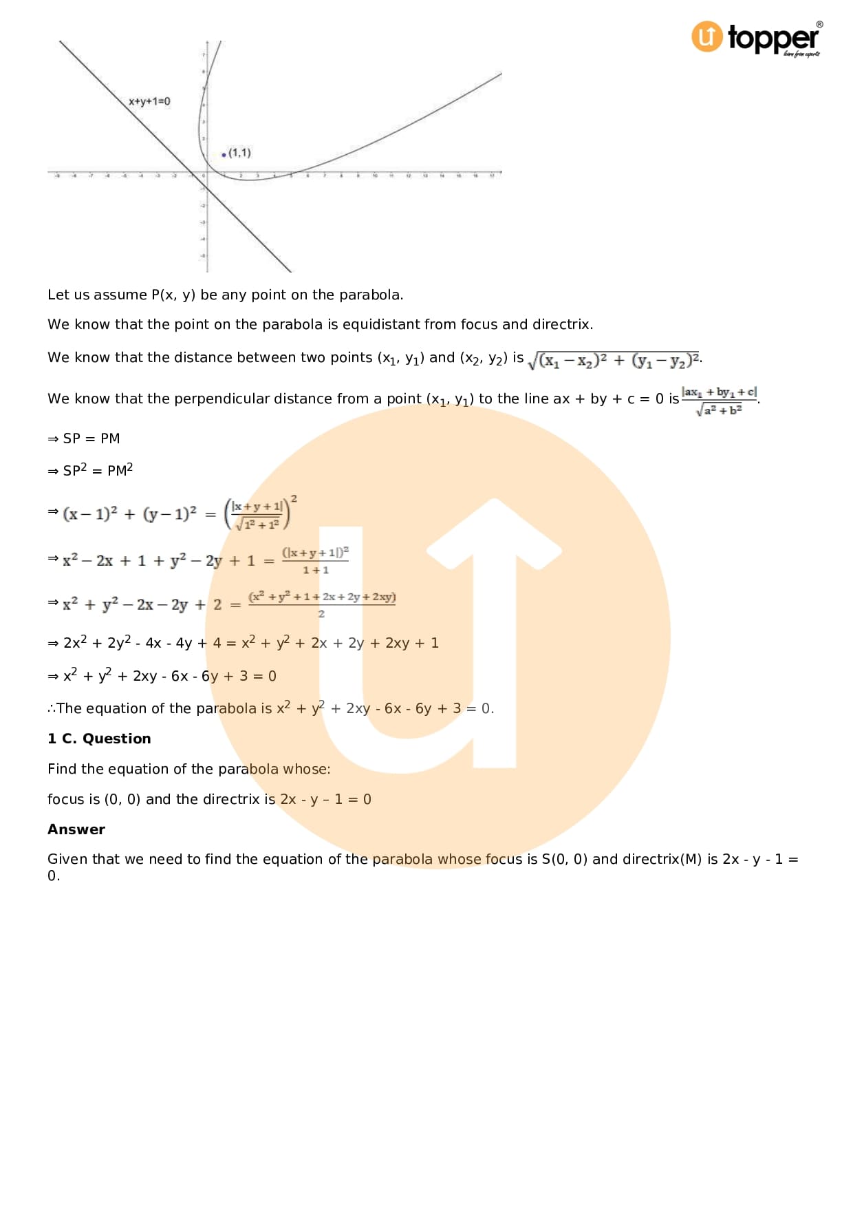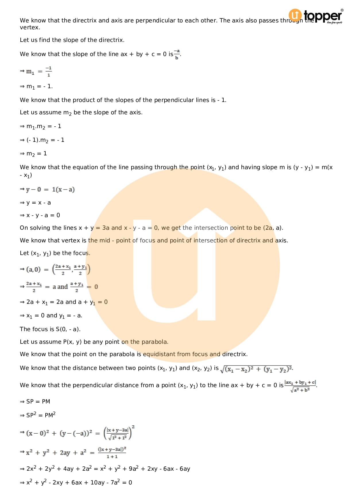 RD Sharma Class 11 Maths Chapter 25 Parabola Solutions PDF Download