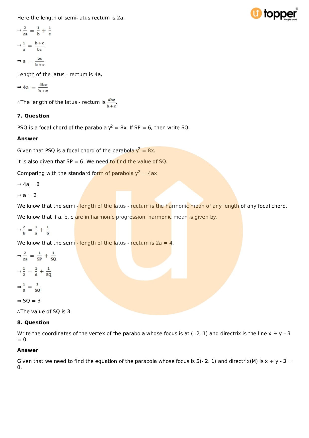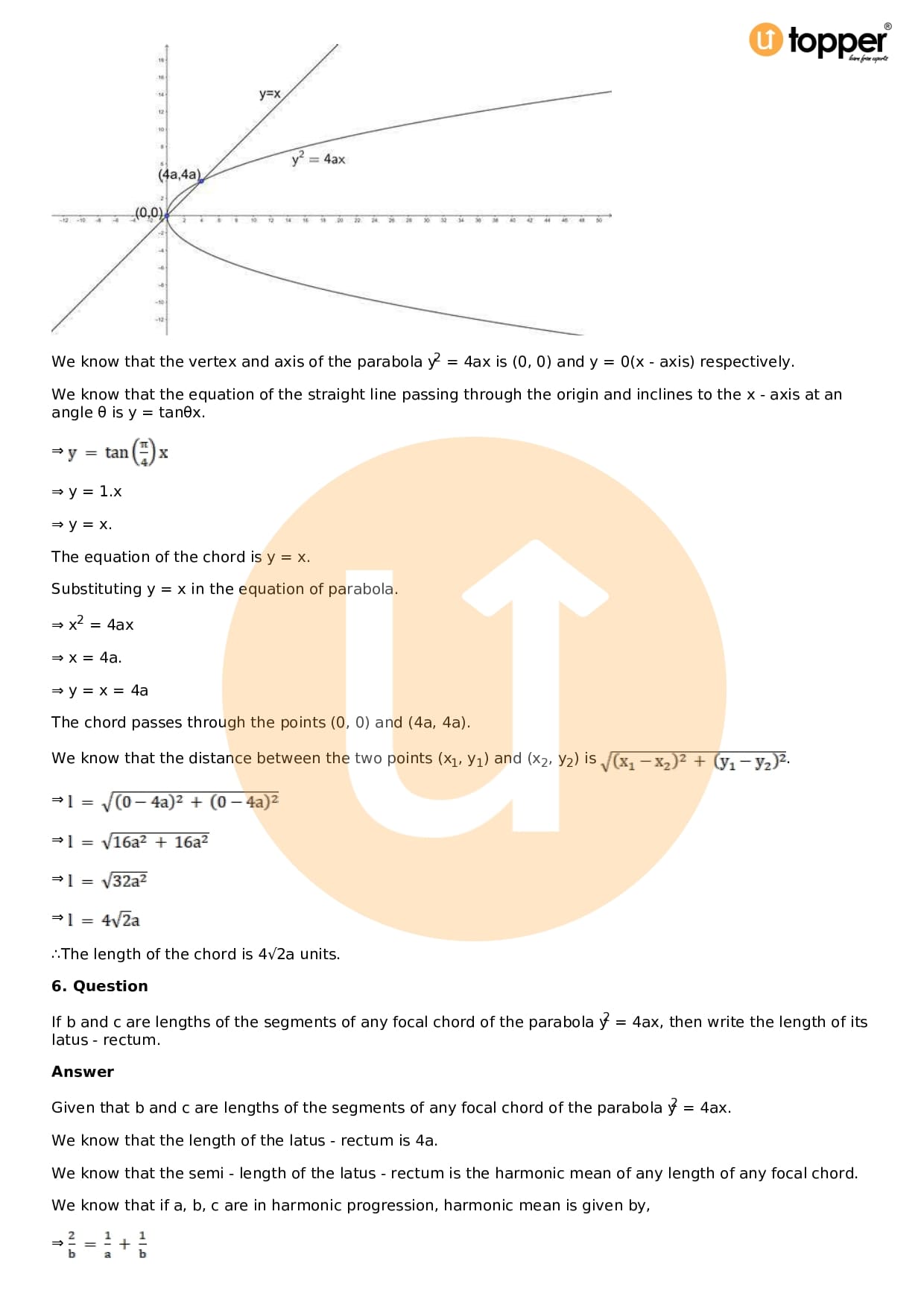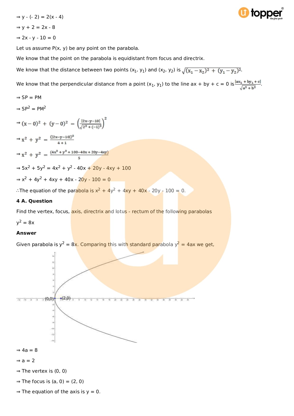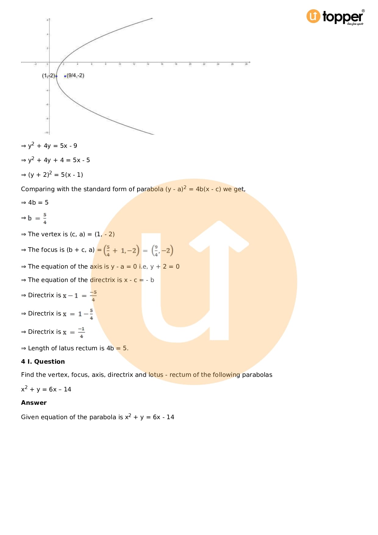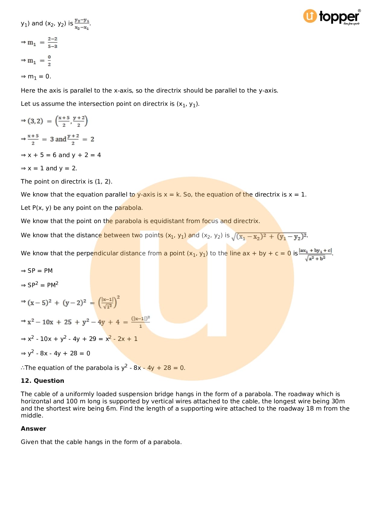 RD Sharma Class 11 Maths Chapter 25 Parabola Solutions PDF Download