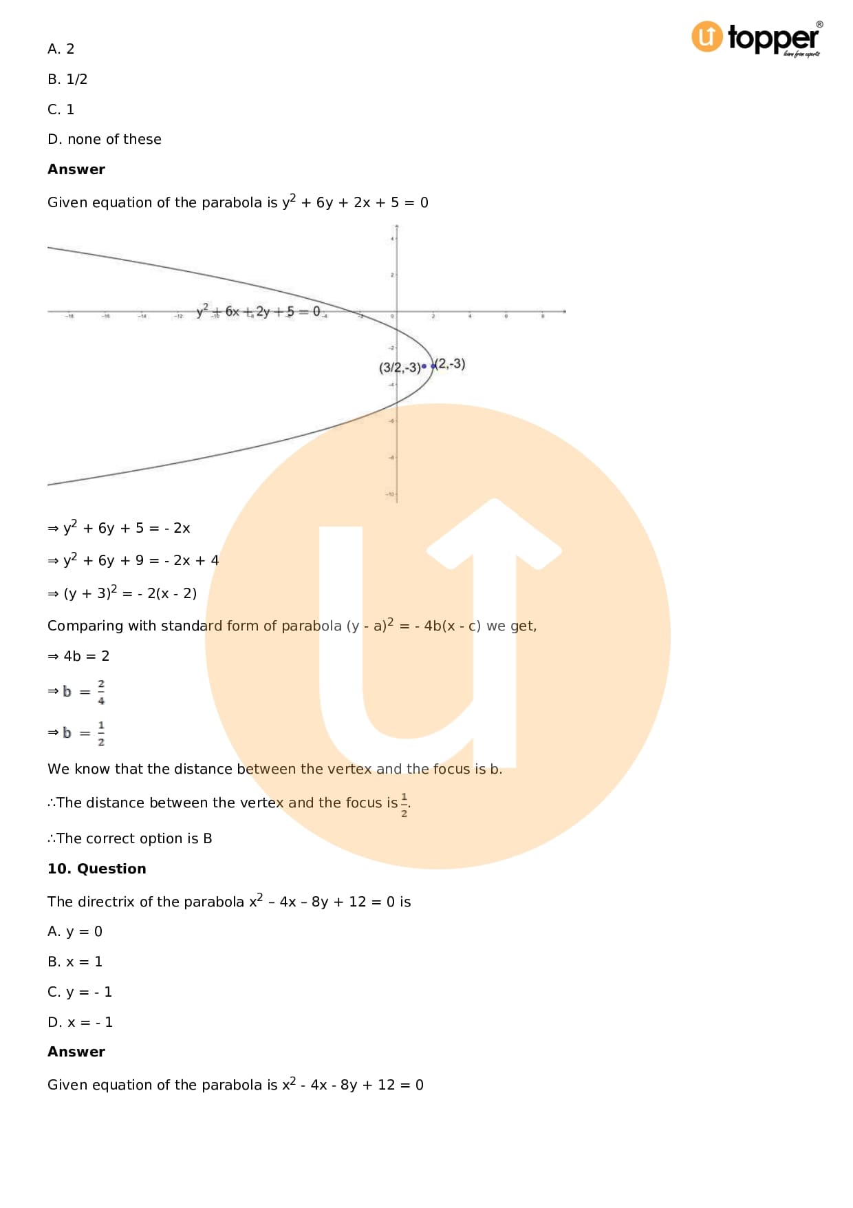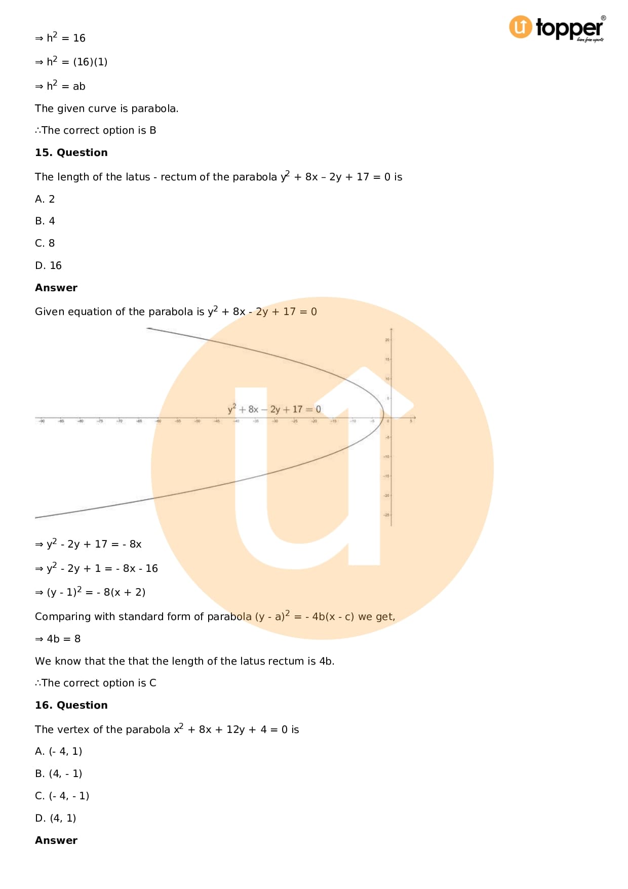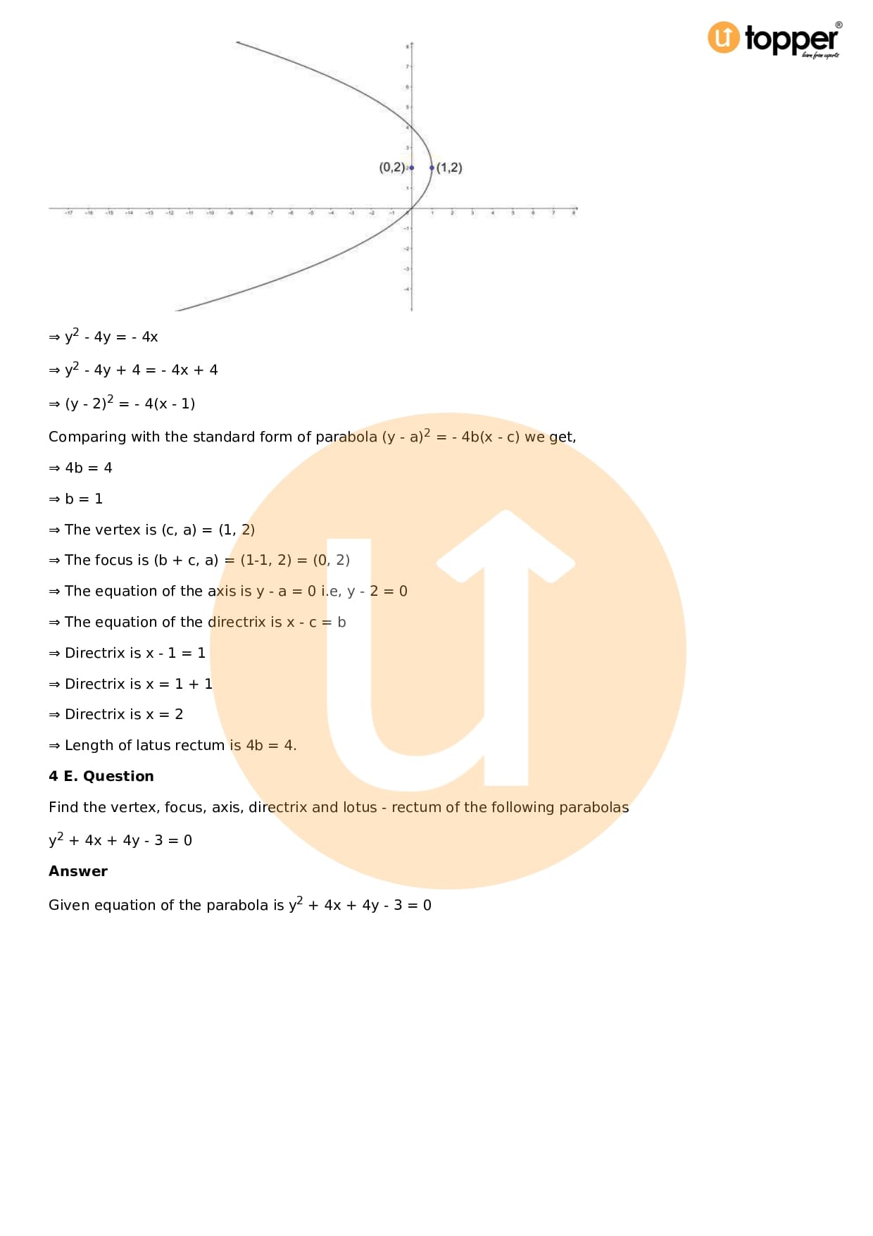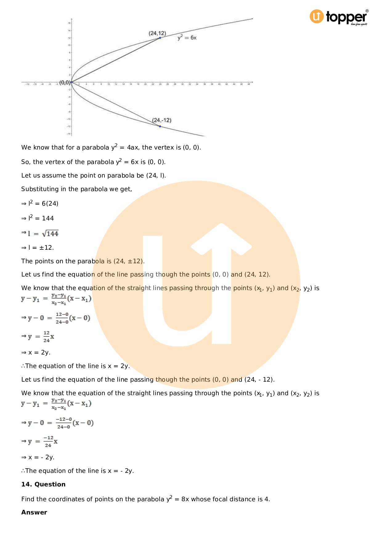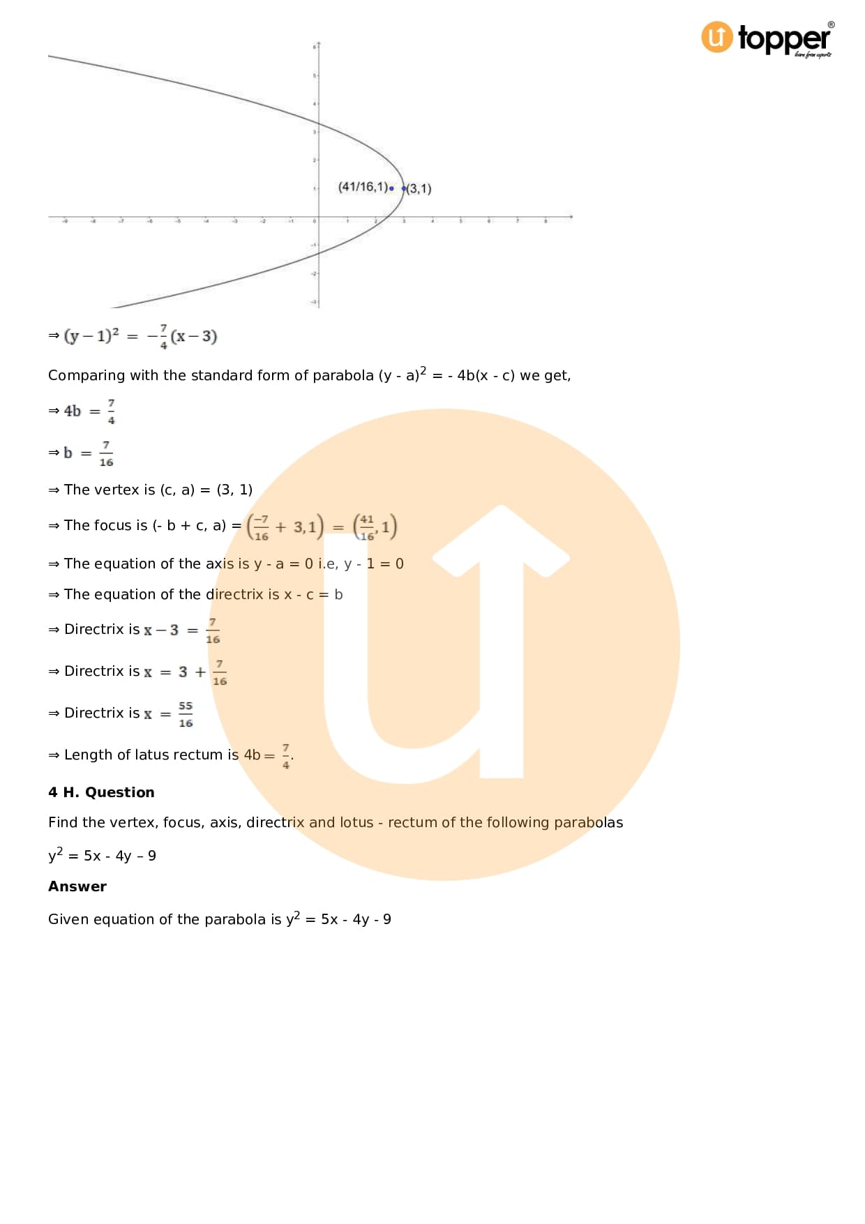 RD Sharma Class 11 Maths Chapter 25 Parabola Solutions PDF Download