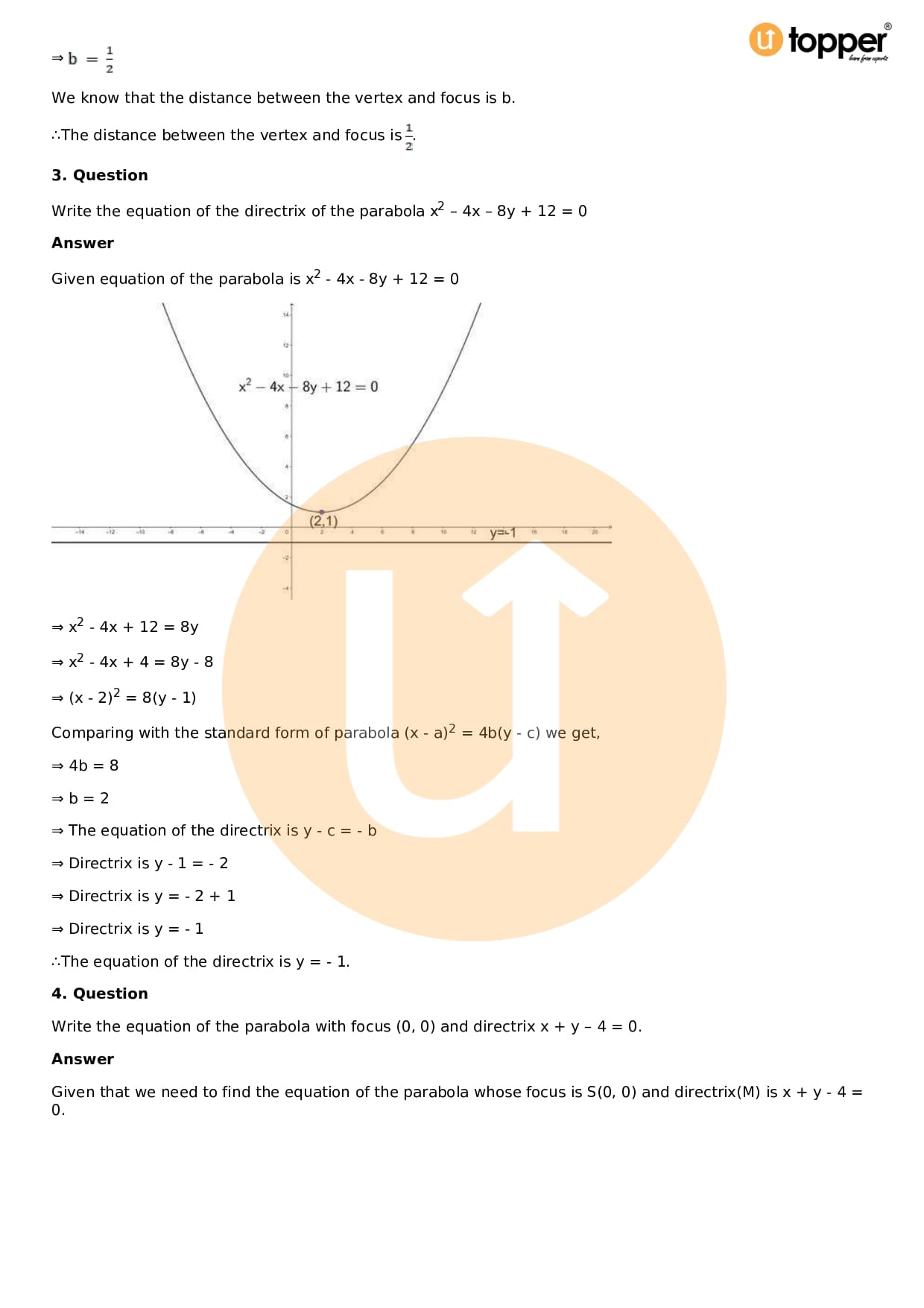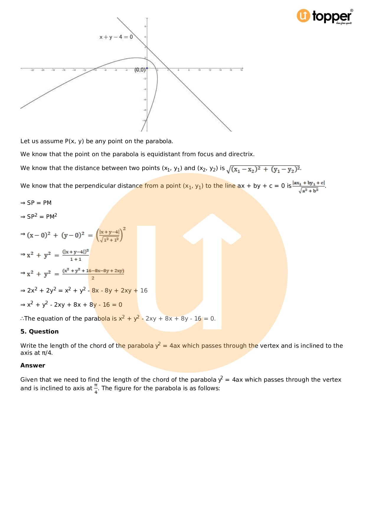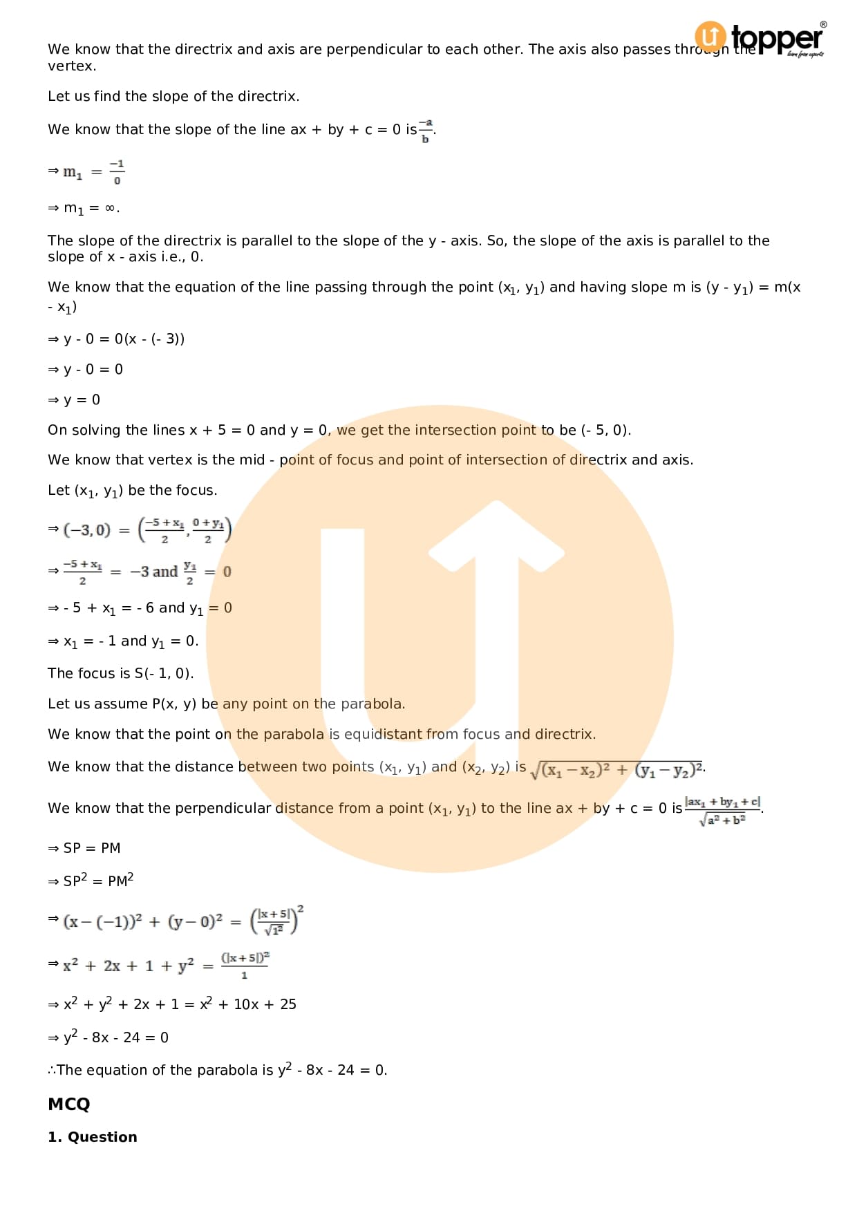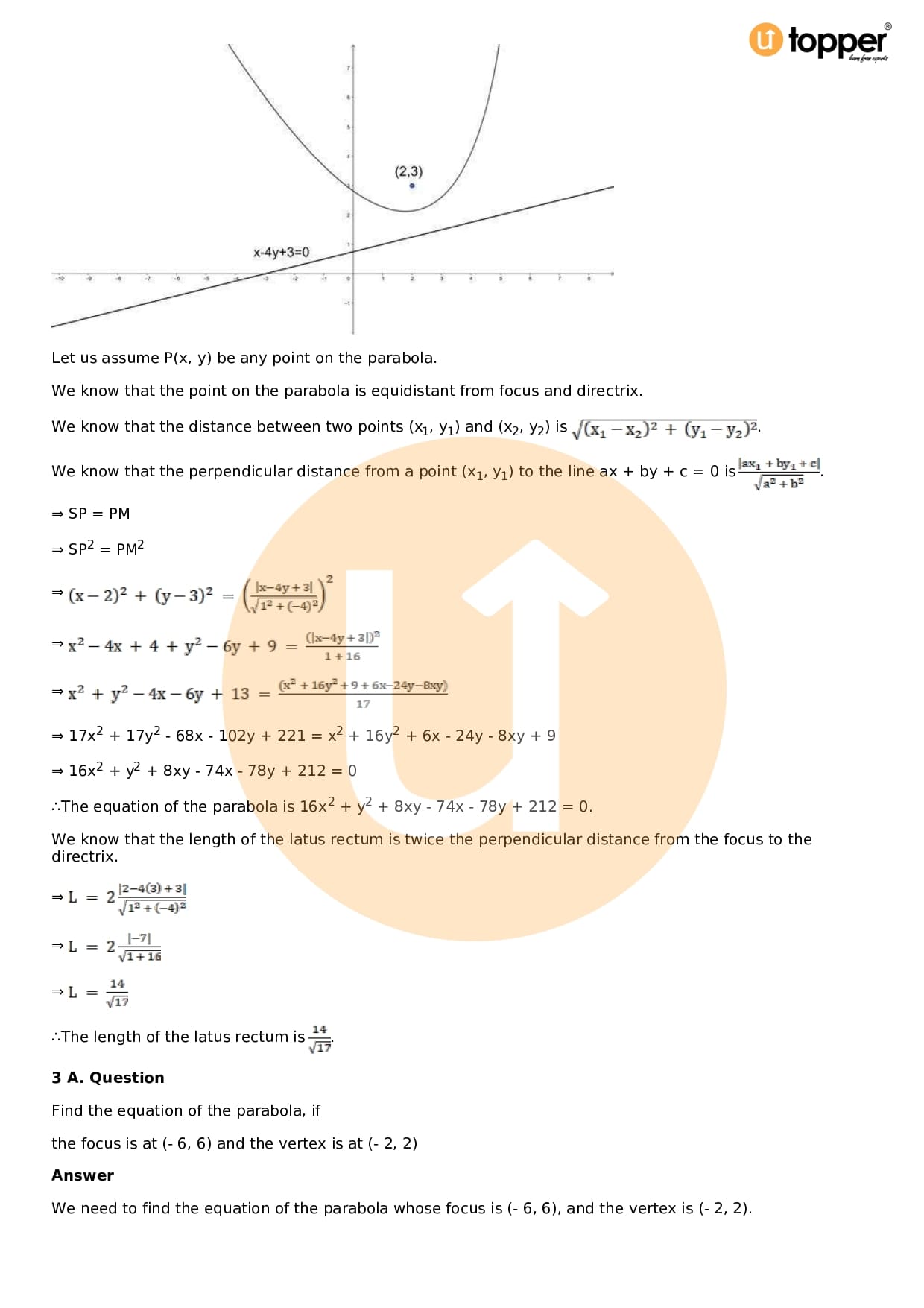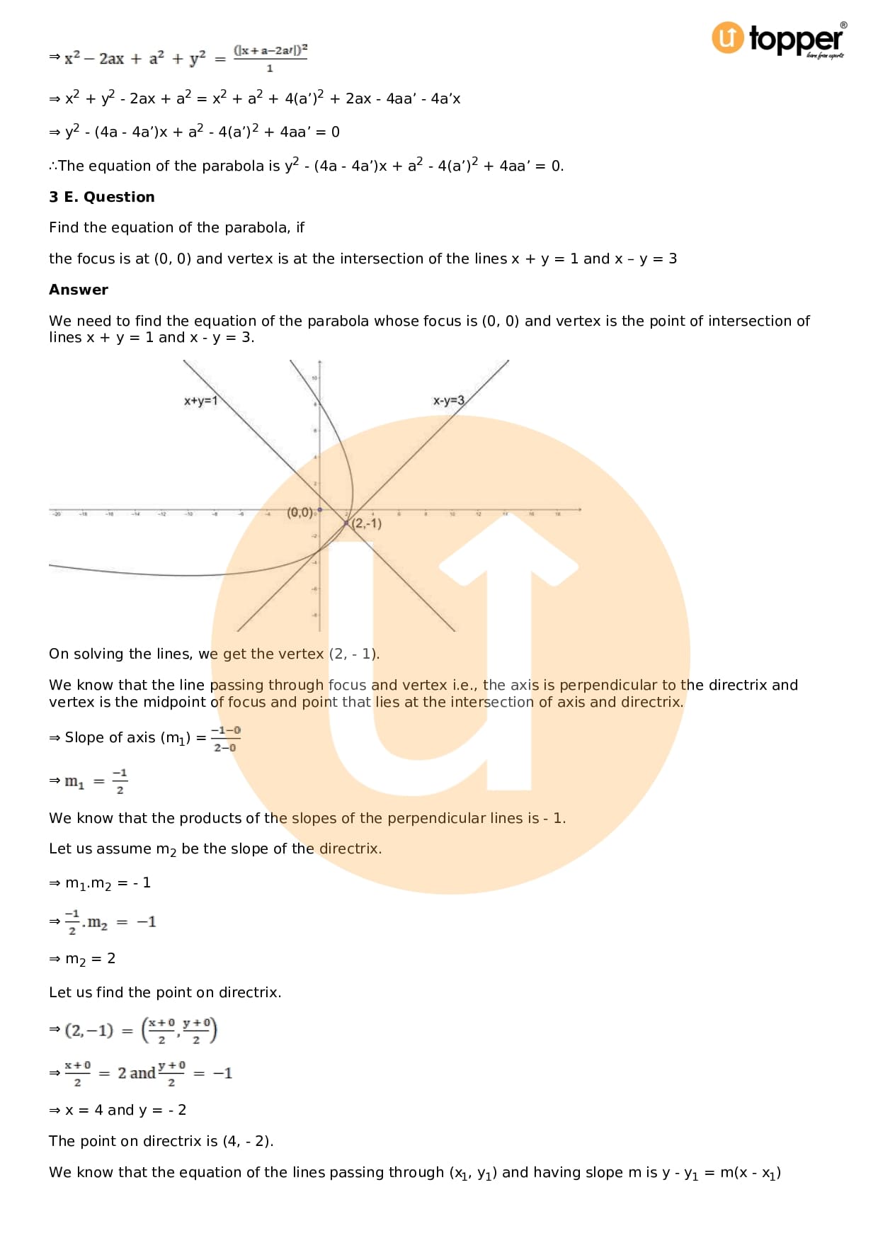 RD Sharma Class 11 Maths Chapter 25 Parabola Solutions PDF Download