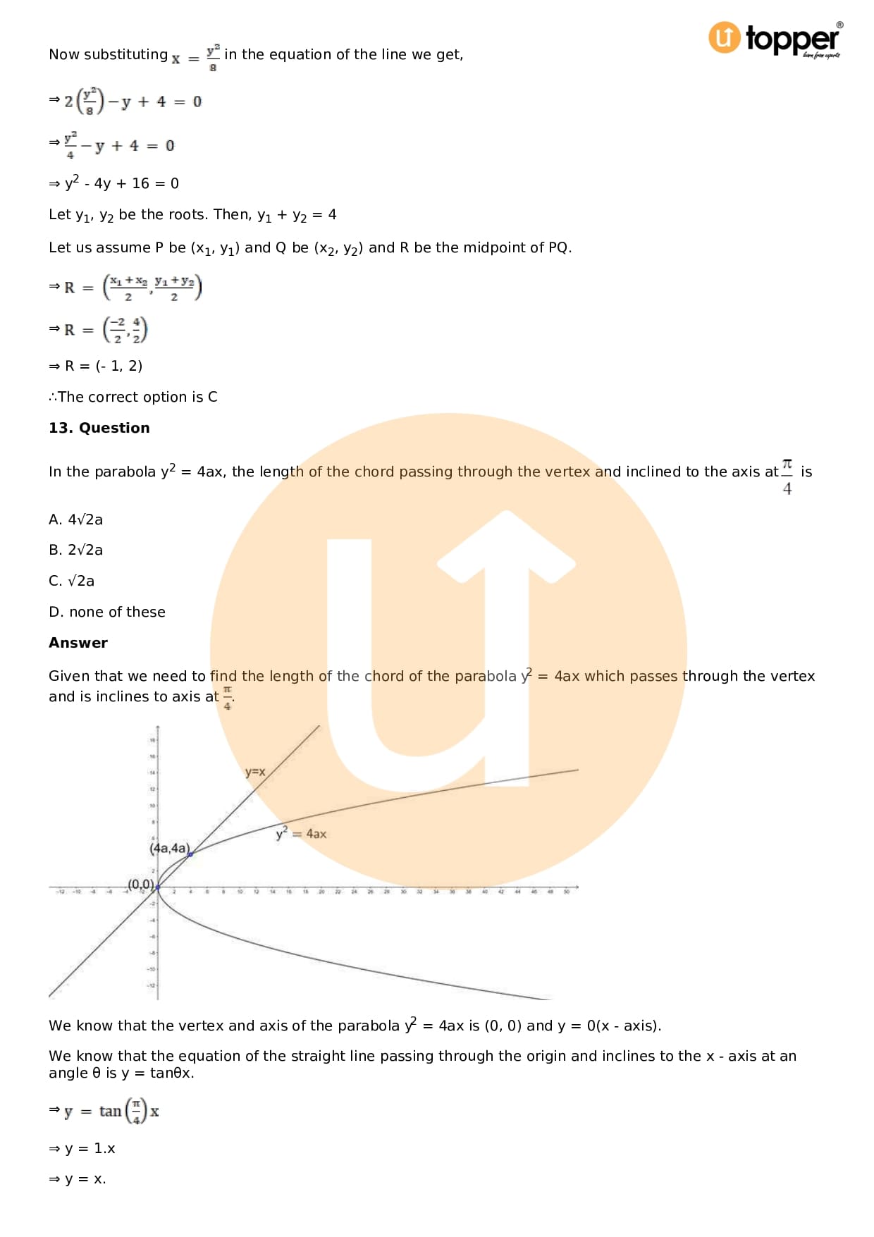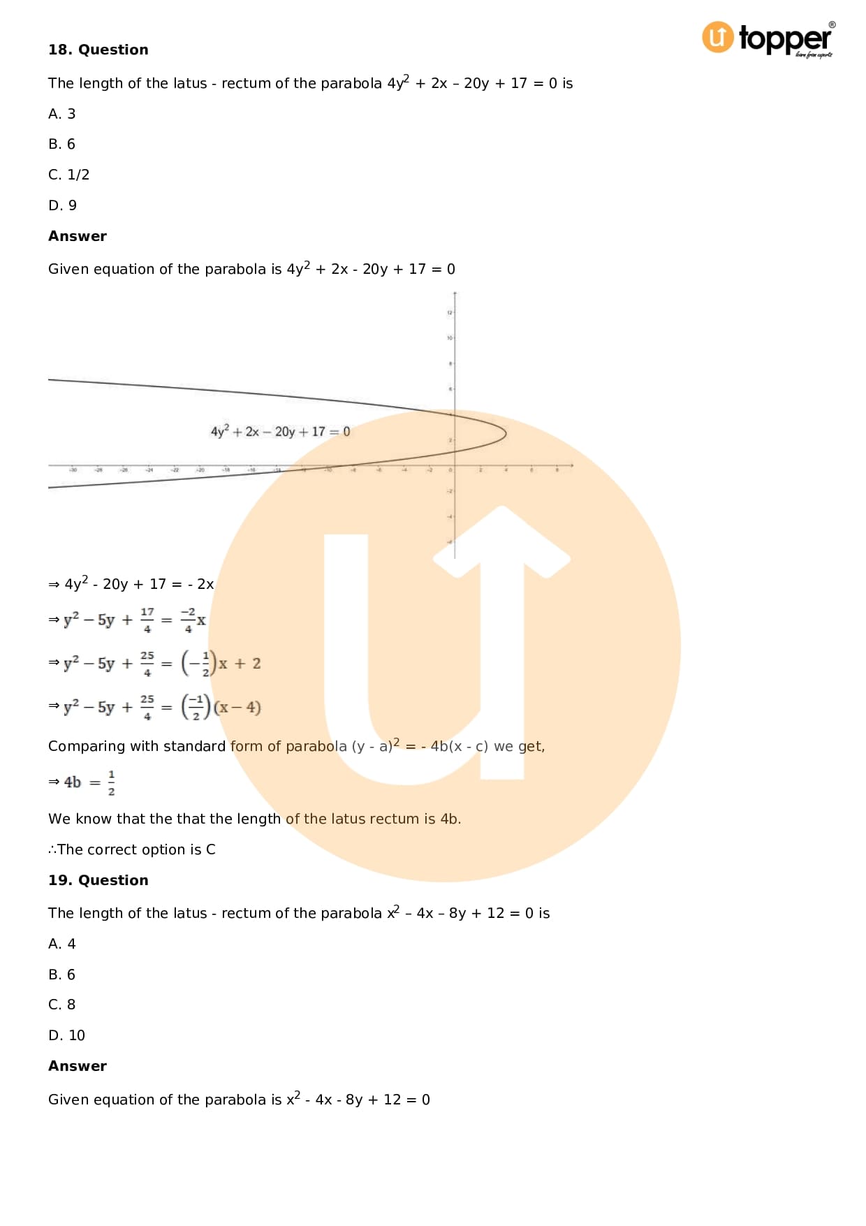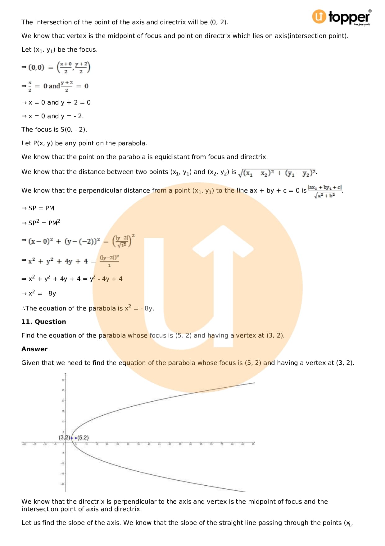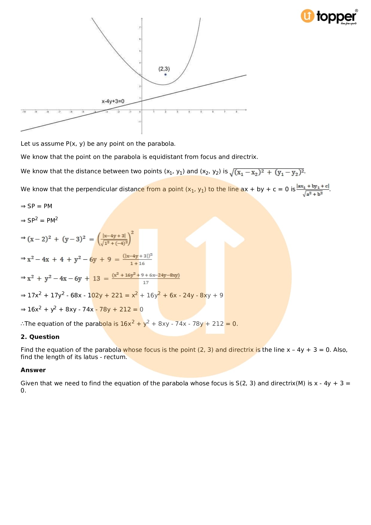 RD Sharma Class 11 Maths Chapter 25 Parabola Solutions PDF Download
