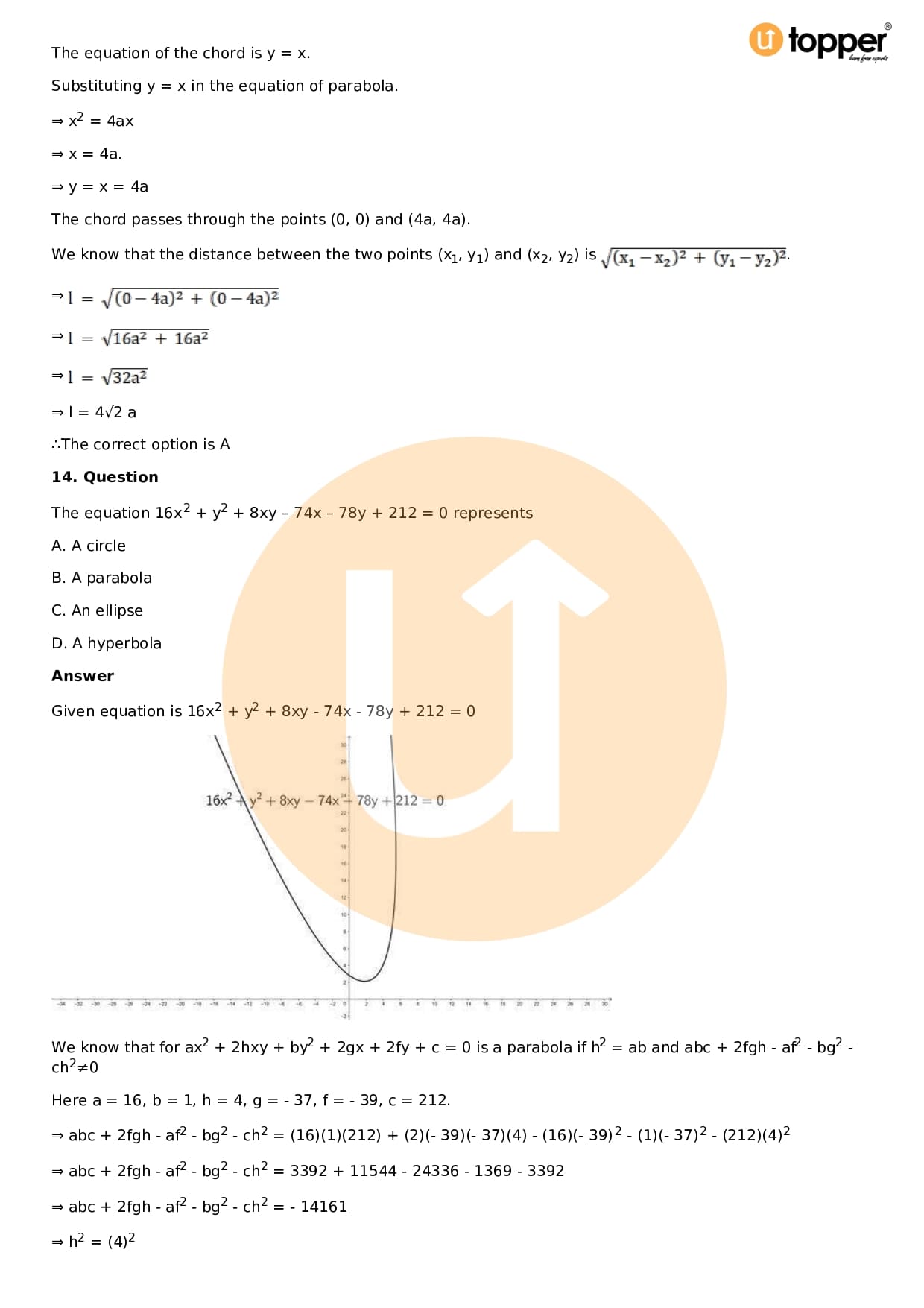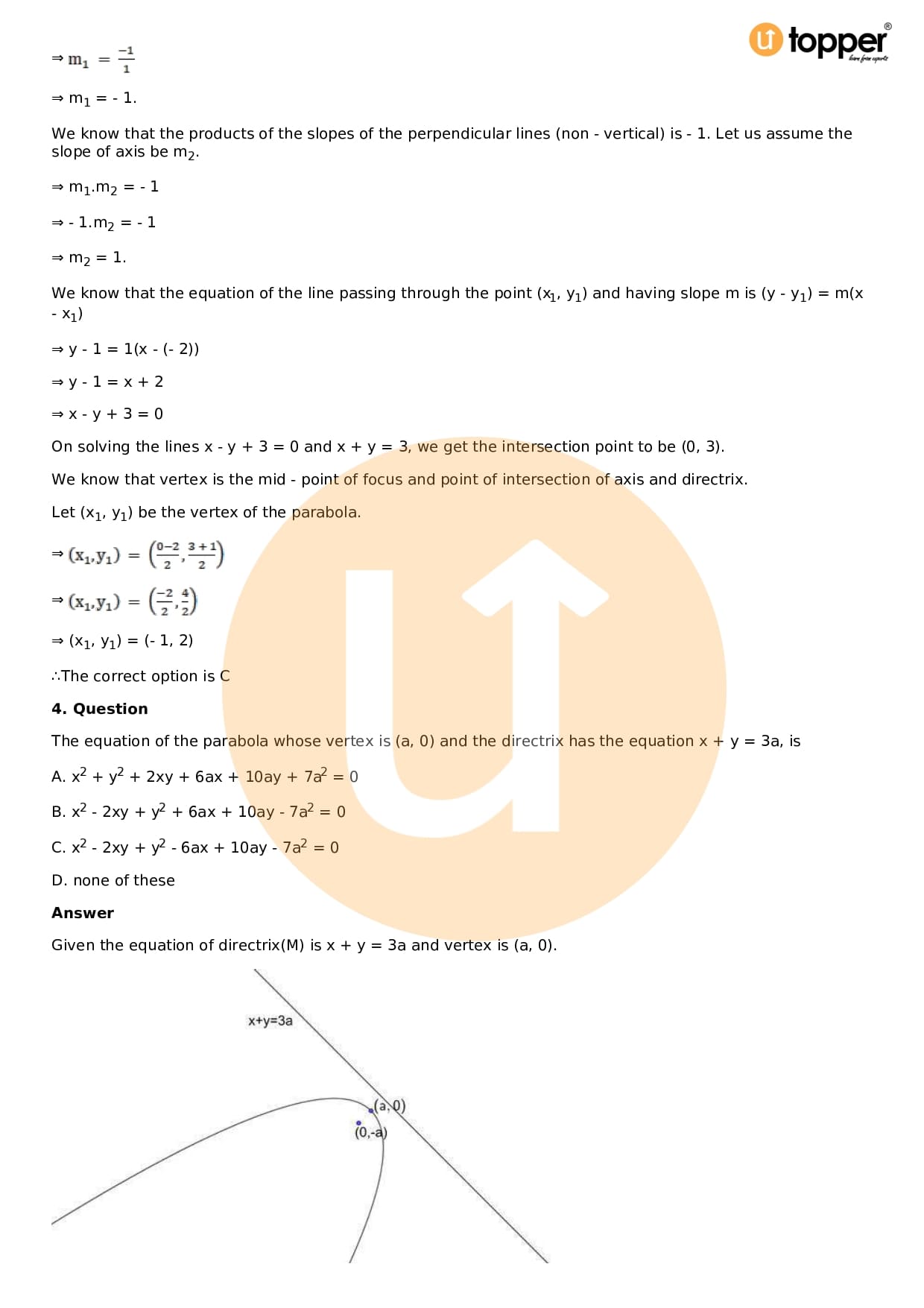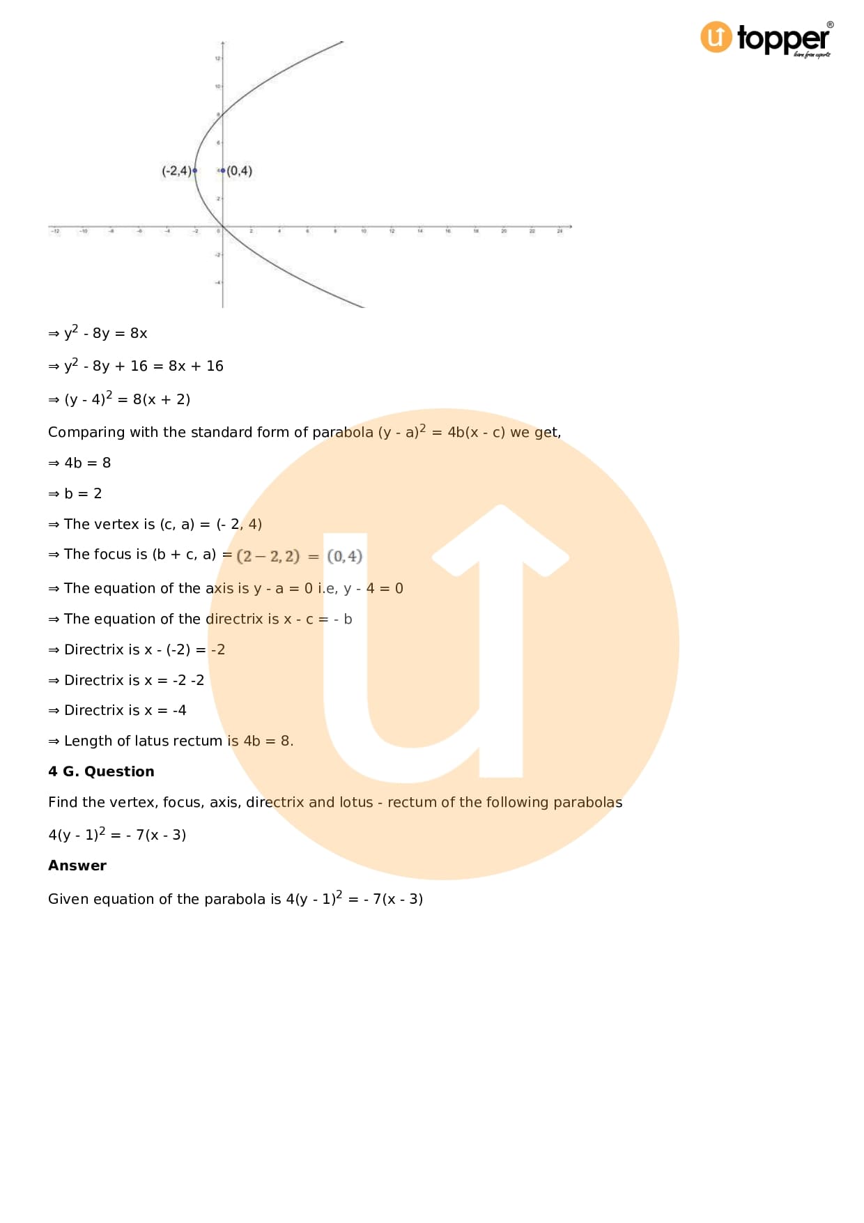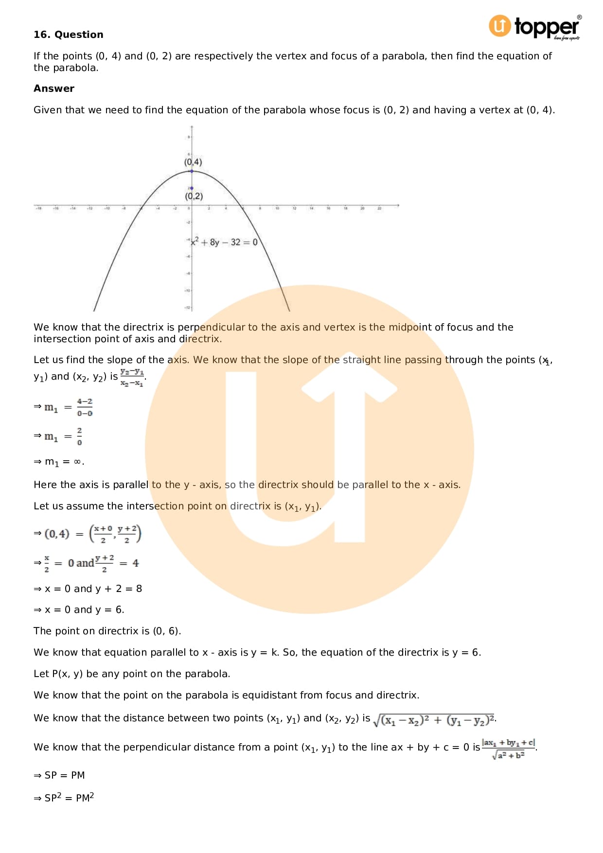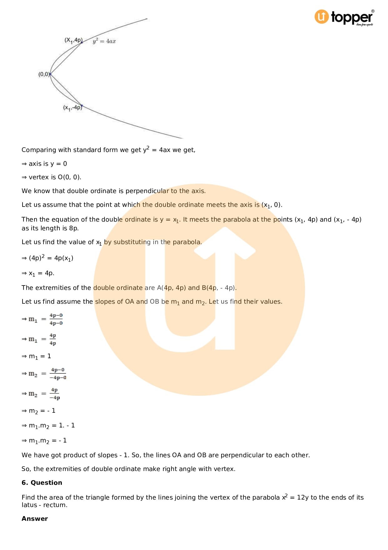 RD Sharma Class 11 Maths Chapter 25 Parabola Solutions PDF Download