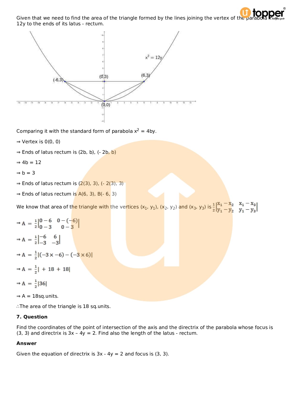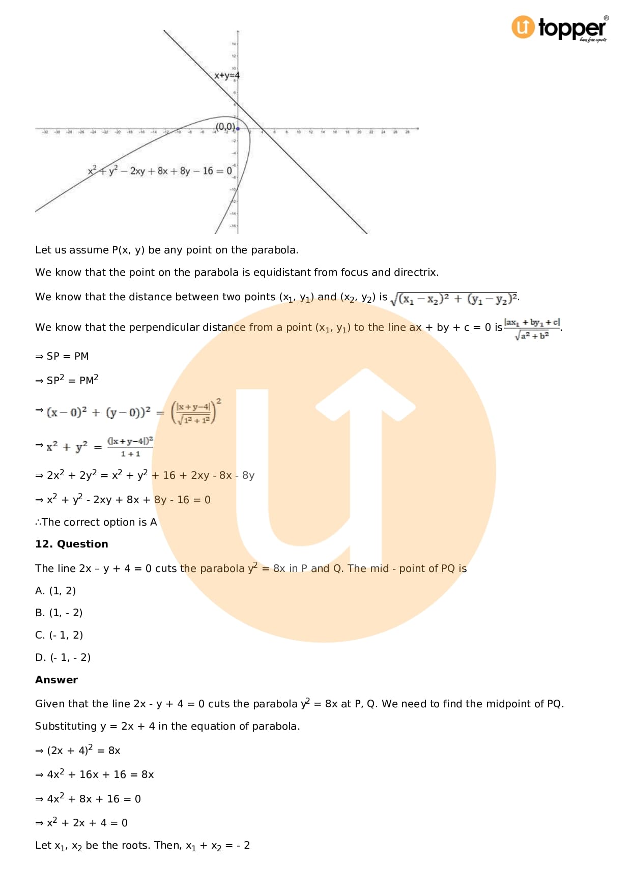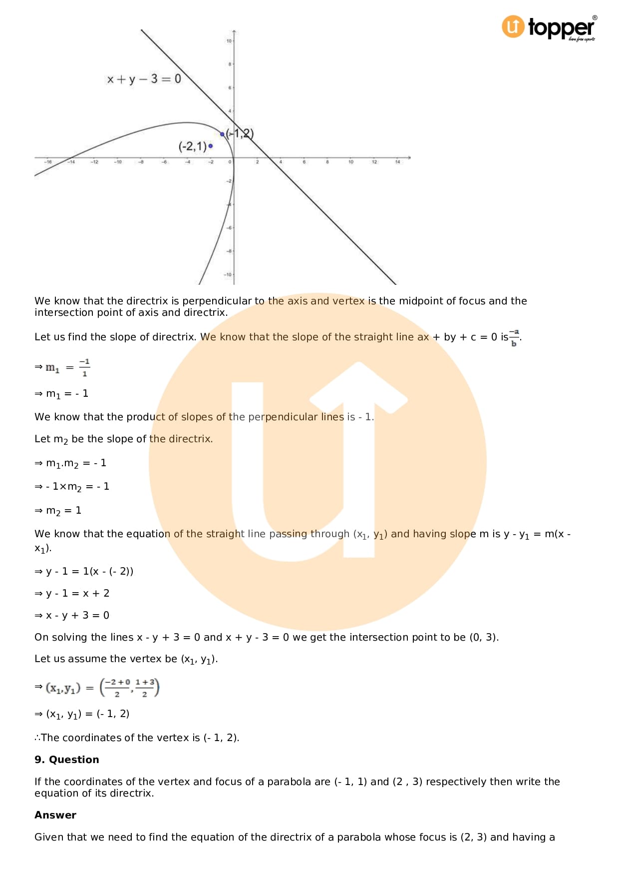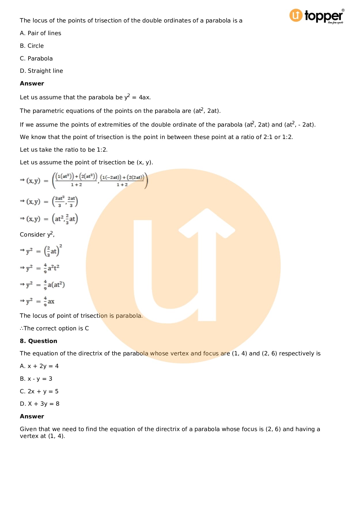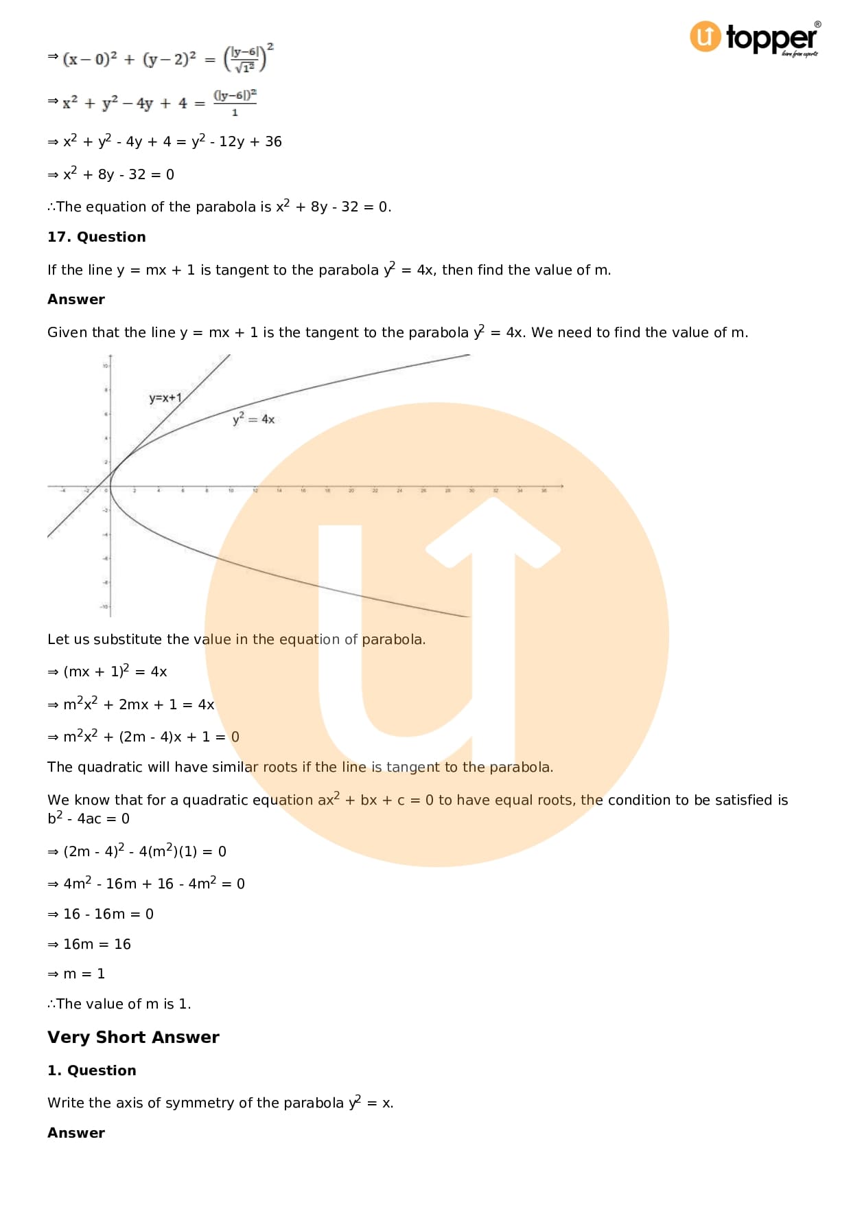 RD Sharma Class 11 Maths Chapter 25 Parabola Solutions PDF Download