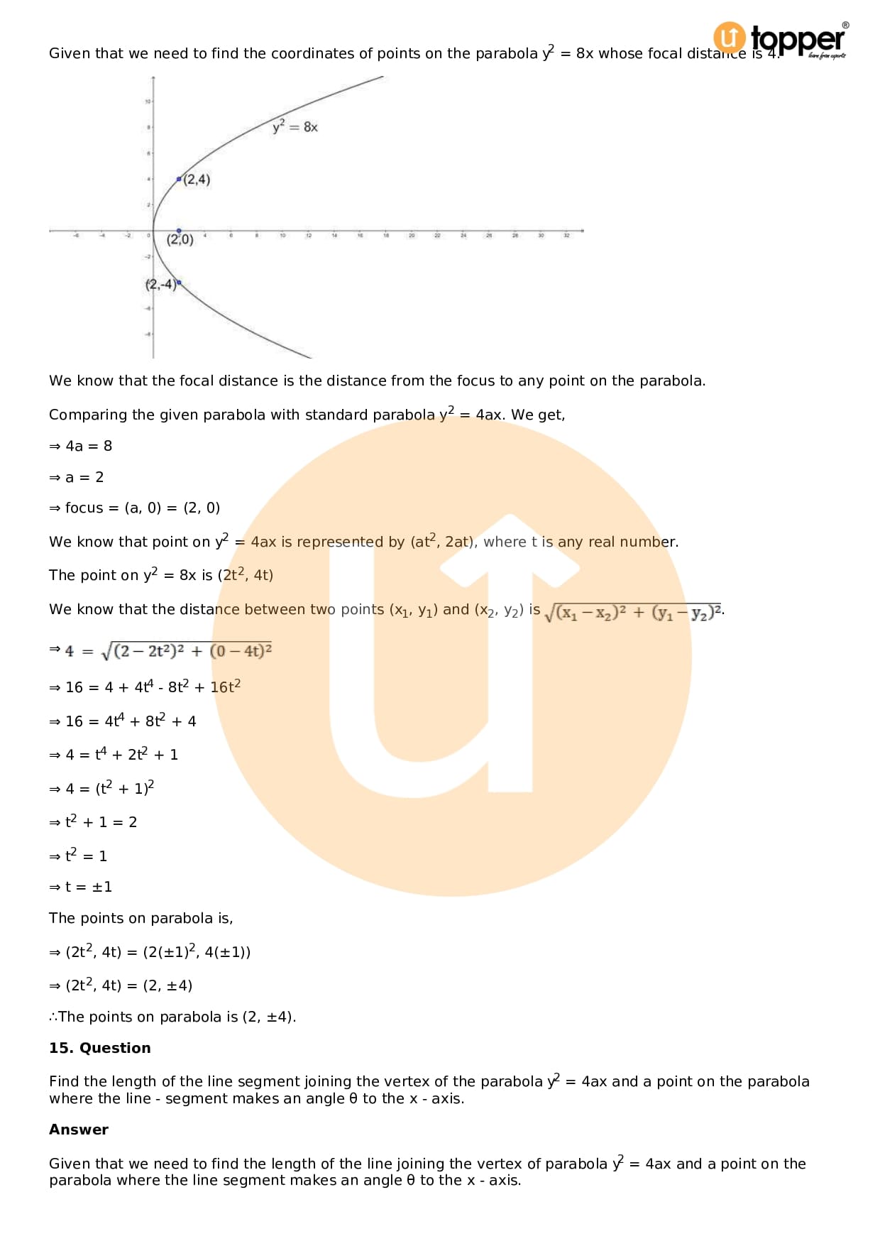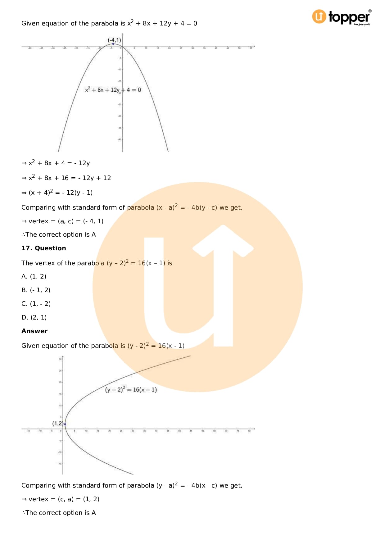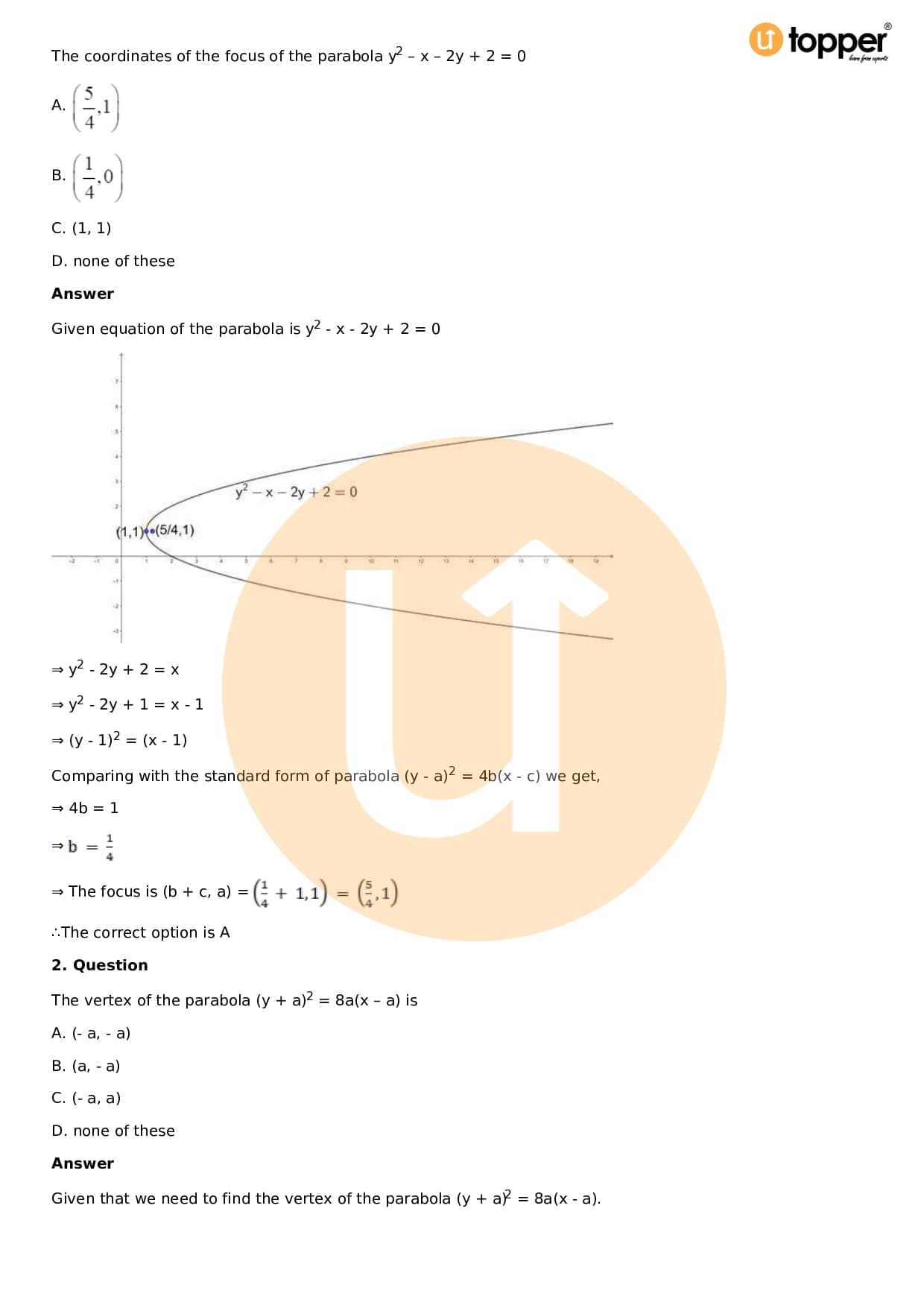 Download the latest version of RD Sharma Solutions for Class 11 Maths Chapter 25 Parabola PDF at Utopper. It provides step by step Solution PDF. You can download RD Sharma Maths Solutions with a free PDF download option, which includes chapter wise solutions. All the questions in RD Sharma Solutions have been solved and explained by expert mathematics teachers as per the CBSE Board guidelines. By studying these Maths Solutions, you can easily get good marks in the CBSE board exams.
