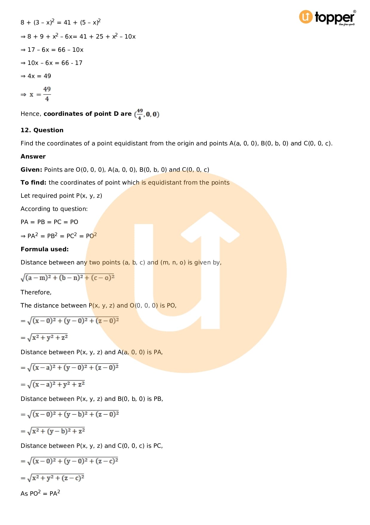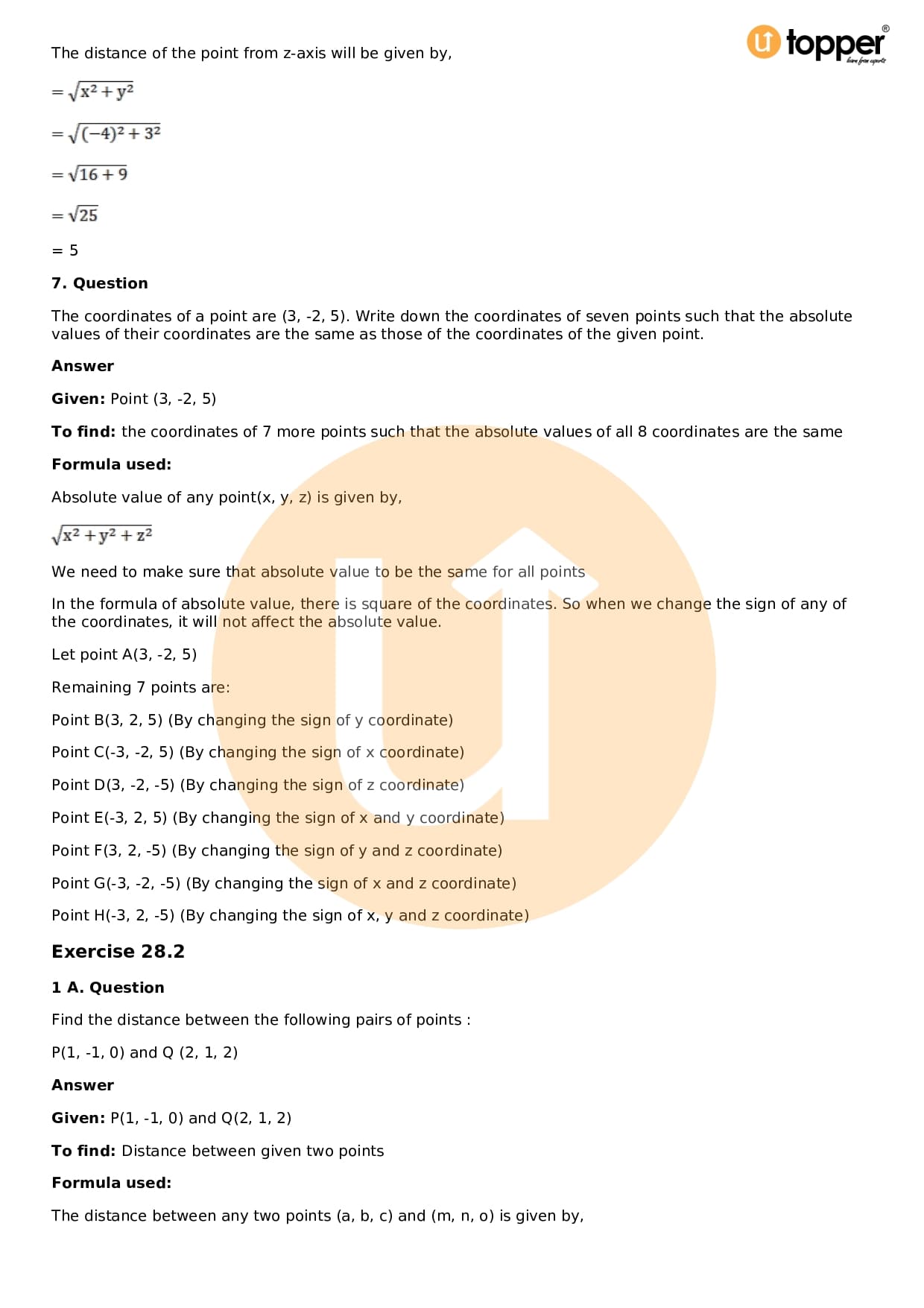 Download the latest version of RD Sharma Solutions for Class 11 Maths Chapter 28 Introduction to 3D coordinate geometry PDF at Utopper. It provides step by step Solution PDF. You can download RD Sharma Maths Solutions with a free PDF download option, which includes chapter wise solutions. All the questions in RD Sharma Solutions have been solved and explained by expert mathematics teachers as per the CBSE Board guidelines. By studying these Maths Solutions, you can easily get good marks in the CBSE board exams.