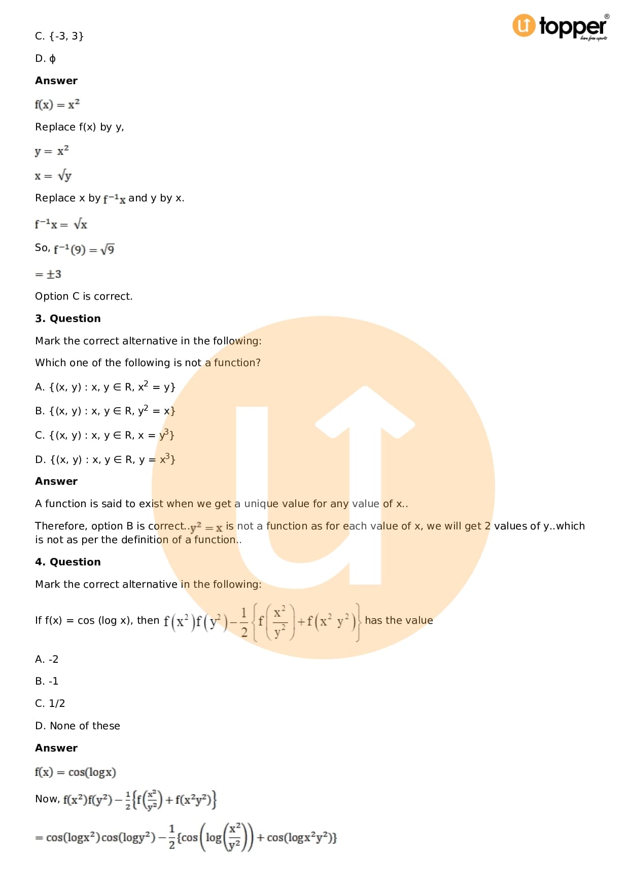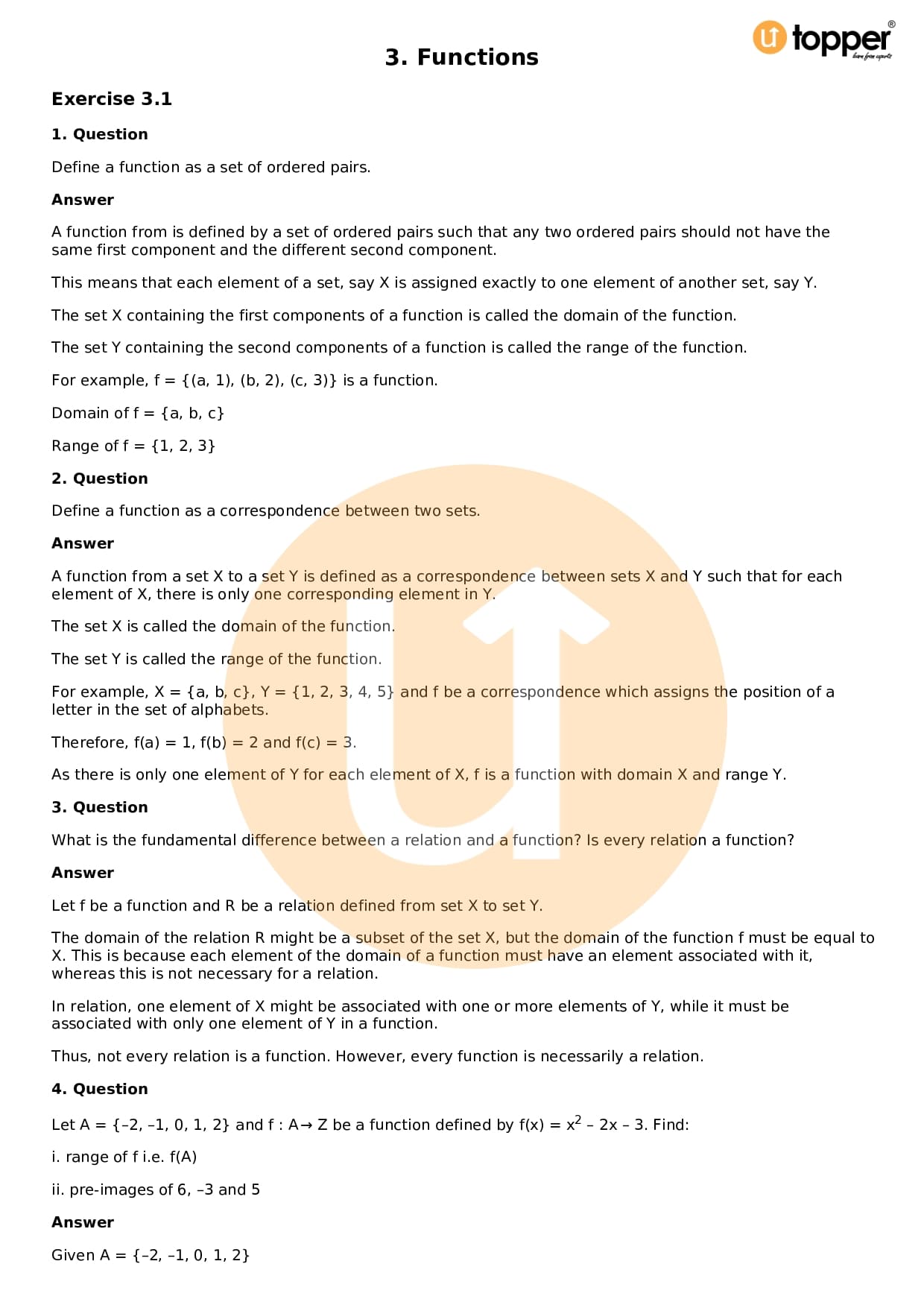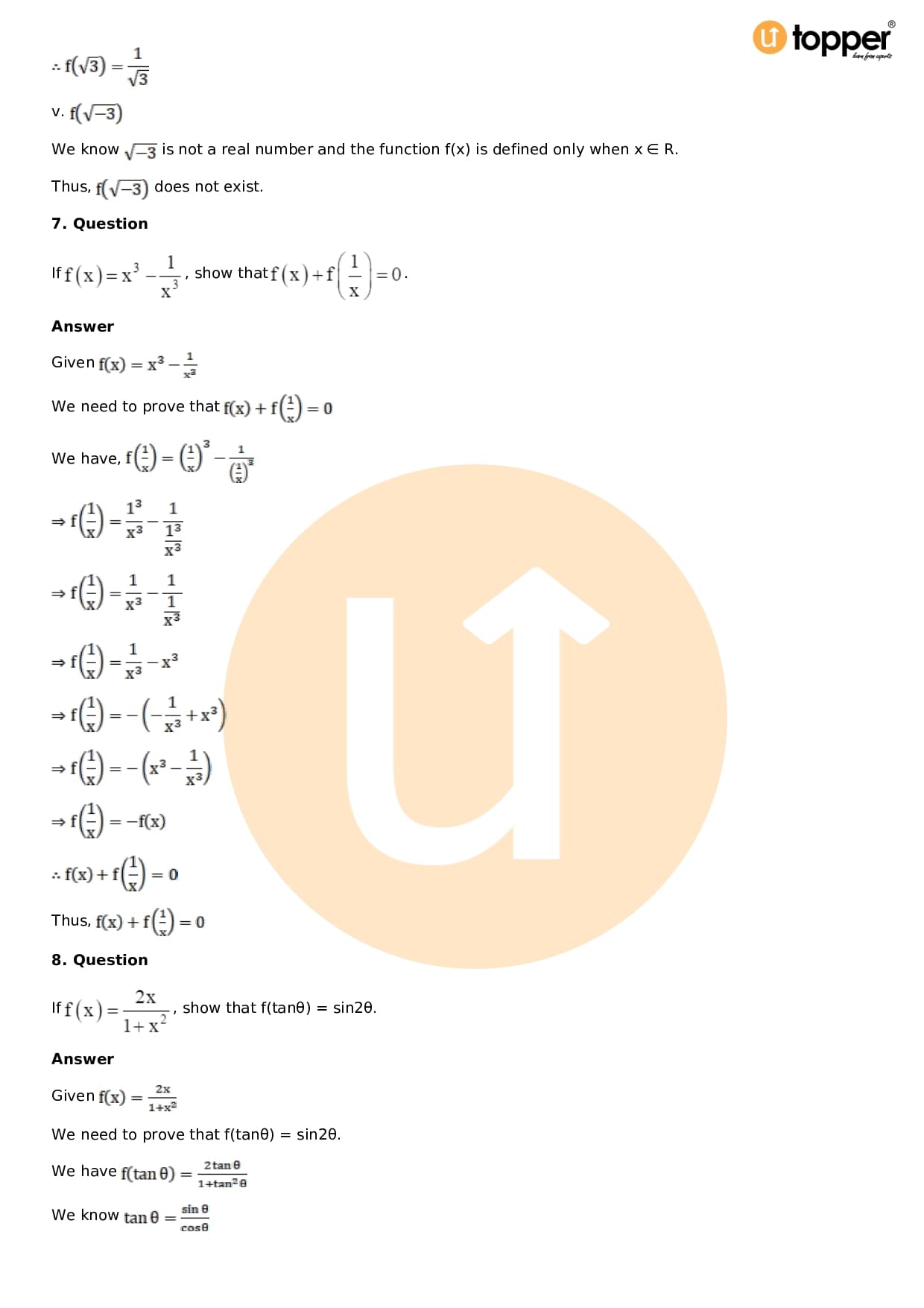 Download the latest version of RD Sharma Solutions for Class 11 Maths Chapter 3 Functions PDF at Utopper. It provides step by step Solution PDF. You can download RD Sharma Maths Solutions with a free PDF download option, which includes chapter wise solutions. All the questions in RD Sharma Solutions have been solved and explained by expert mathematics teachers as per the CBSE Board guidelines. By studying these Maths Solutions, you can easily get good marks in the CBSE board exams.