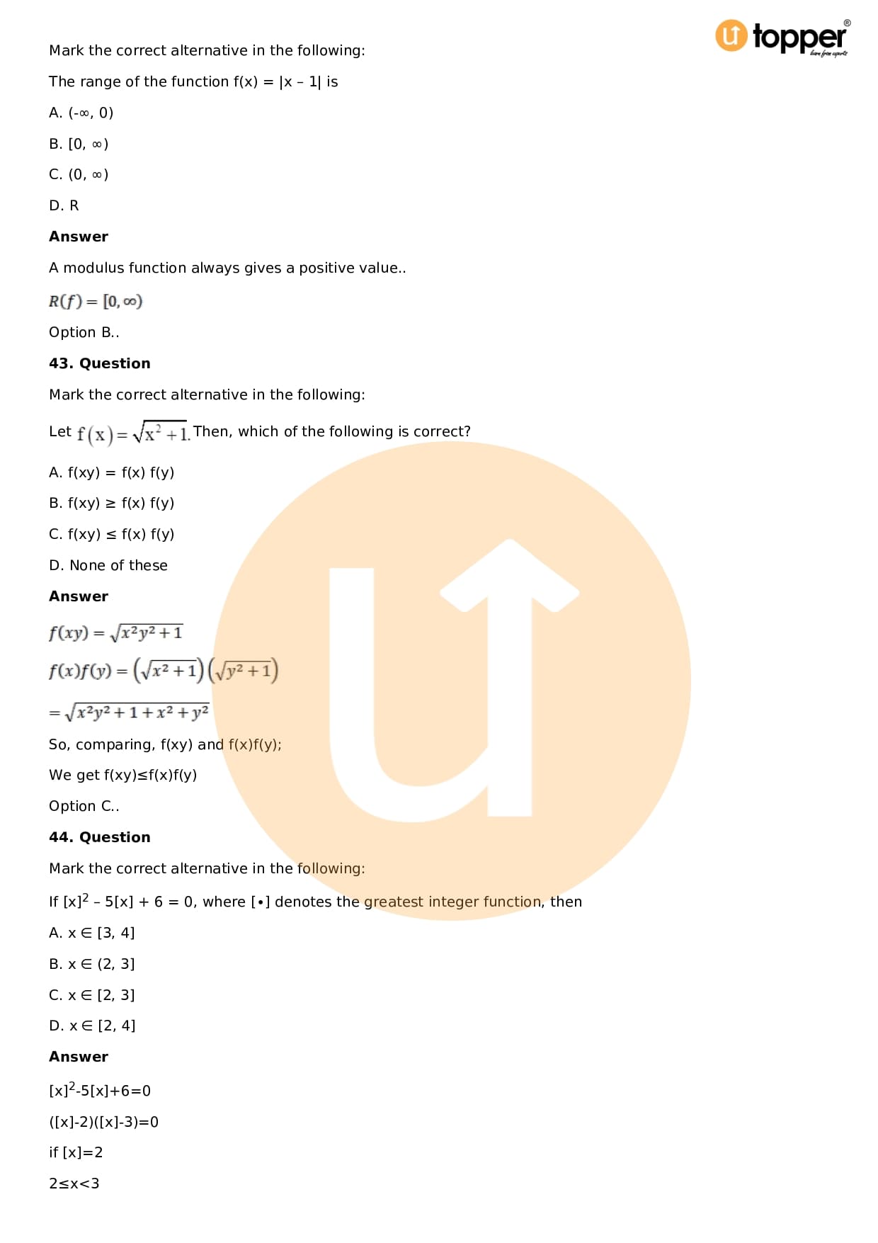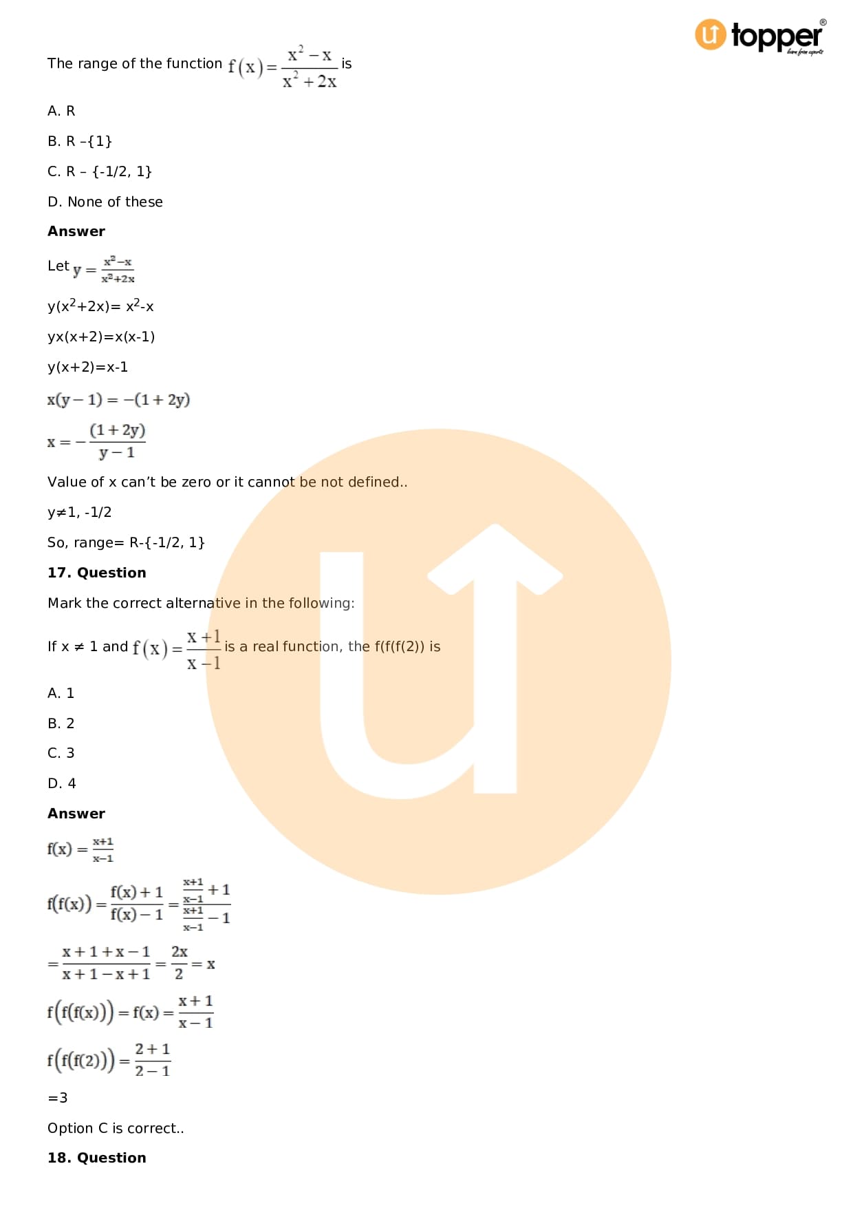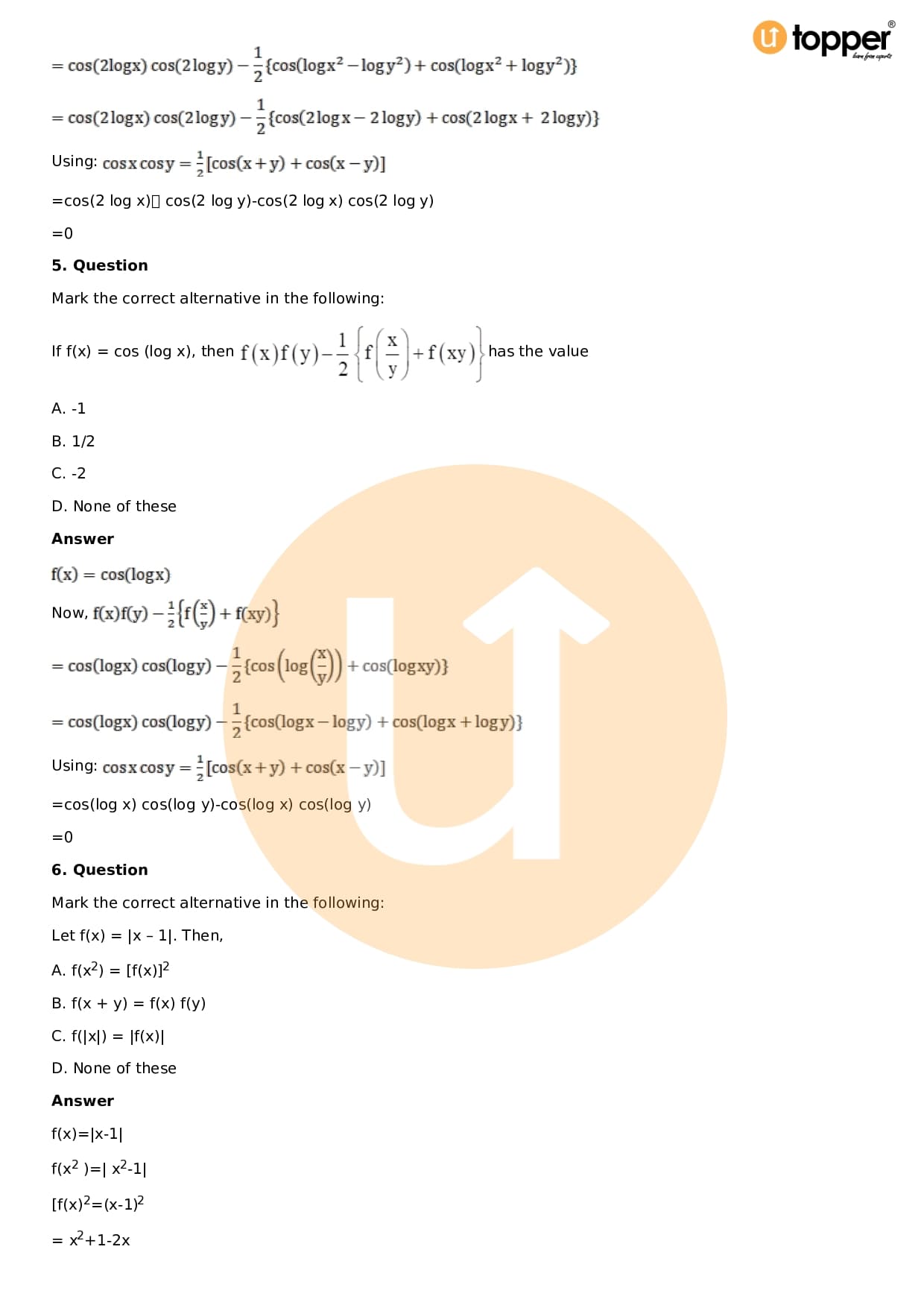 Download the latest version of RD Sharma Solutions for Class 11 Maths Chapter 3 Functions PDF at Utopper. It provides step by step Solution PDF. You can download RD Sharma Maths Solutions with a free PDF download option, which includes chapter wise solutions. All the questions in RD Sharma Solutions have been solved and explained by expert mathematics teachers as per the CBSE Board guidelines. By studying these Maths Solutions, you can easily get good marks in the CBSE board exams.