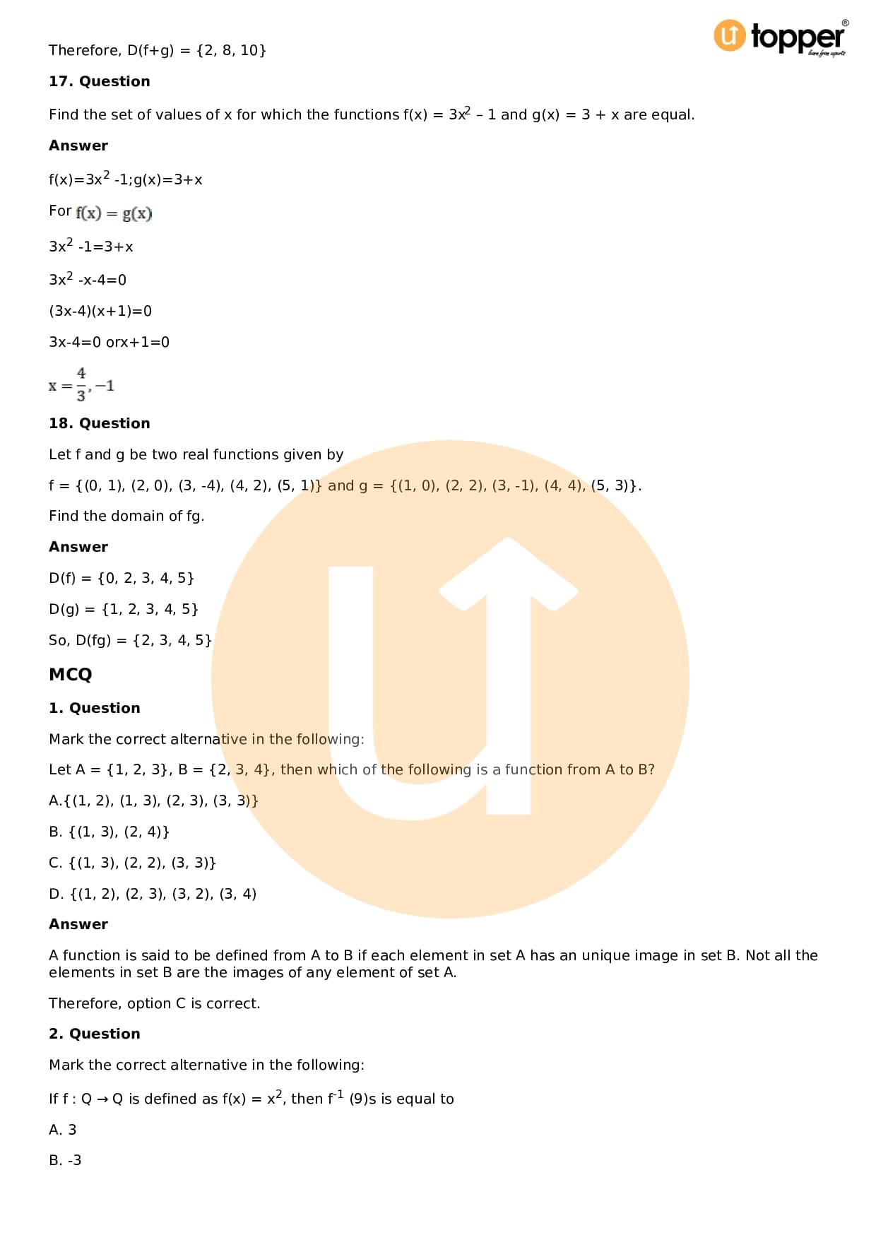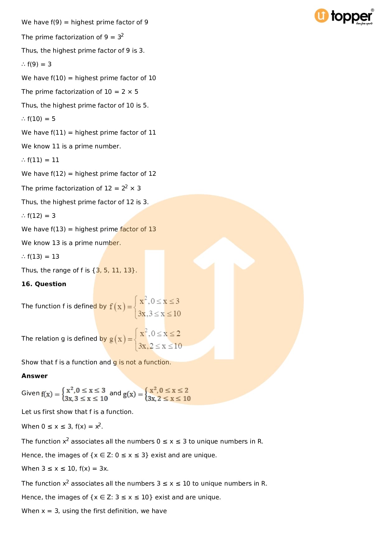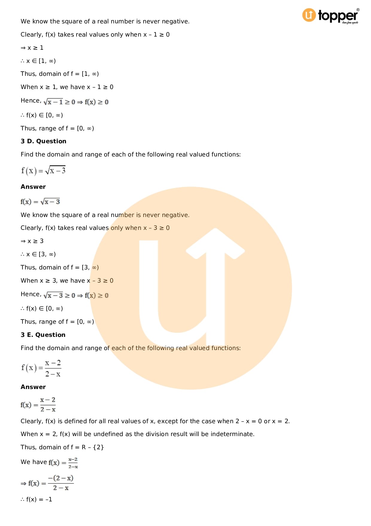 RD Sharma Class 11 Maths Chapter 3 Functions Solutions PDF Download