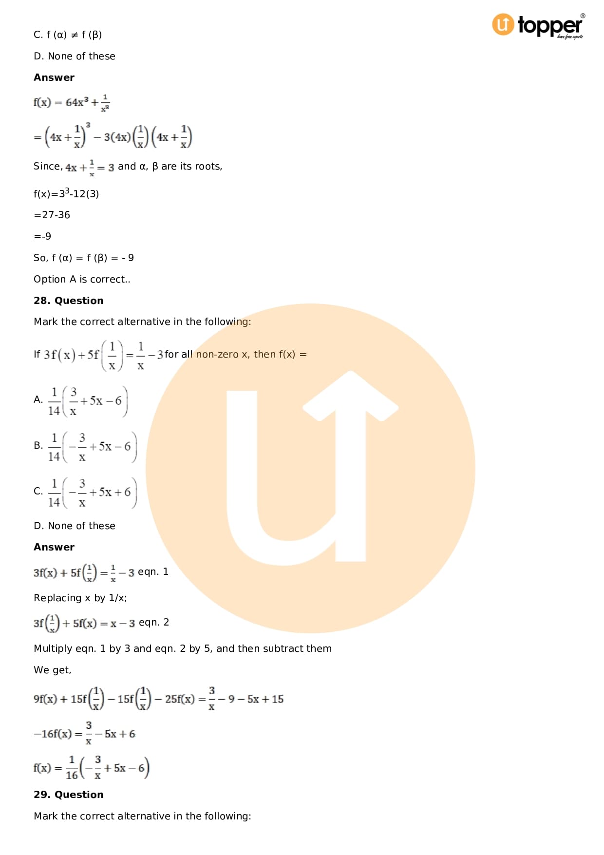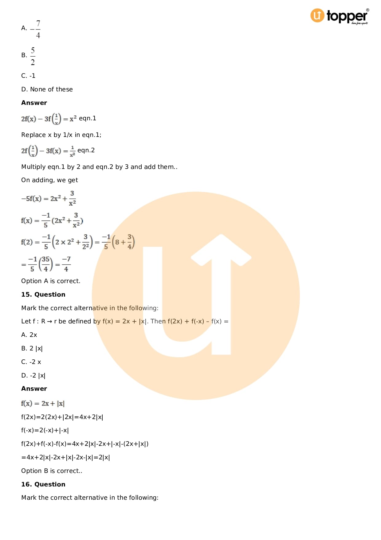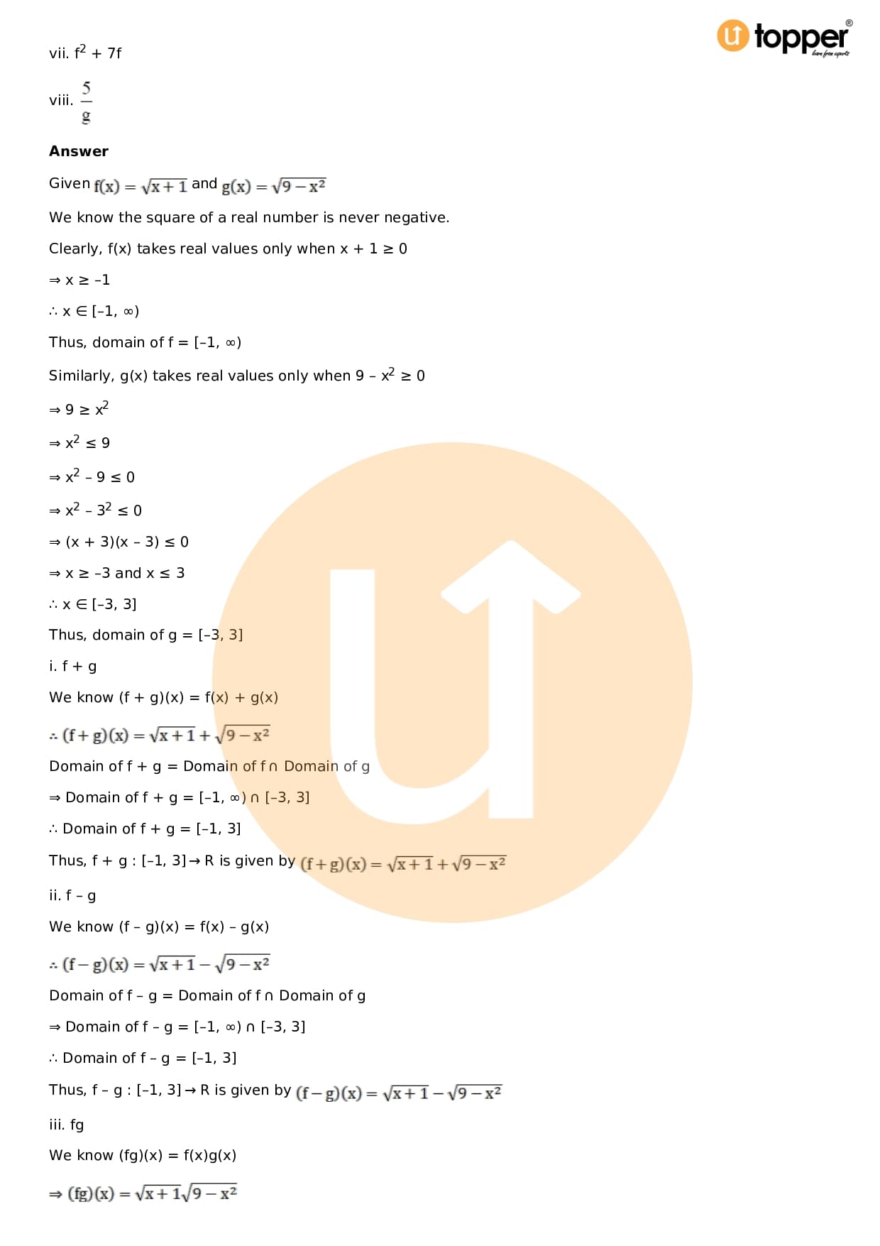 RD Sharma Class 11 Maths Chapter 3 Functions Solutions PDF Download