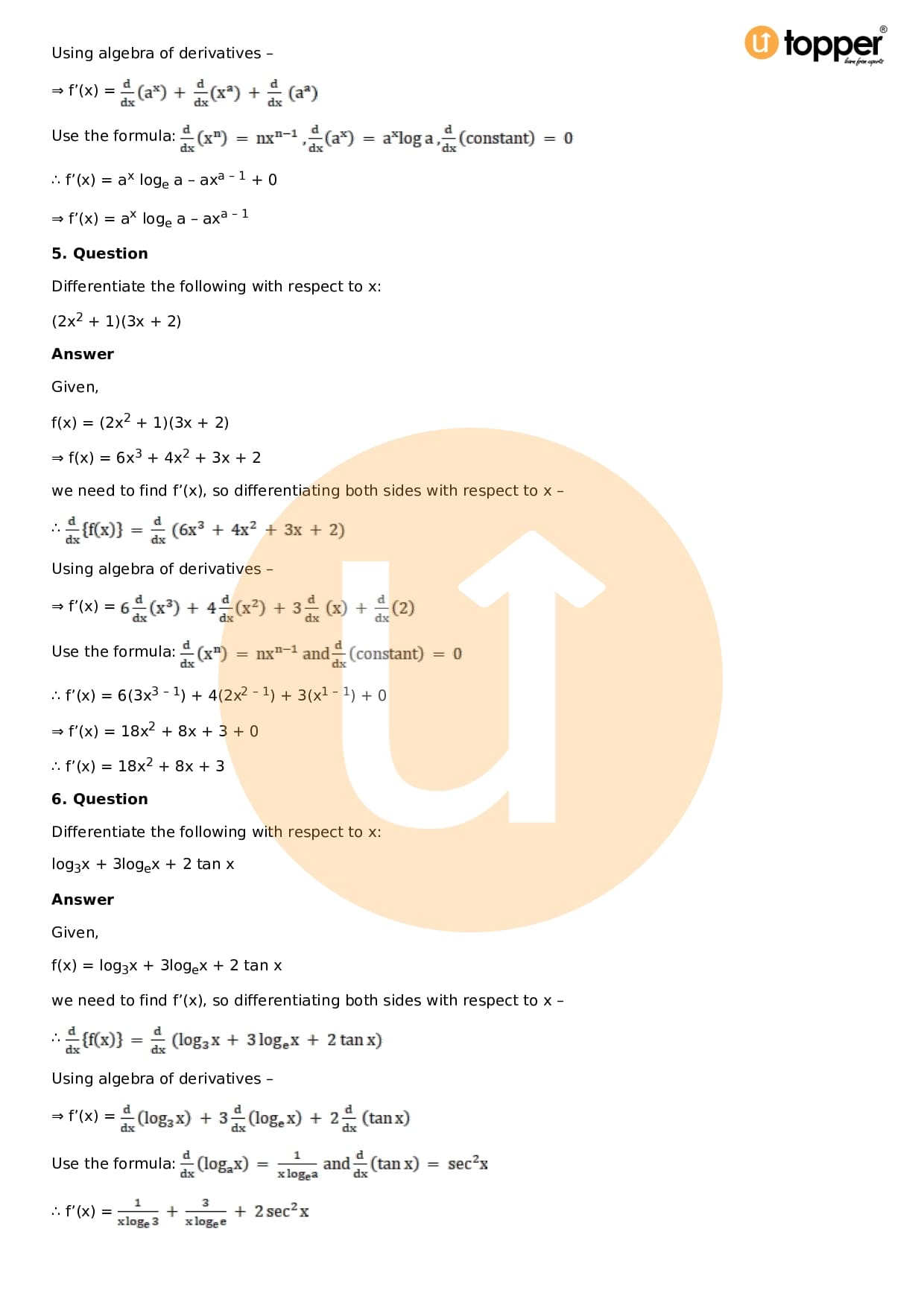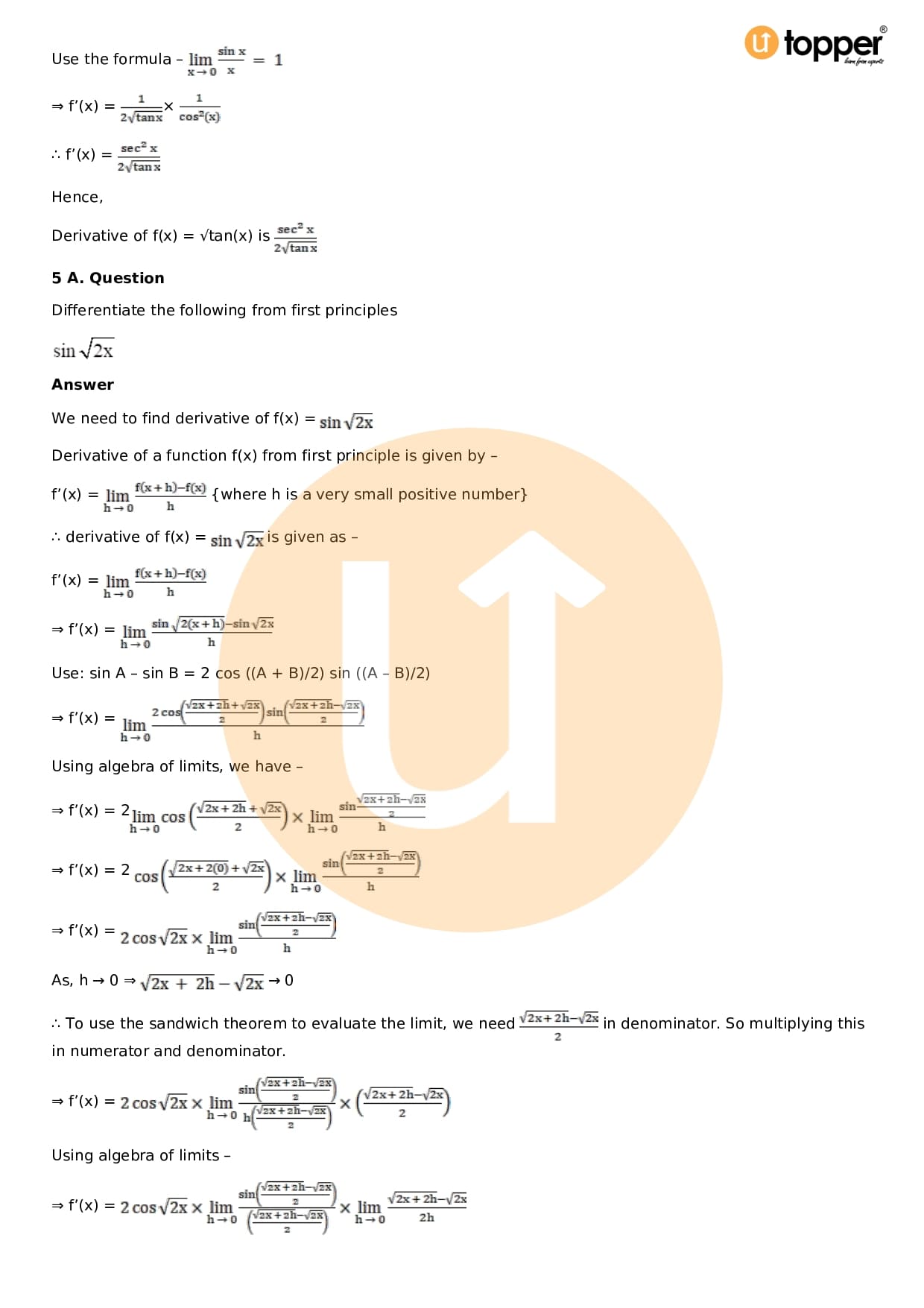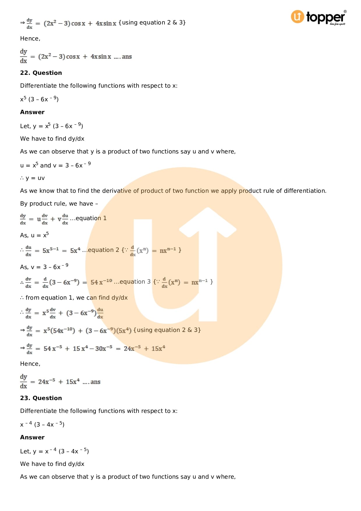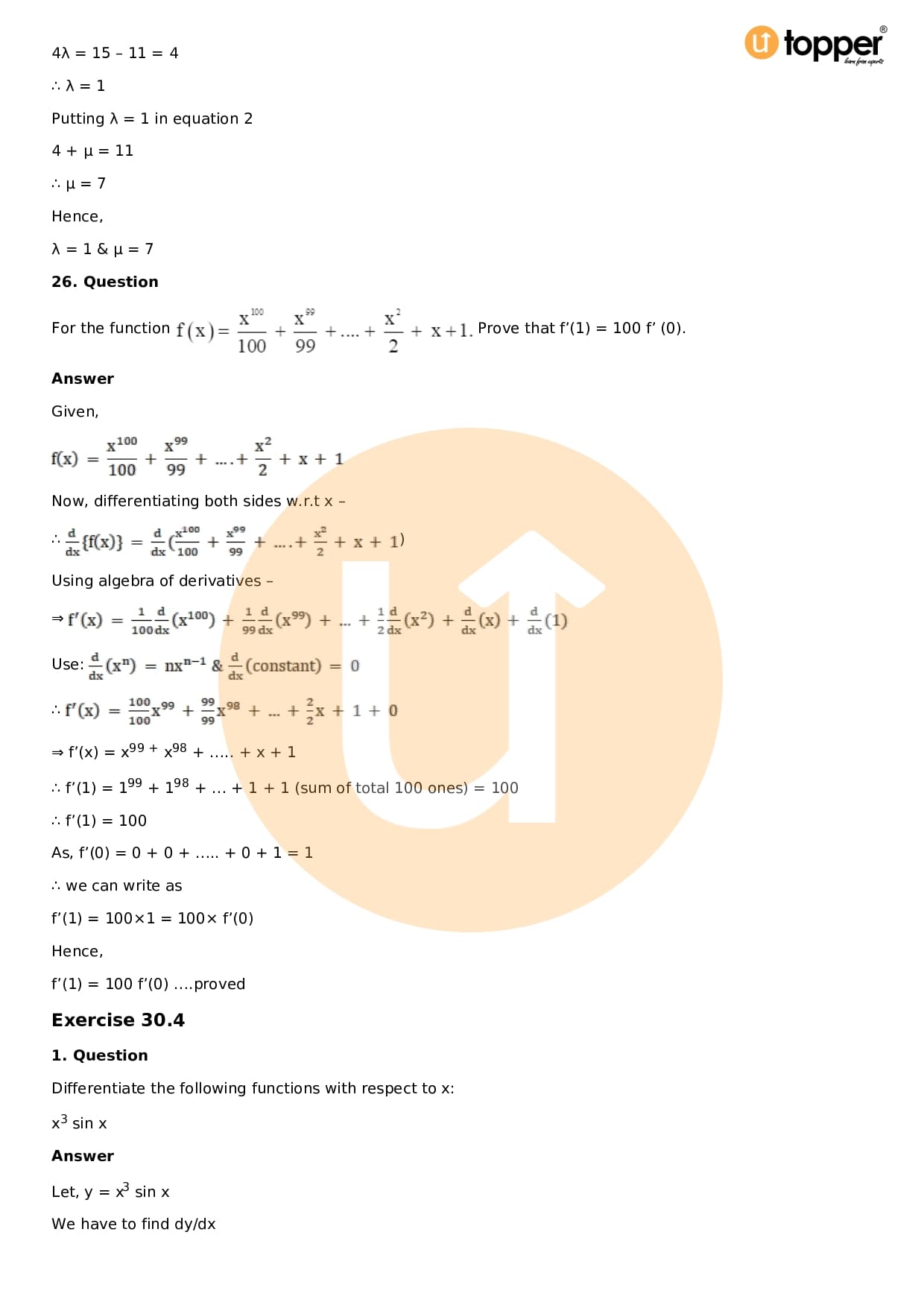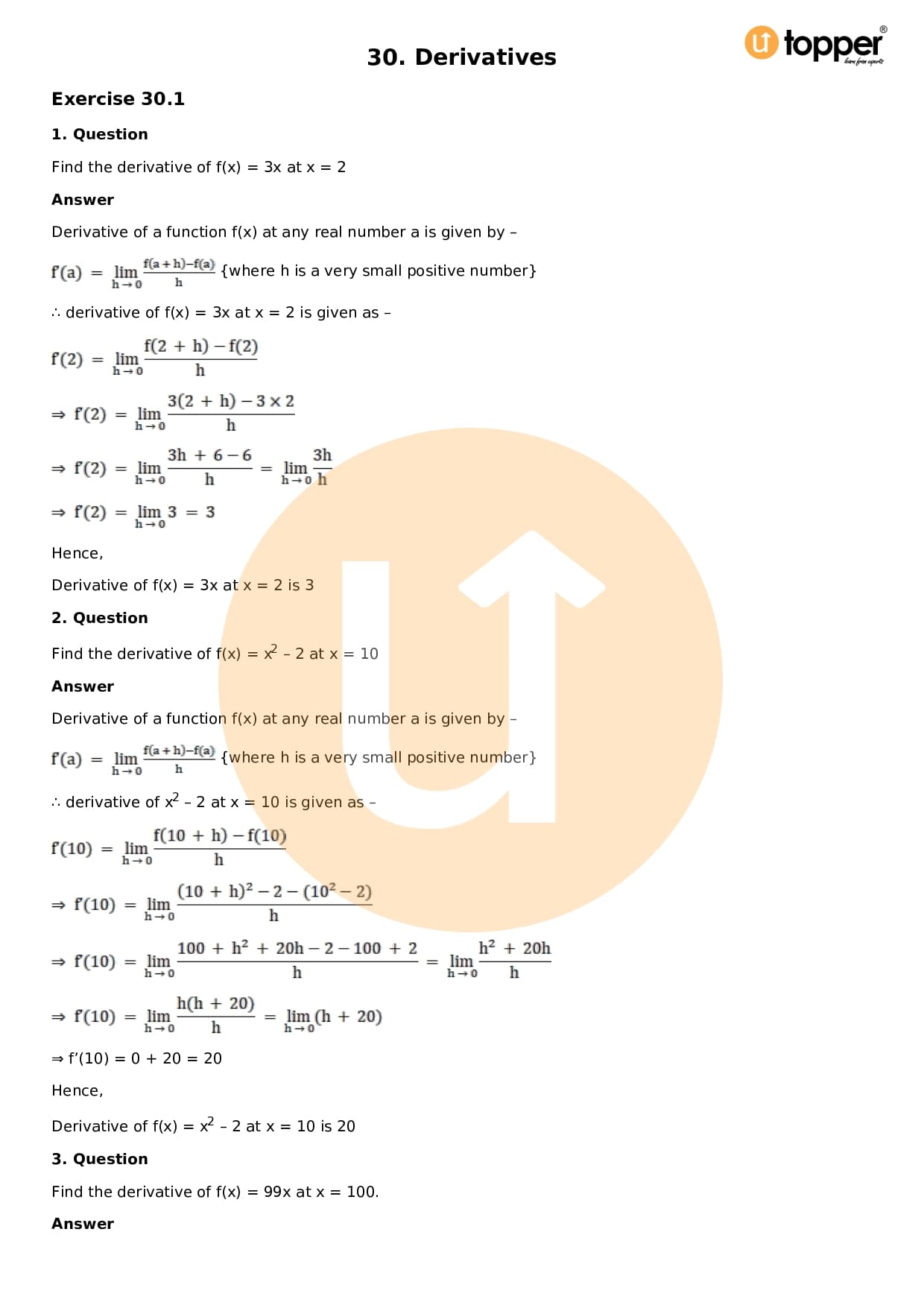 RD Sharma Class 11 Maths Chapter 30 Derivatives Solutions PDF Download