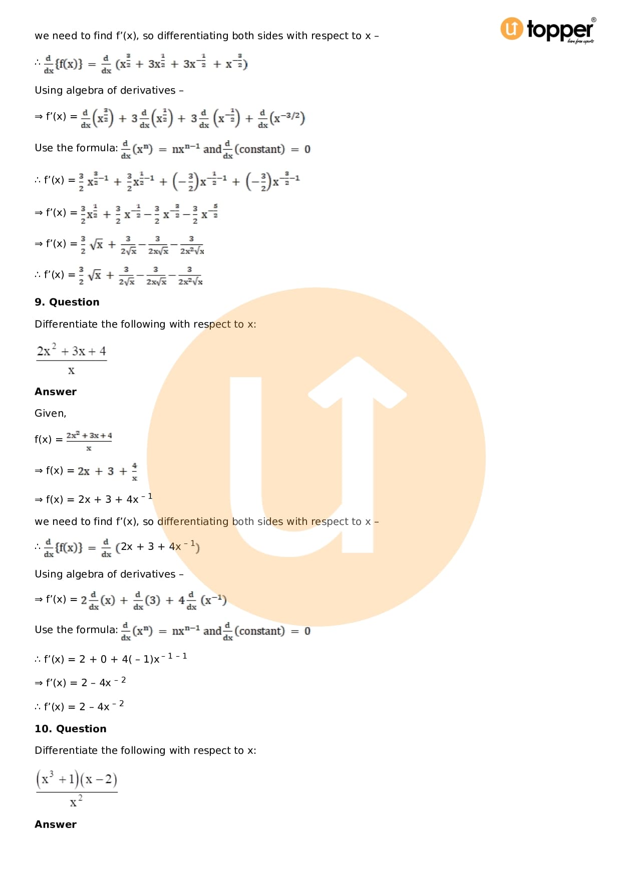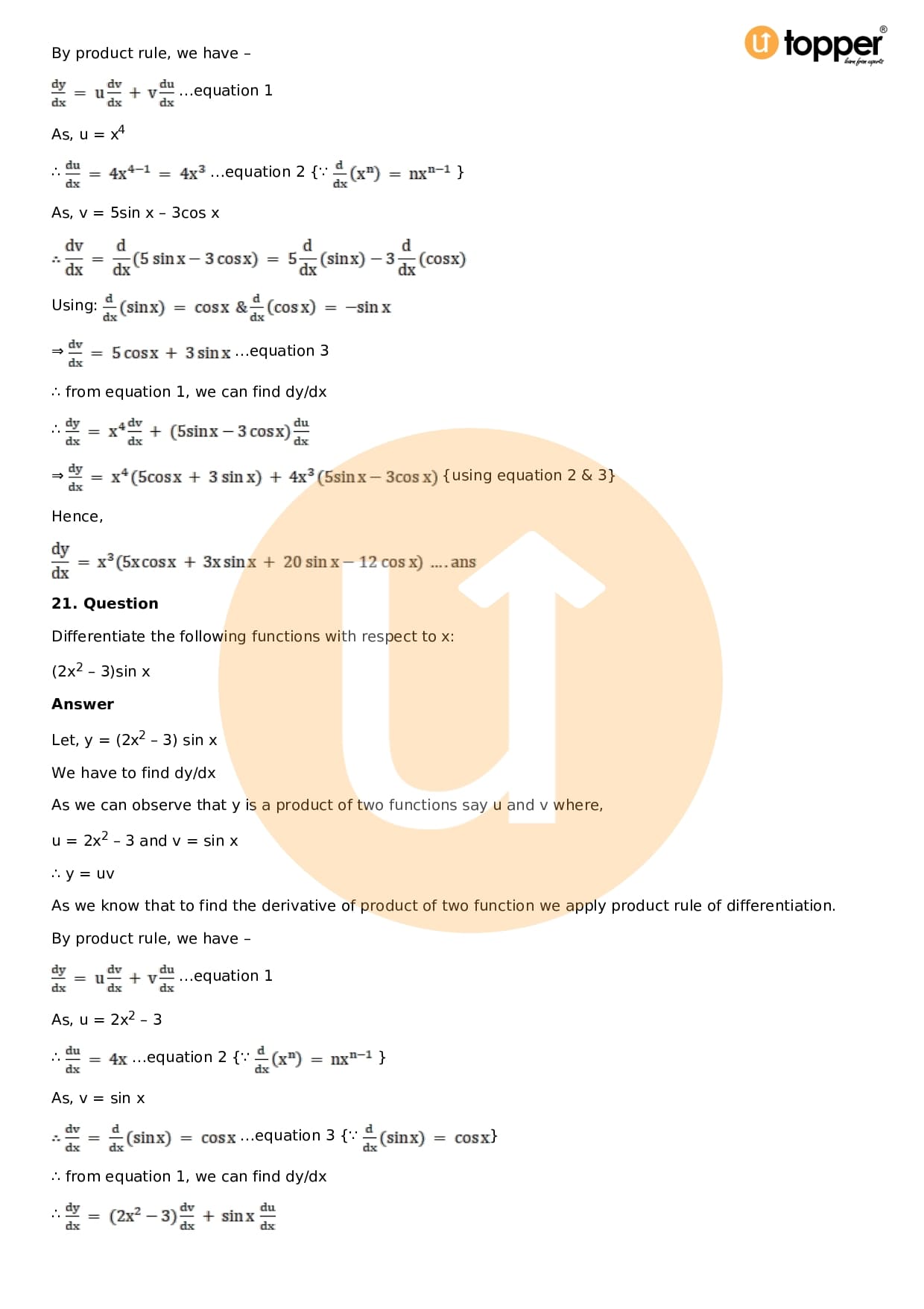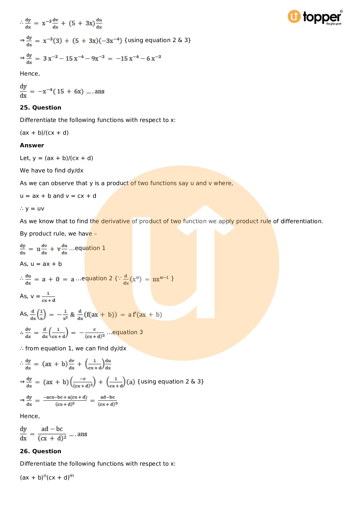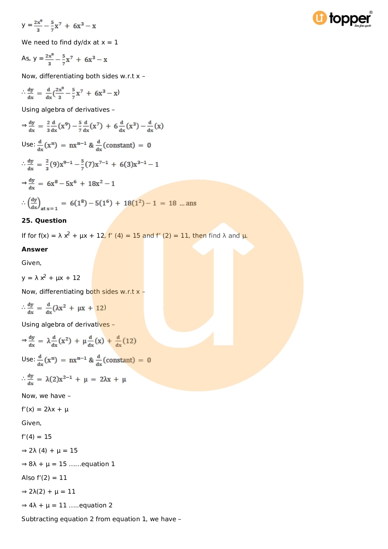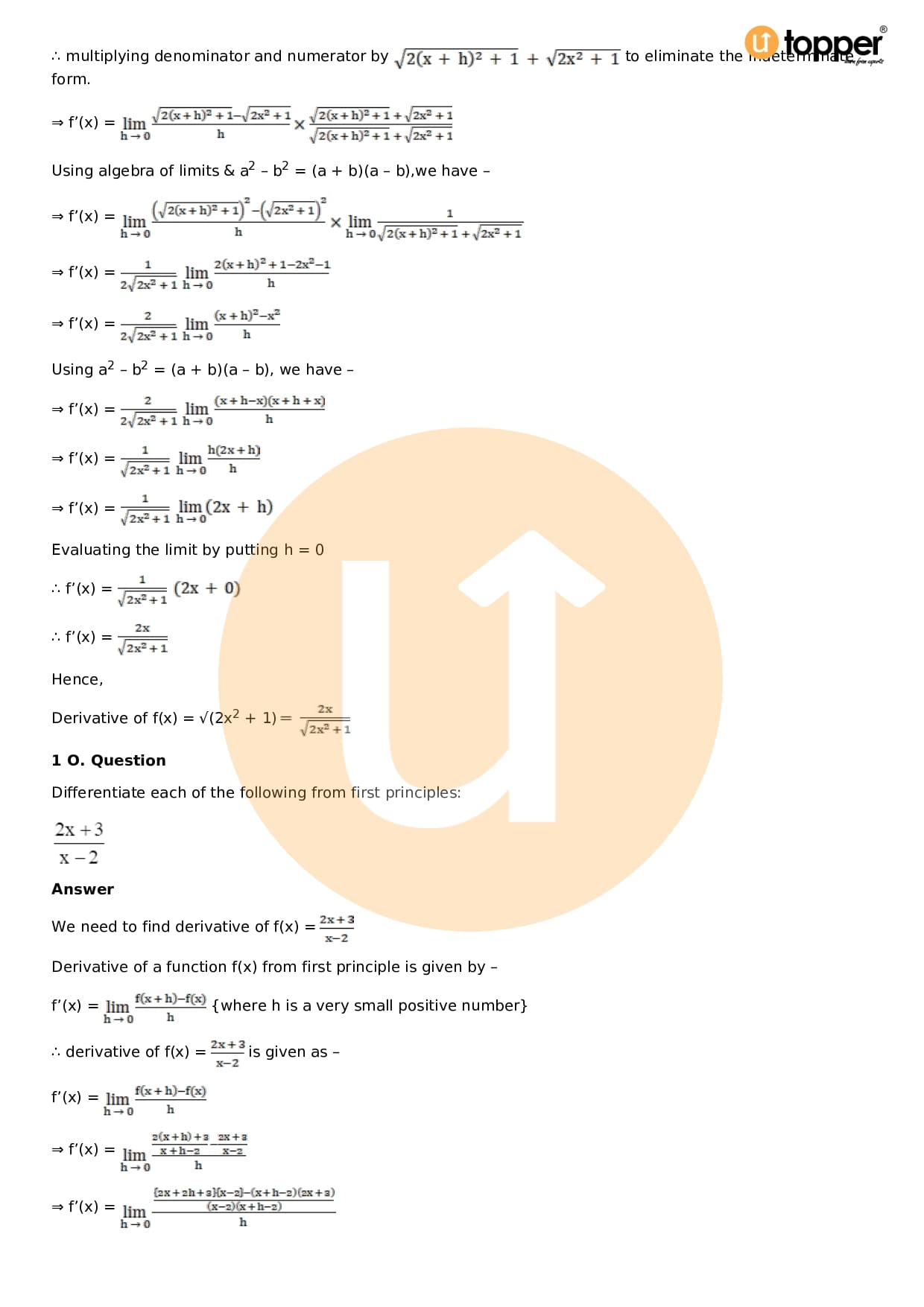 RD Sharma Class 11 Maths Chapter 30 Derivatives Solutions PDF Download