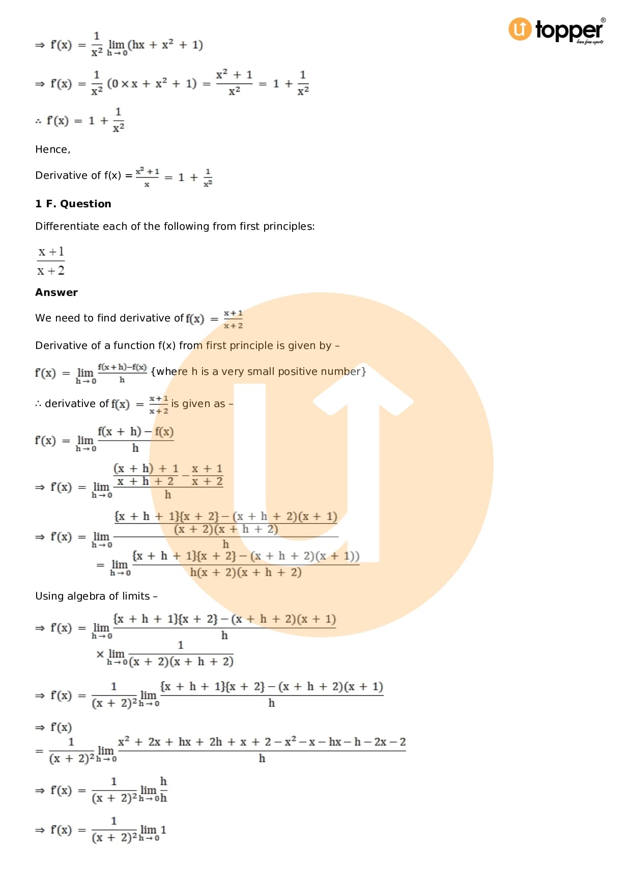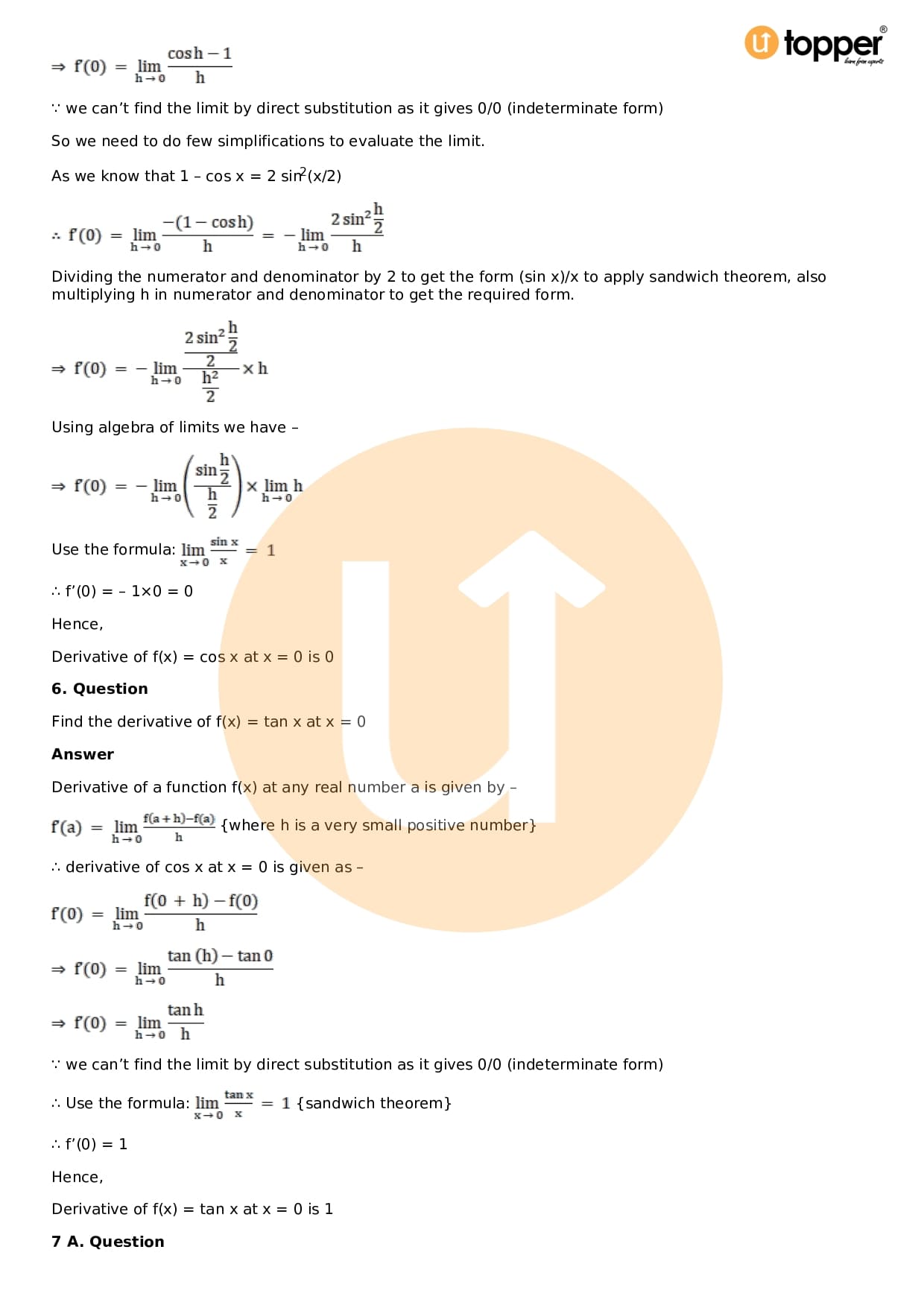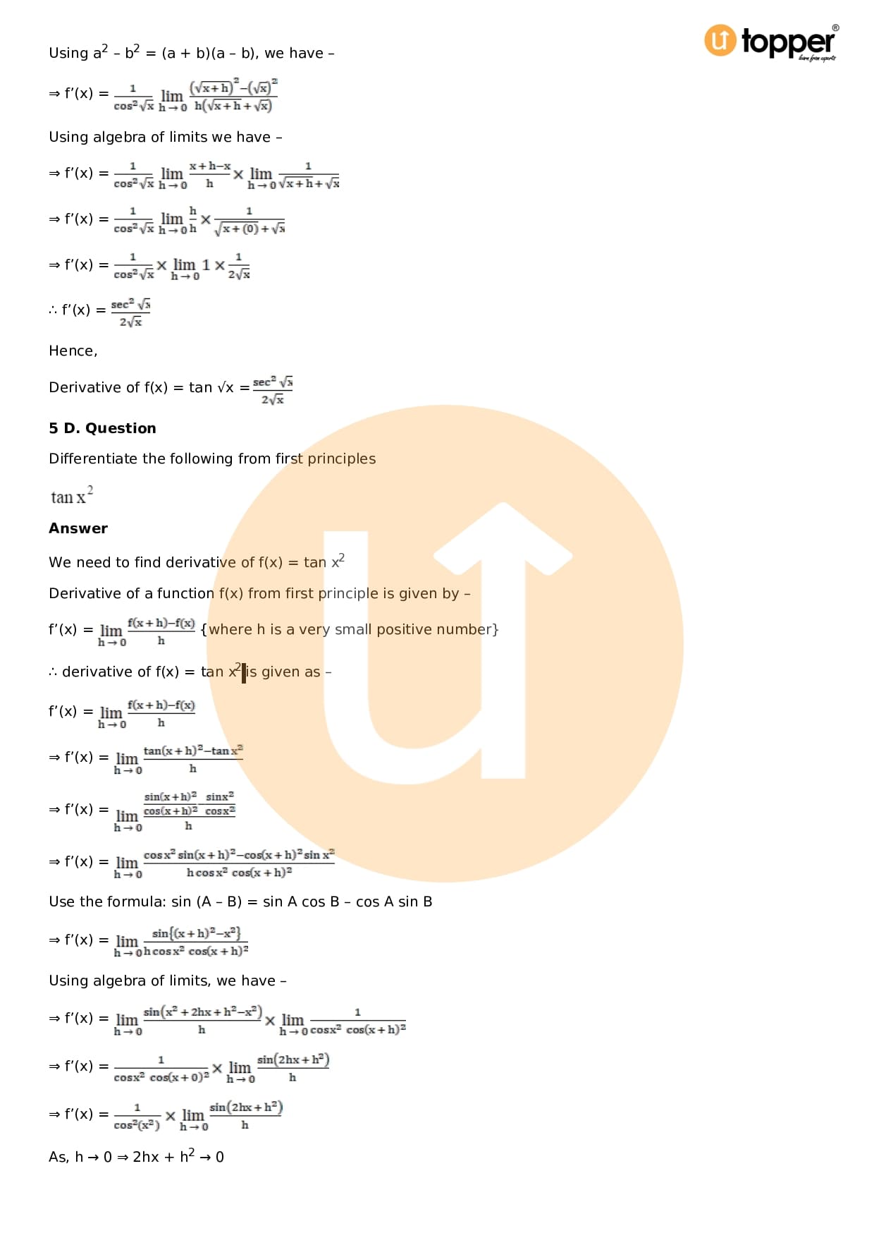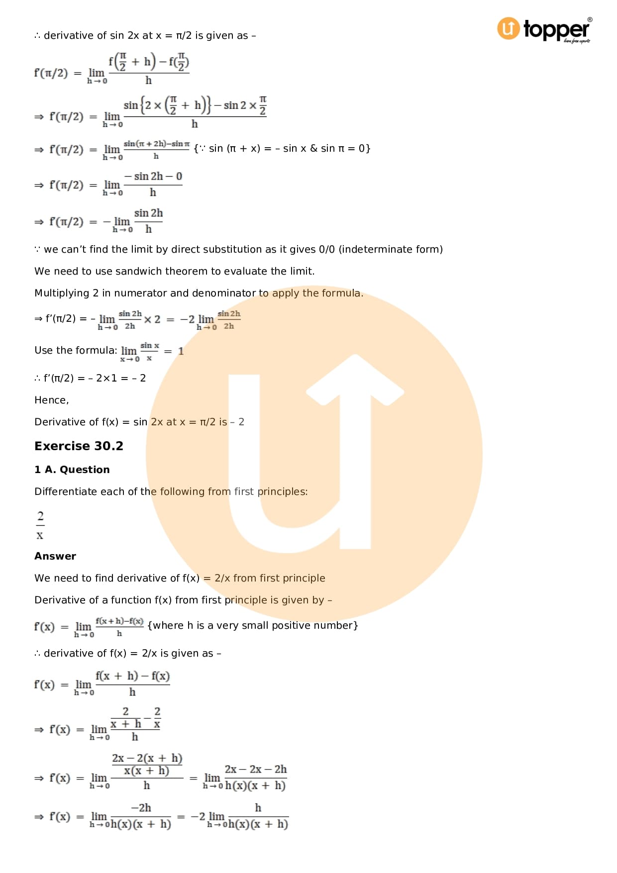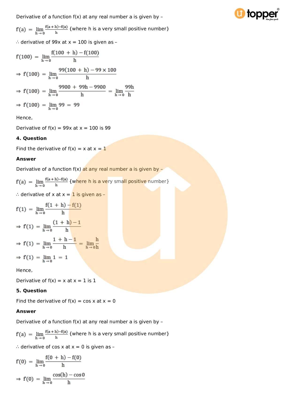 Download the latest version of RD Sharma Solutions for Class 11 Maths Chapter 30 Derivatives PDF at Utopper. It provides step by step Solution PDF. You can download RD Sharma Maths Solutions with a free PDF download option, which includes chapter wise solutions. All the questions in RD Sharma Solutions have been solved and explained by expert mathematics teachers as per the CBSE Board guidelines. By studying these Maths Solutions, you can easily get good marks in the CBSE board exams.