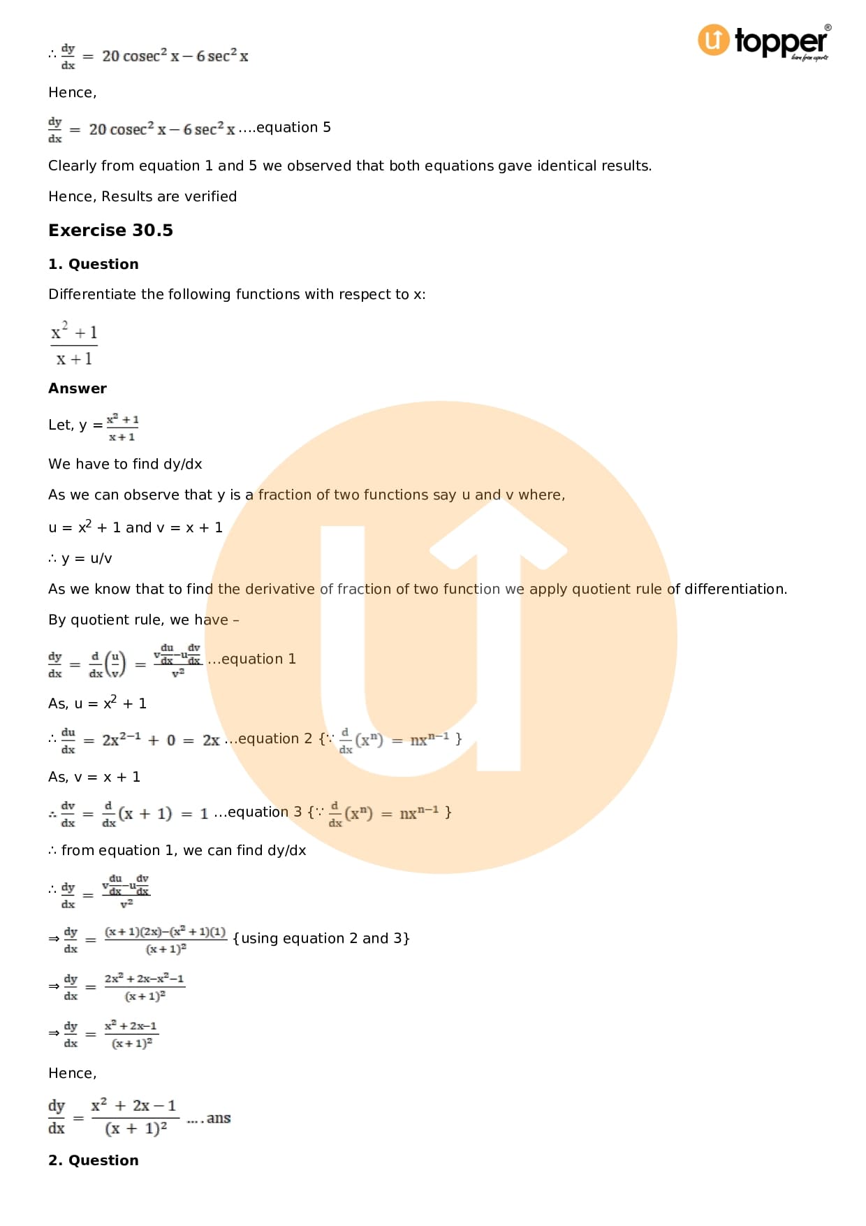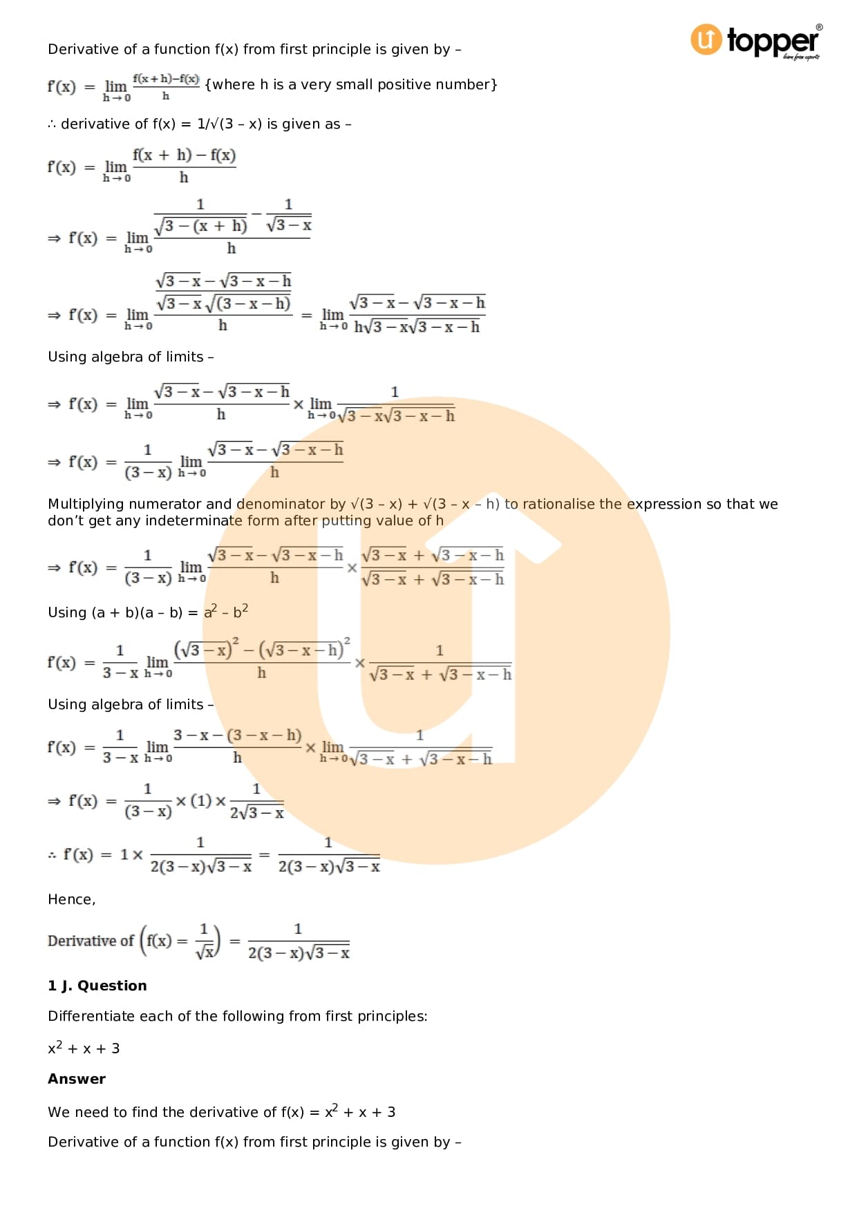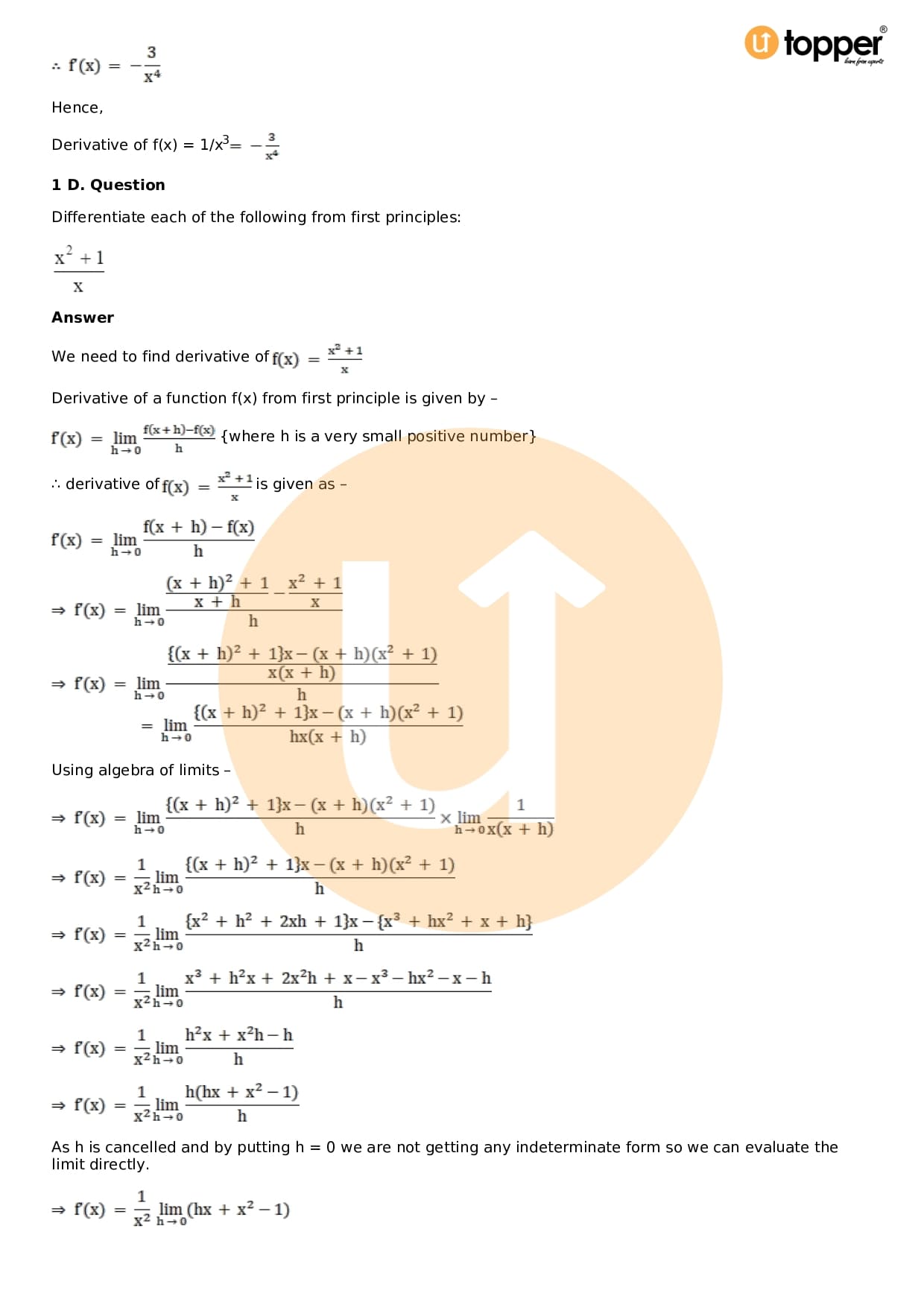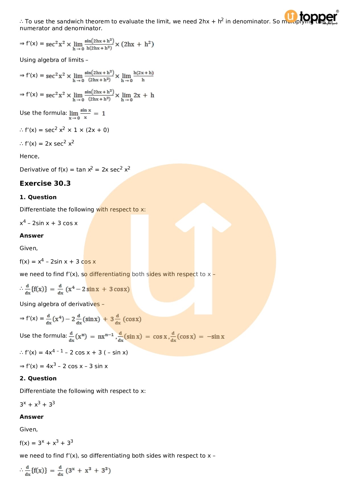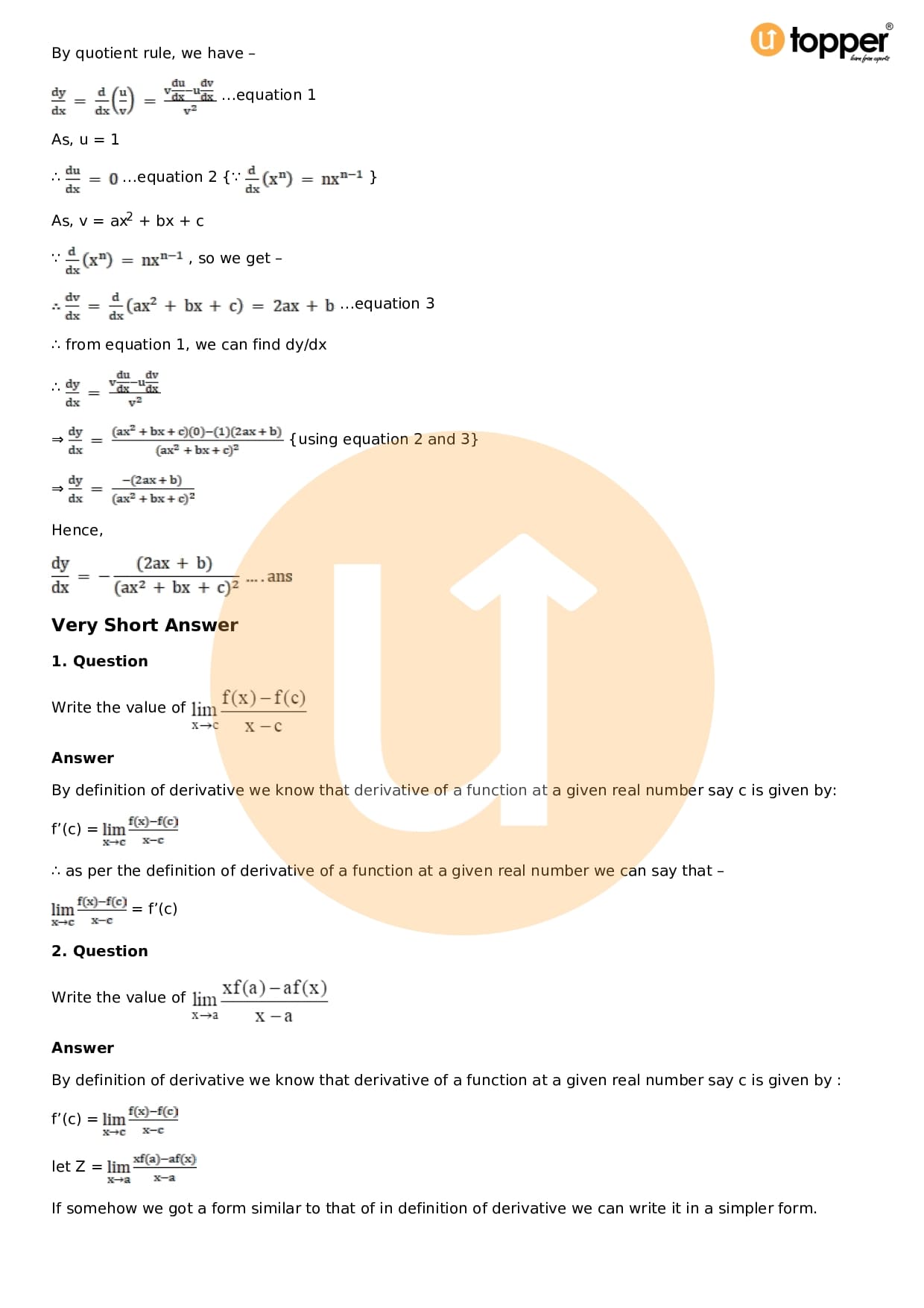 Download the latest version of RD Sharma Solutions for Class 11 Maths Chapter 30 Derivatives PDF at Utopper. It provides step by step Solution PDF. You can download RD Sharma Maths Solutions with a free PDF download option, which includes chapter wise solutions. All the questions in RD Sharma Solutions have been solved and explained by expert mathematics teachers as per the CBSE Board guidelines. By studying these Maths Solutions, you can easily get good marks in the CBSE board exams.
